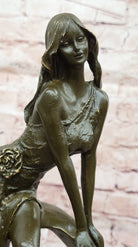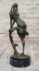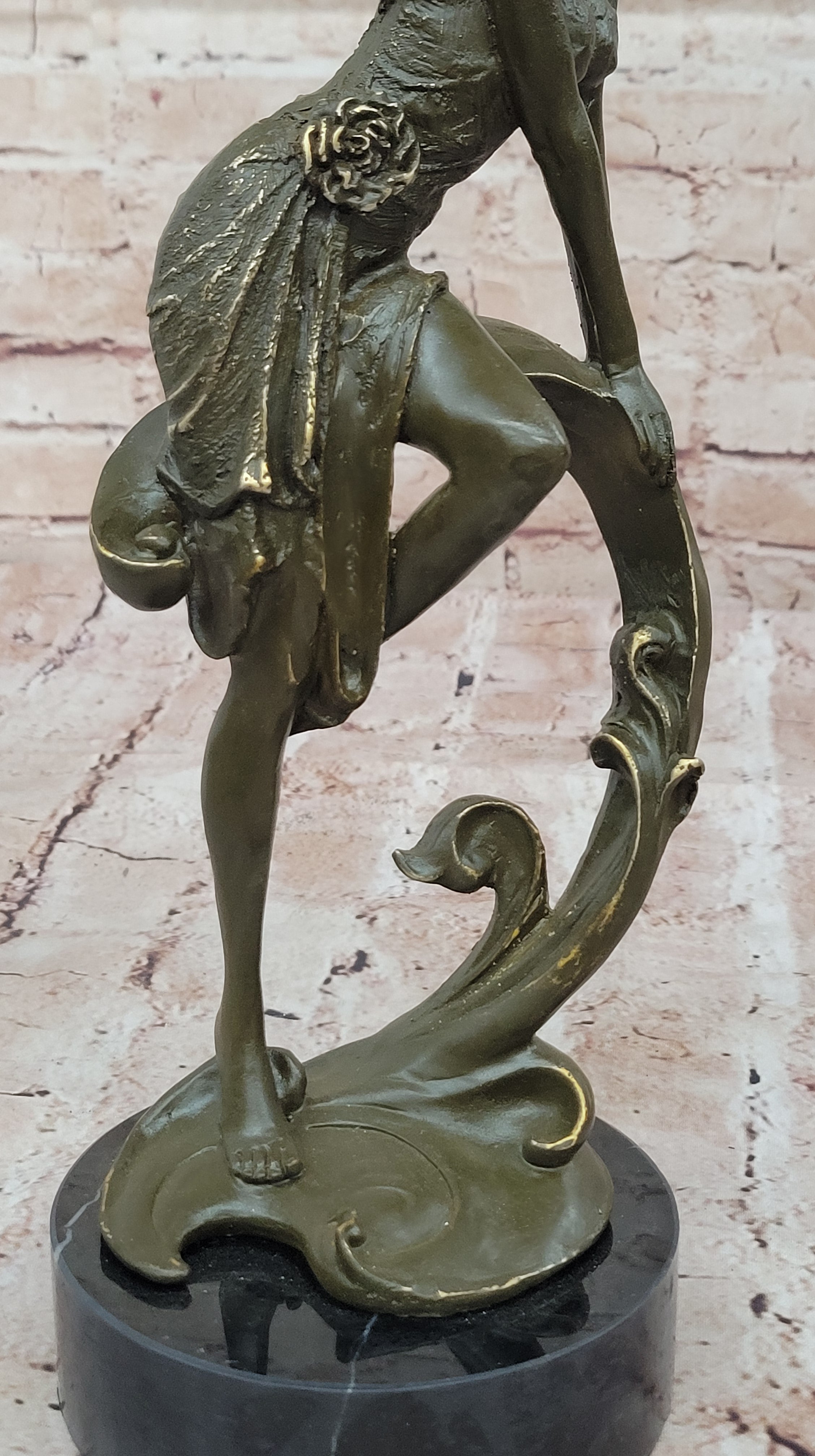 Art Nouveau Bronze Girl on Swing Sculpture – Marble Base Figurine
