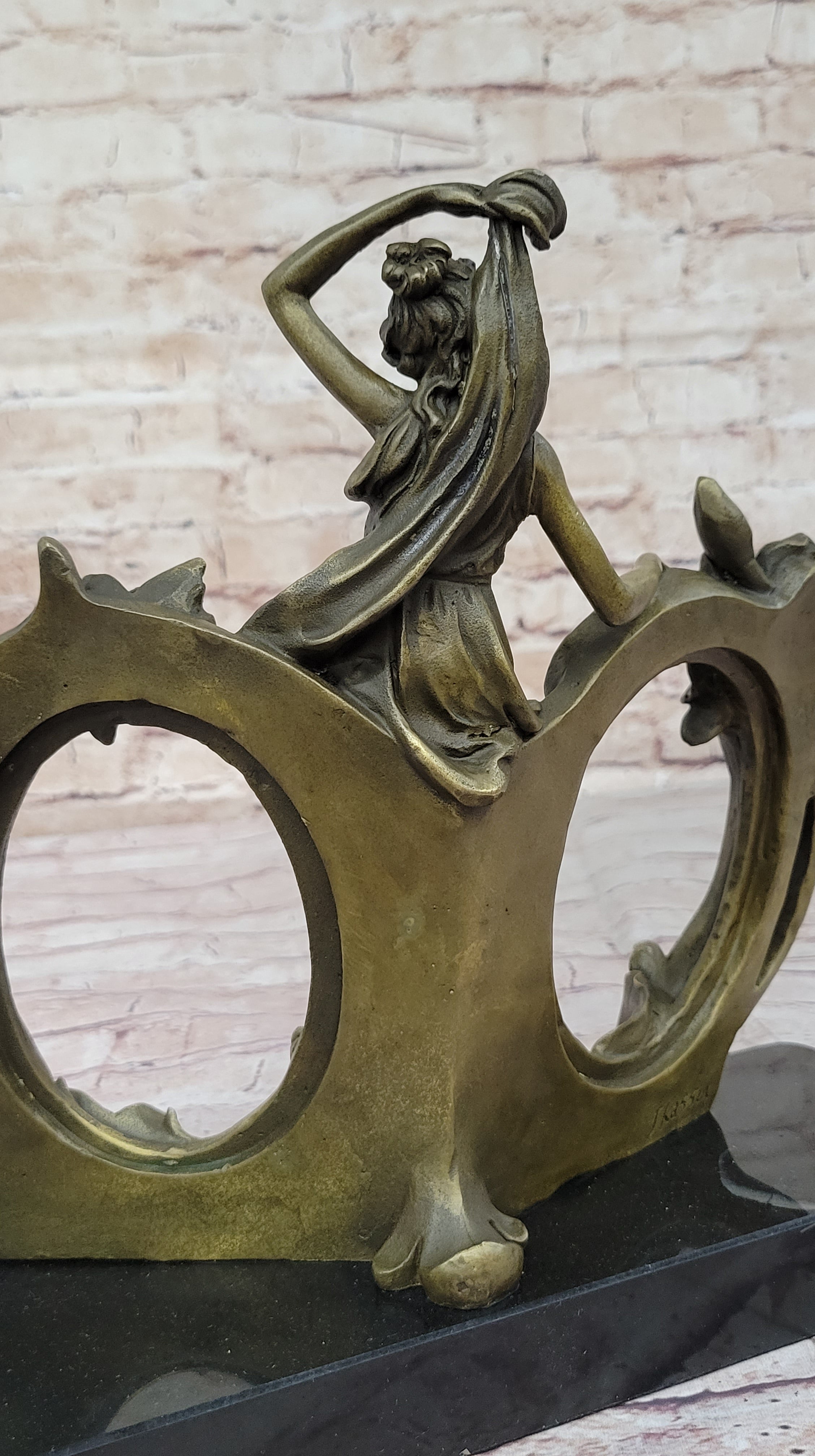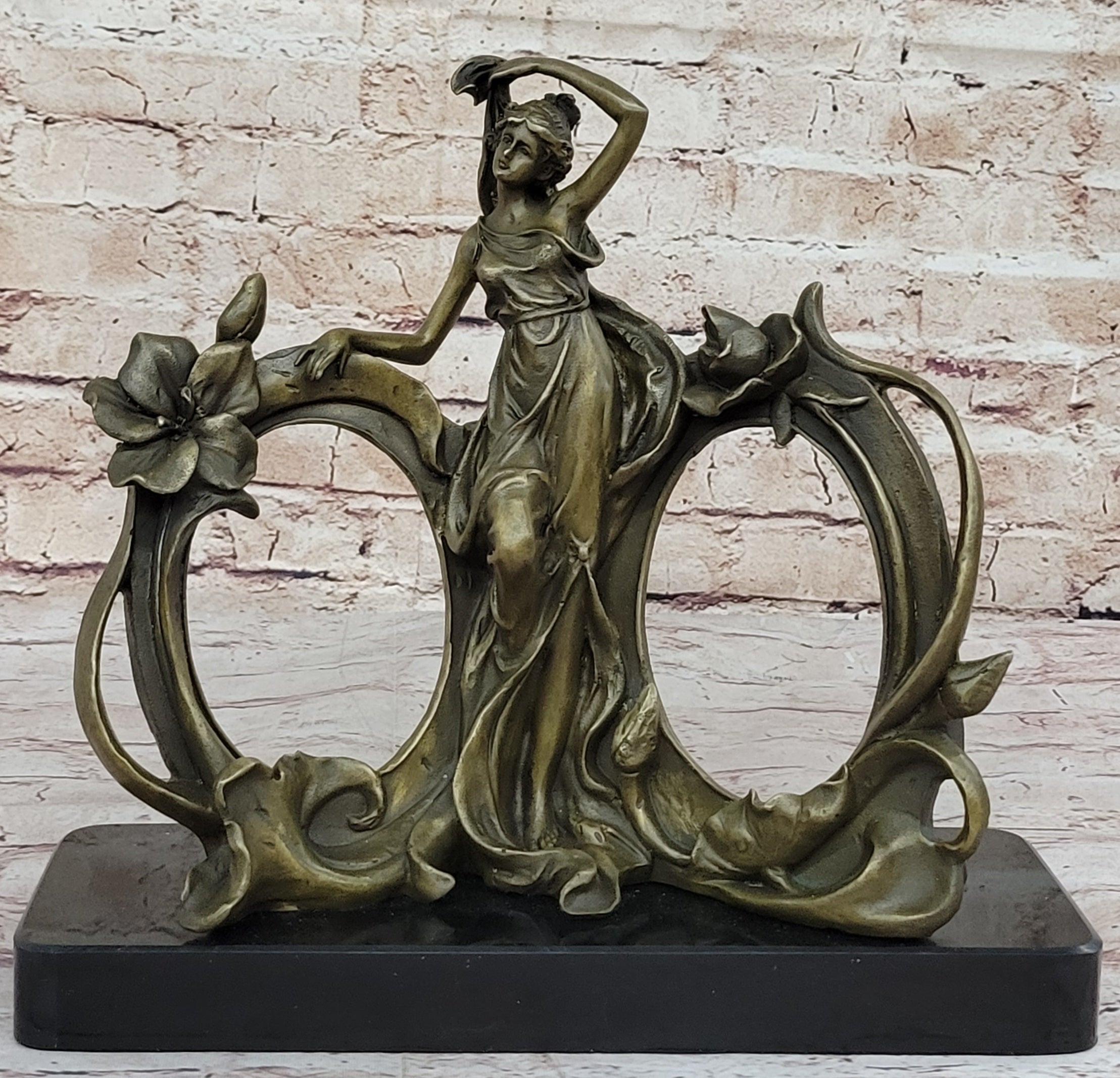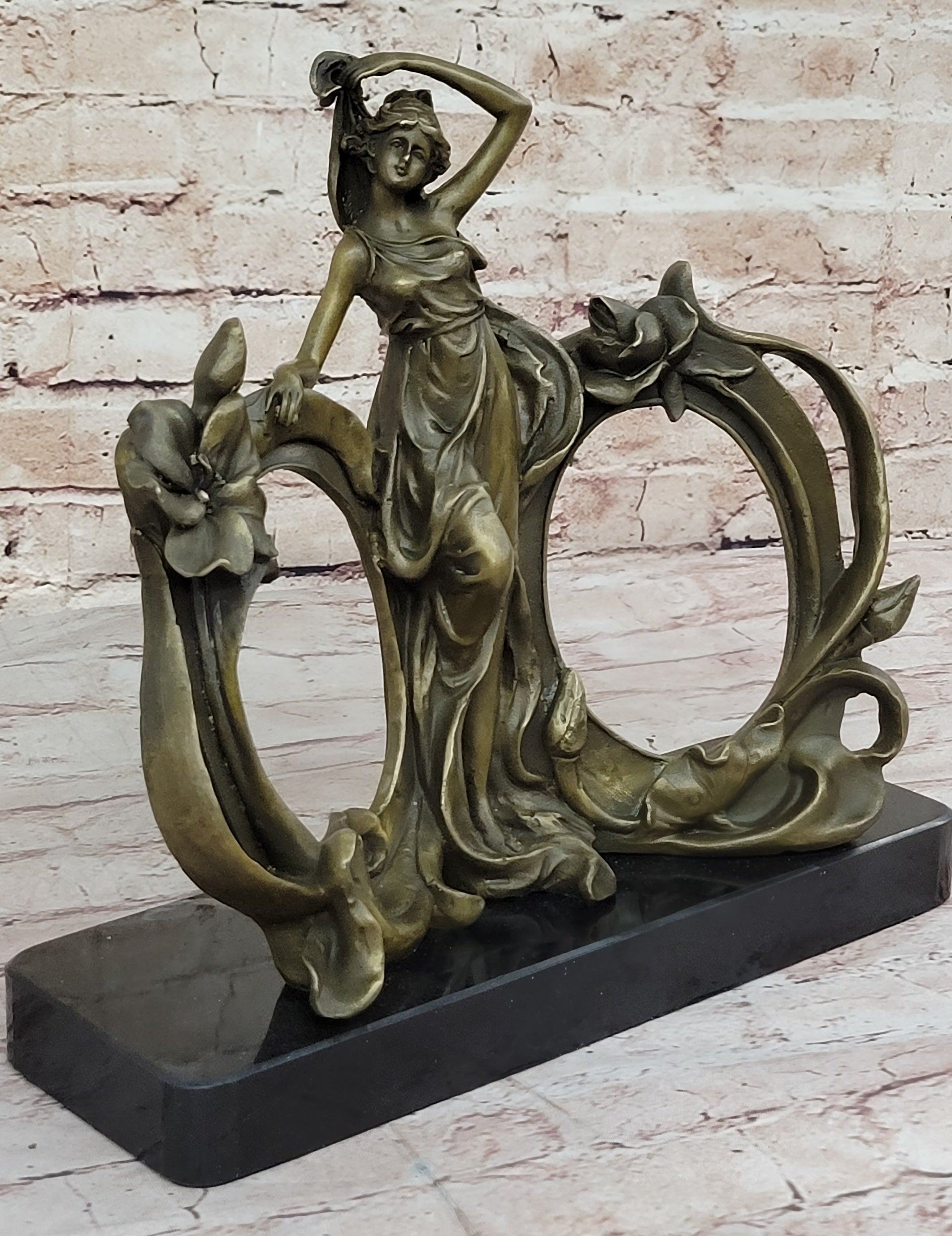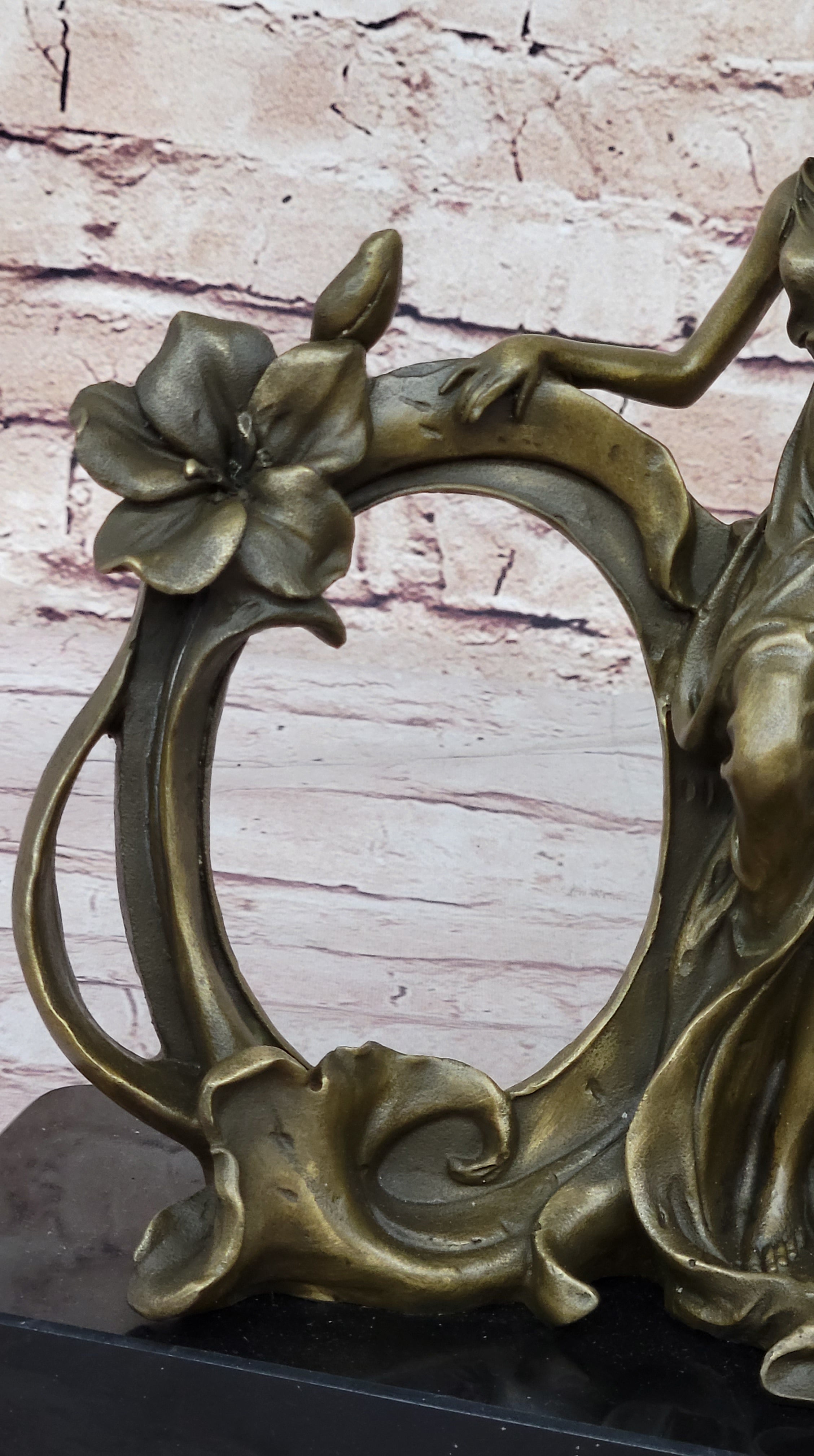 Art Nouveau Bronze Lady Figural Picture Frame Hot Cast Detailed Maiden Sculpture