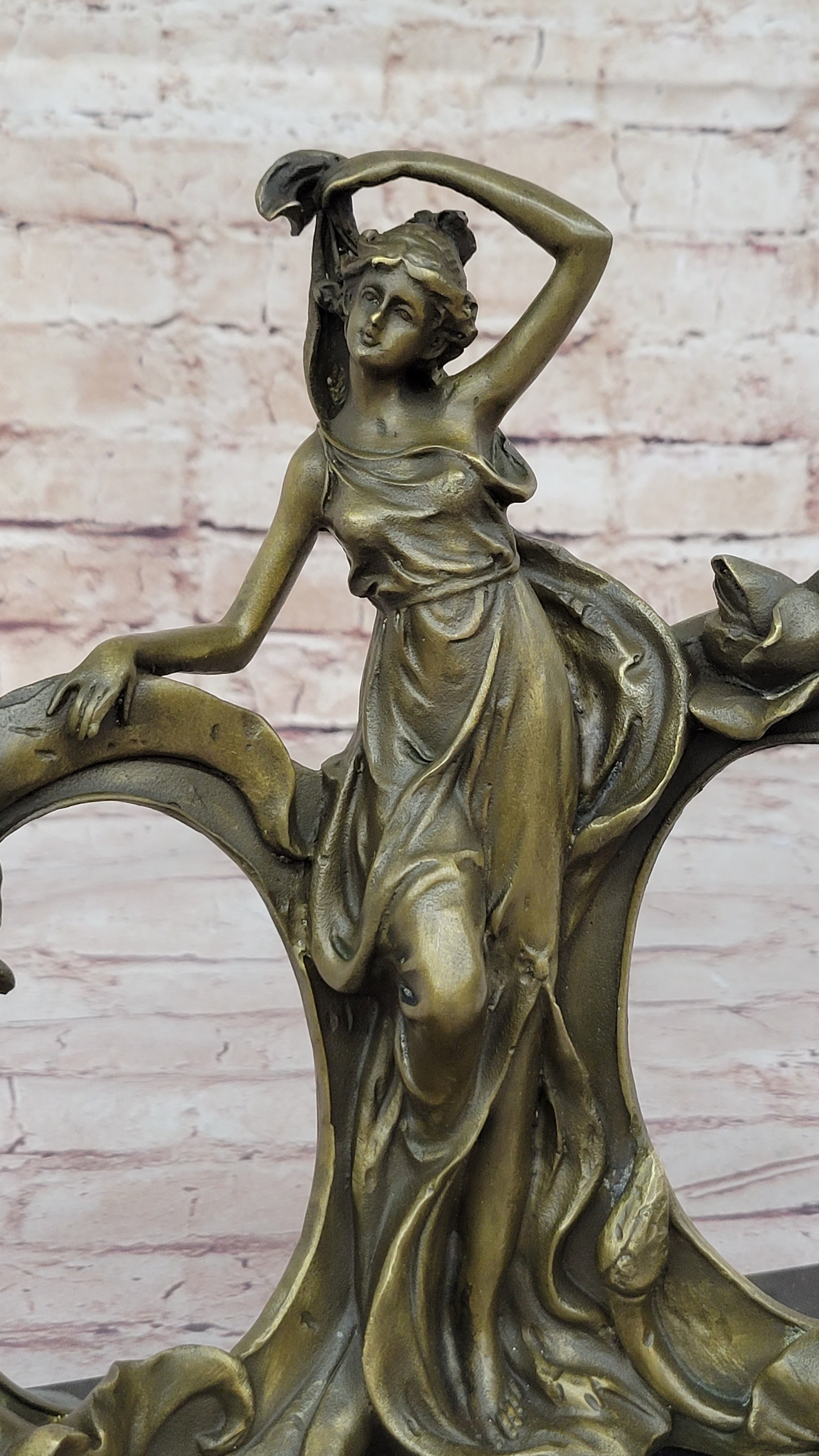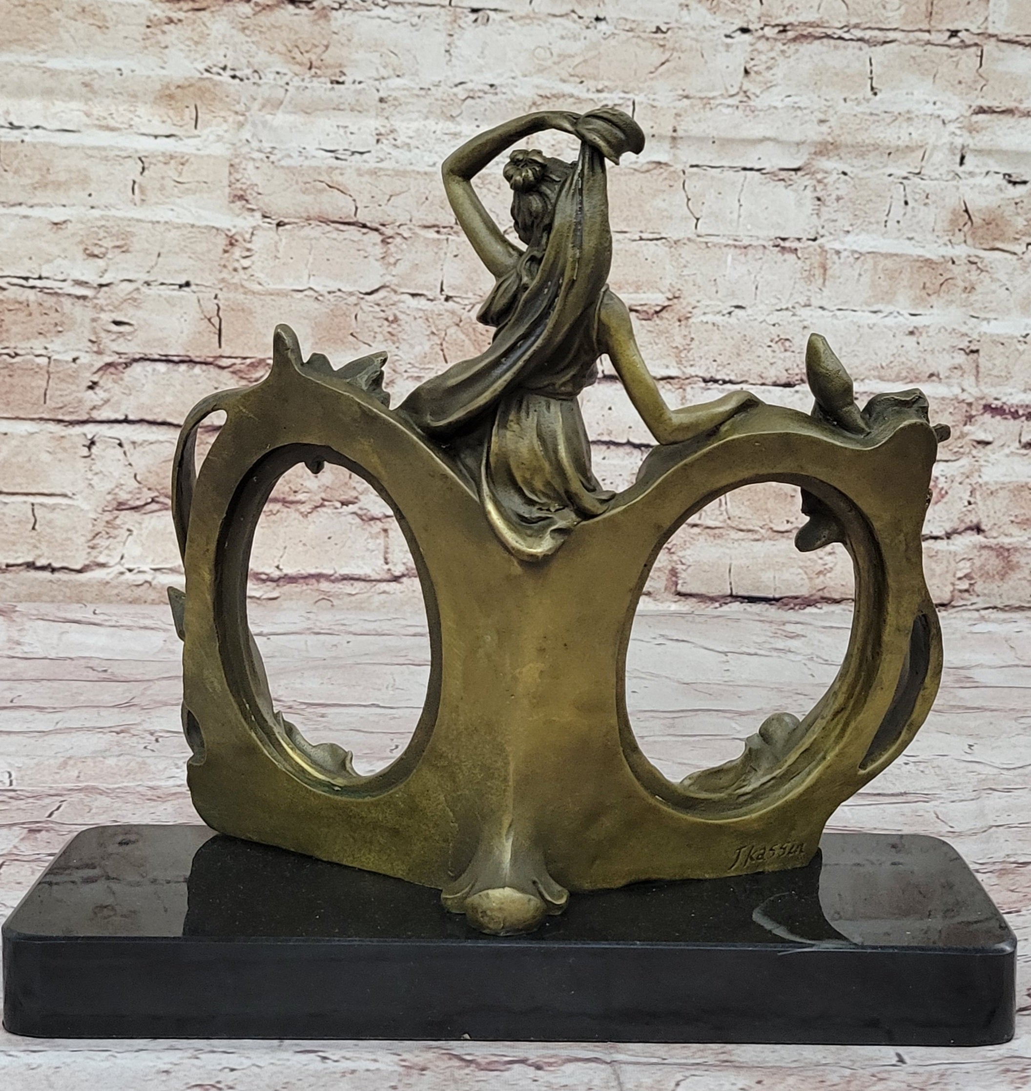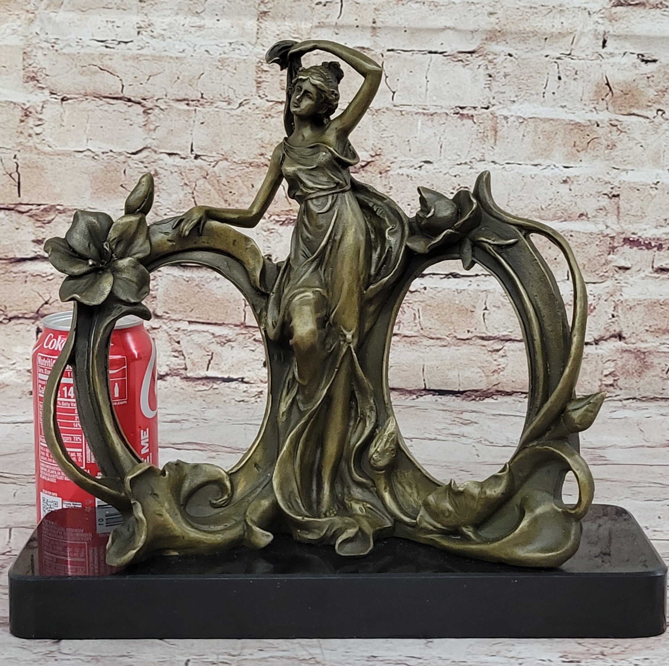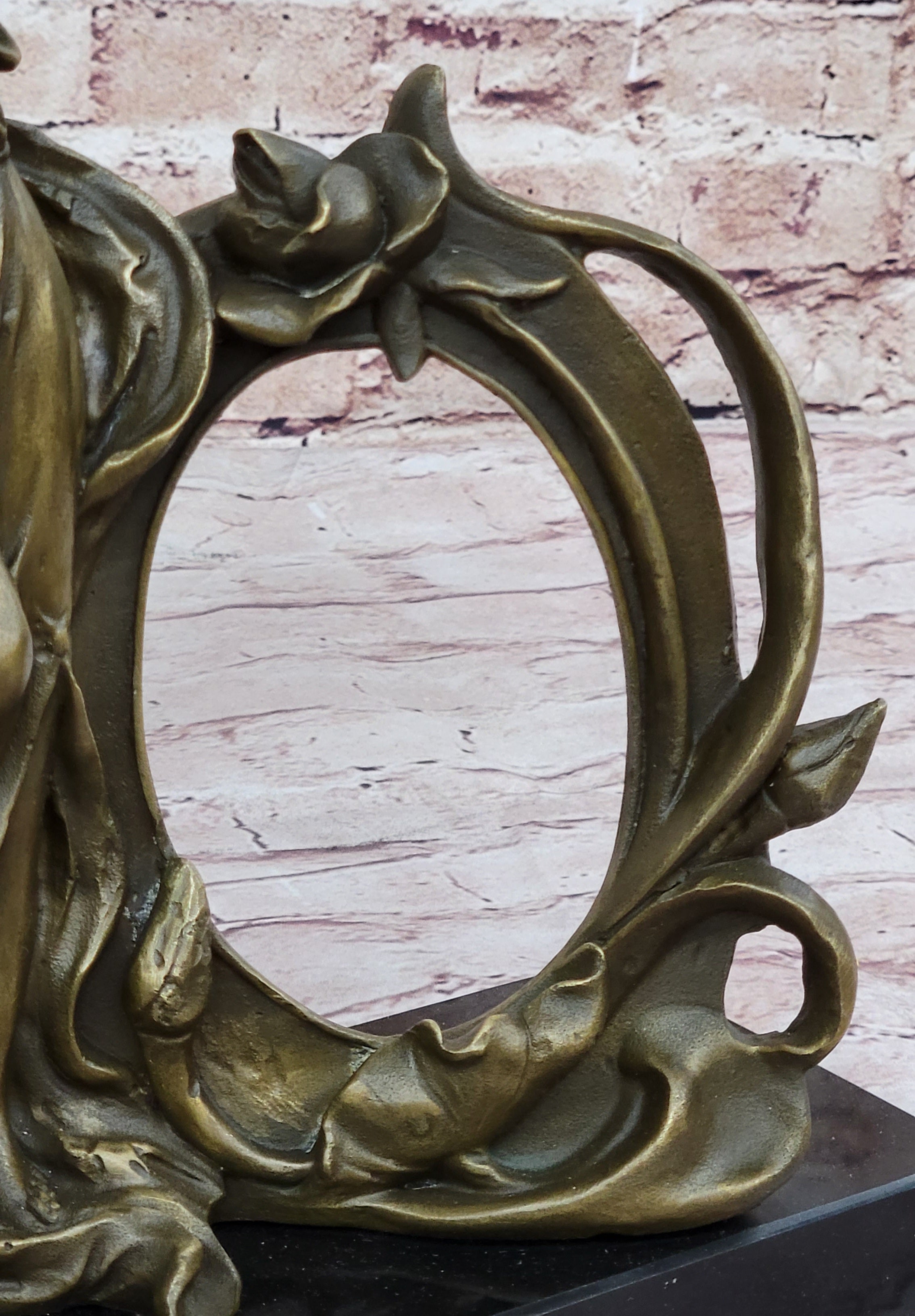Art Nouveau Bronze Lady Figural Picture Frame Hot Cast Detailed Maiden Sculpture