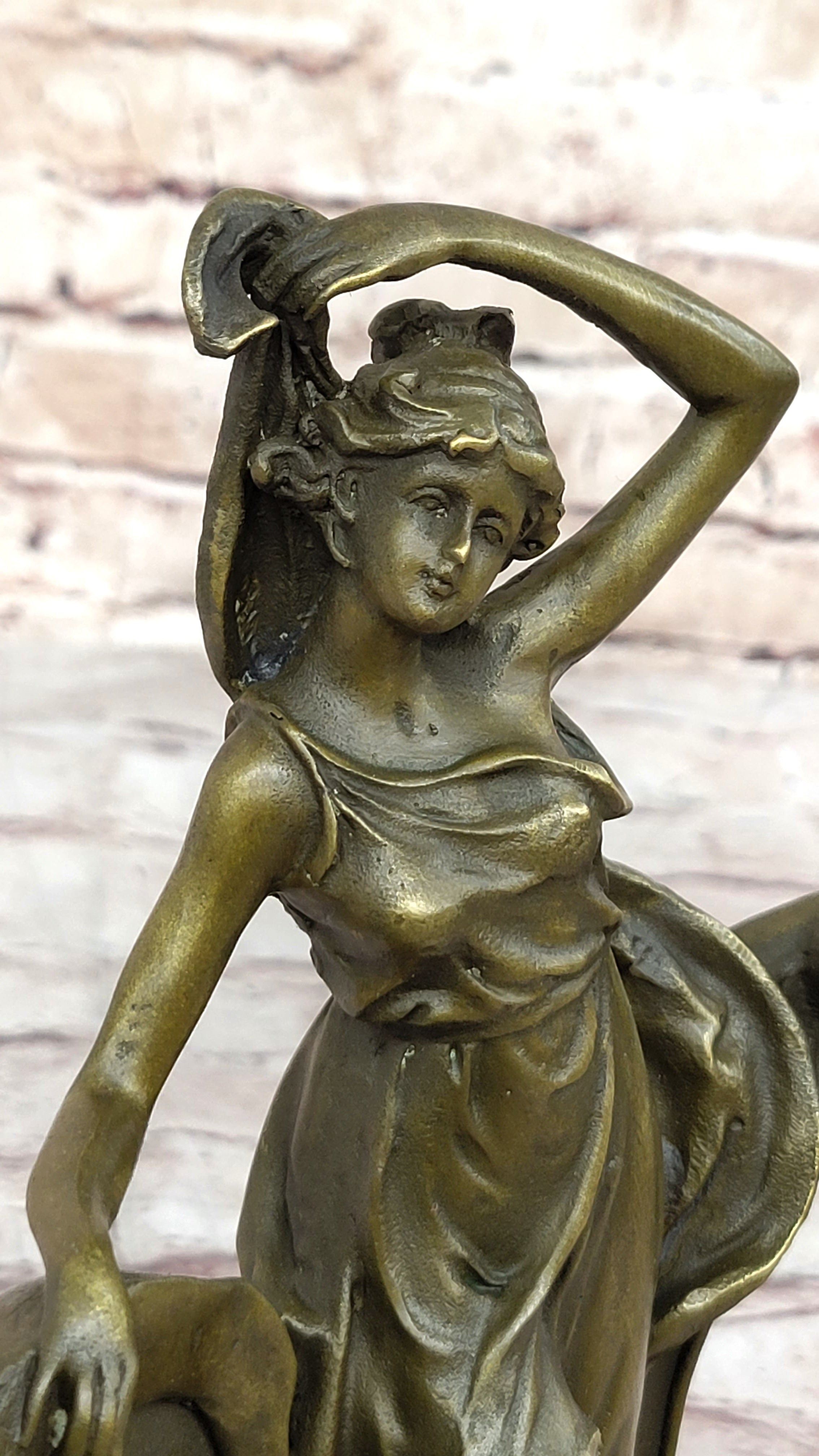 "The Lady Awakening" is a stunning addition to the European Bronze Finery Collection, meticulously crafted using the lost wax method to ensure the finest details and highest quality. This exquisite statue features a gorgeous lady sitting on a marble base adorned with a rich brown patina, adding a touch of elegance to any space.