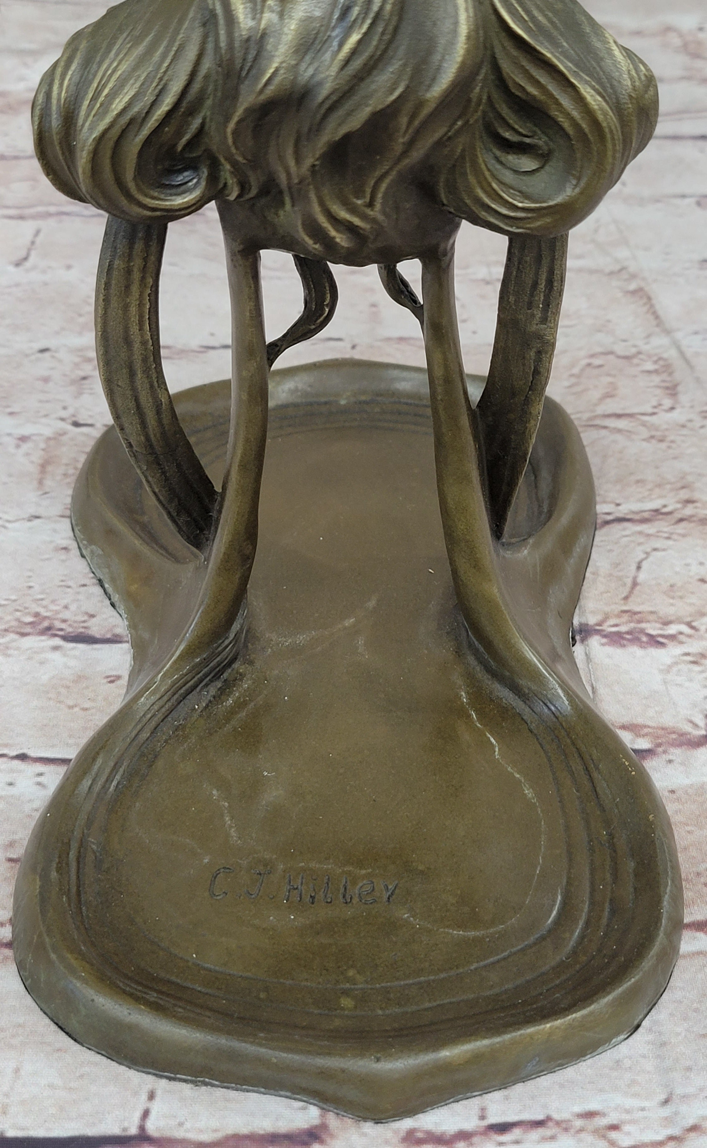 Handcrafted with meticulous care, this tray is made from real bronze, ensuring an exquisite depth and intricate detail that captures the eye. The artist's signature, Hiller, adds a mark of authenticity to this remarkable piece. The craftsmanship shines through, courtesy of the lost wax method, a technique renowned for preserving intricate details.