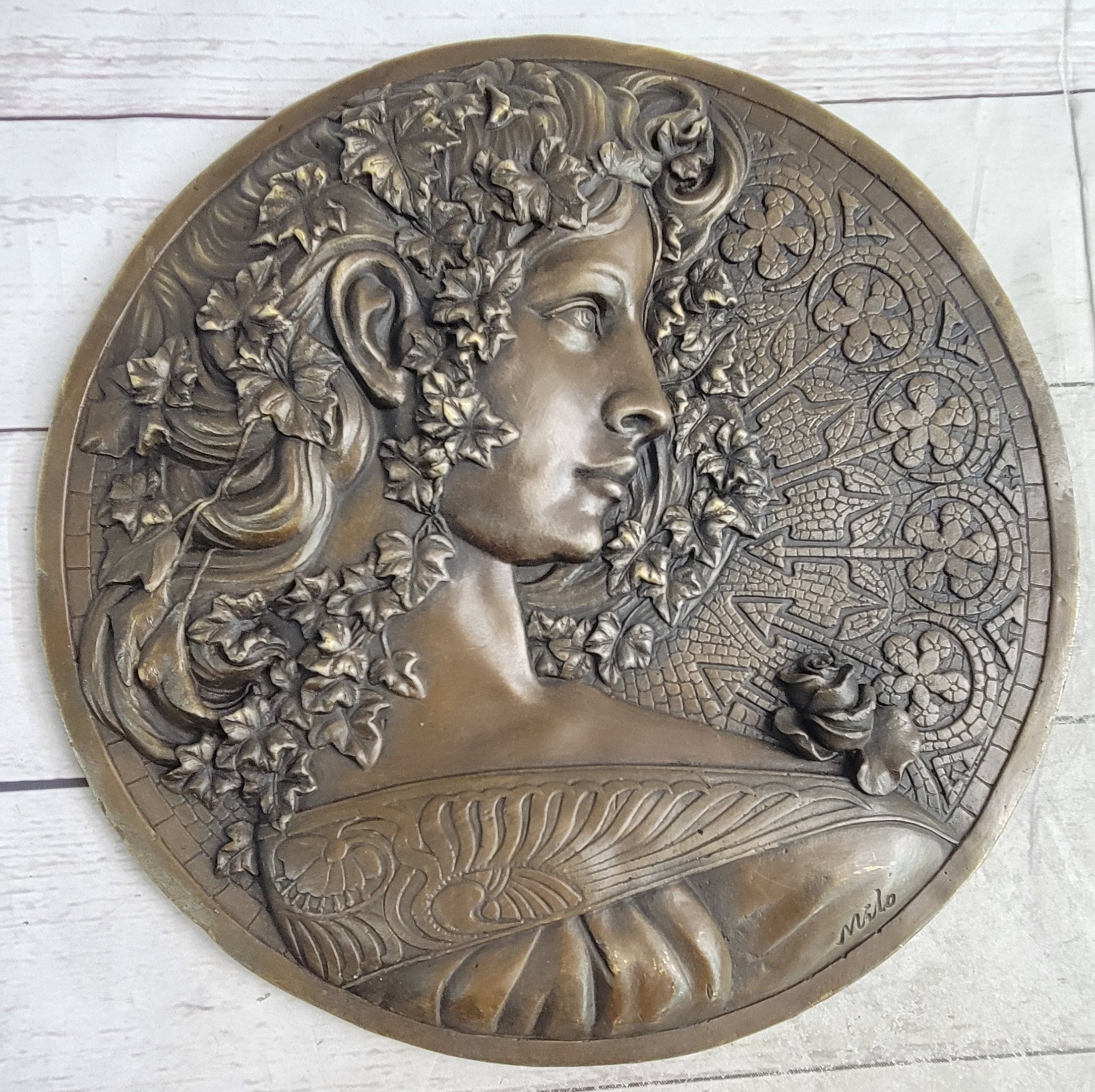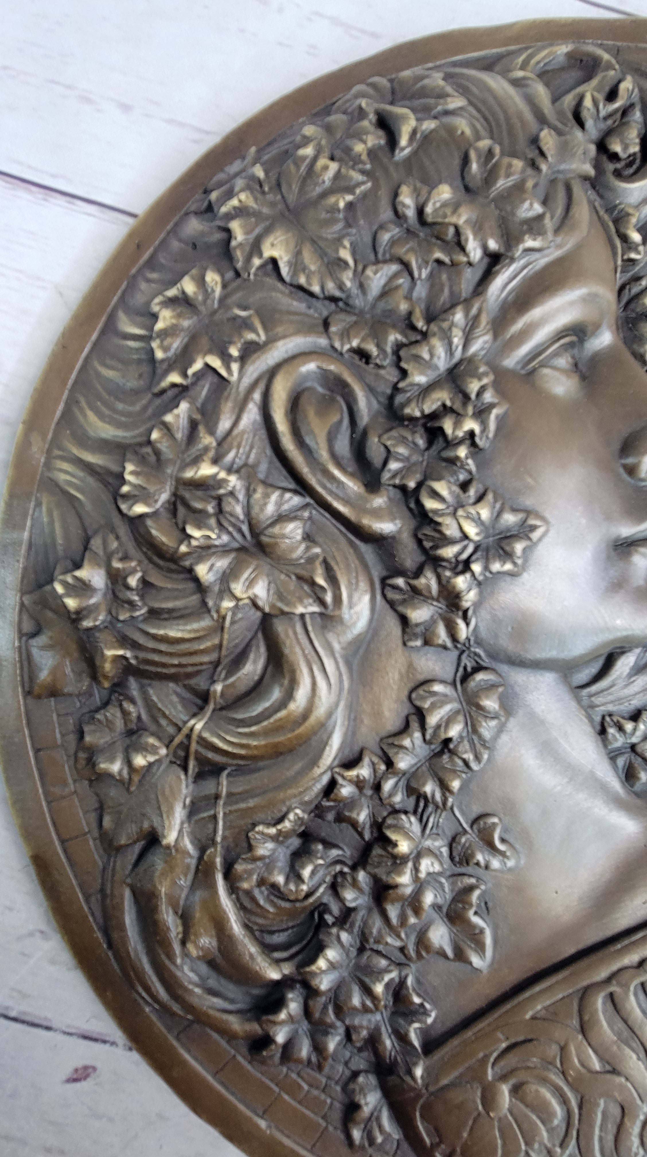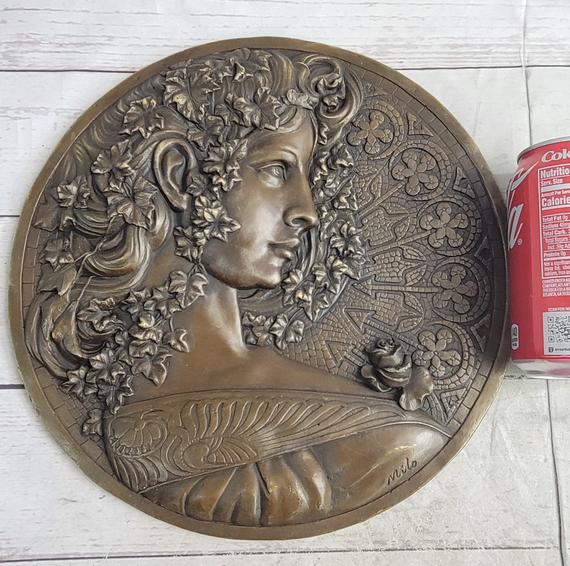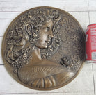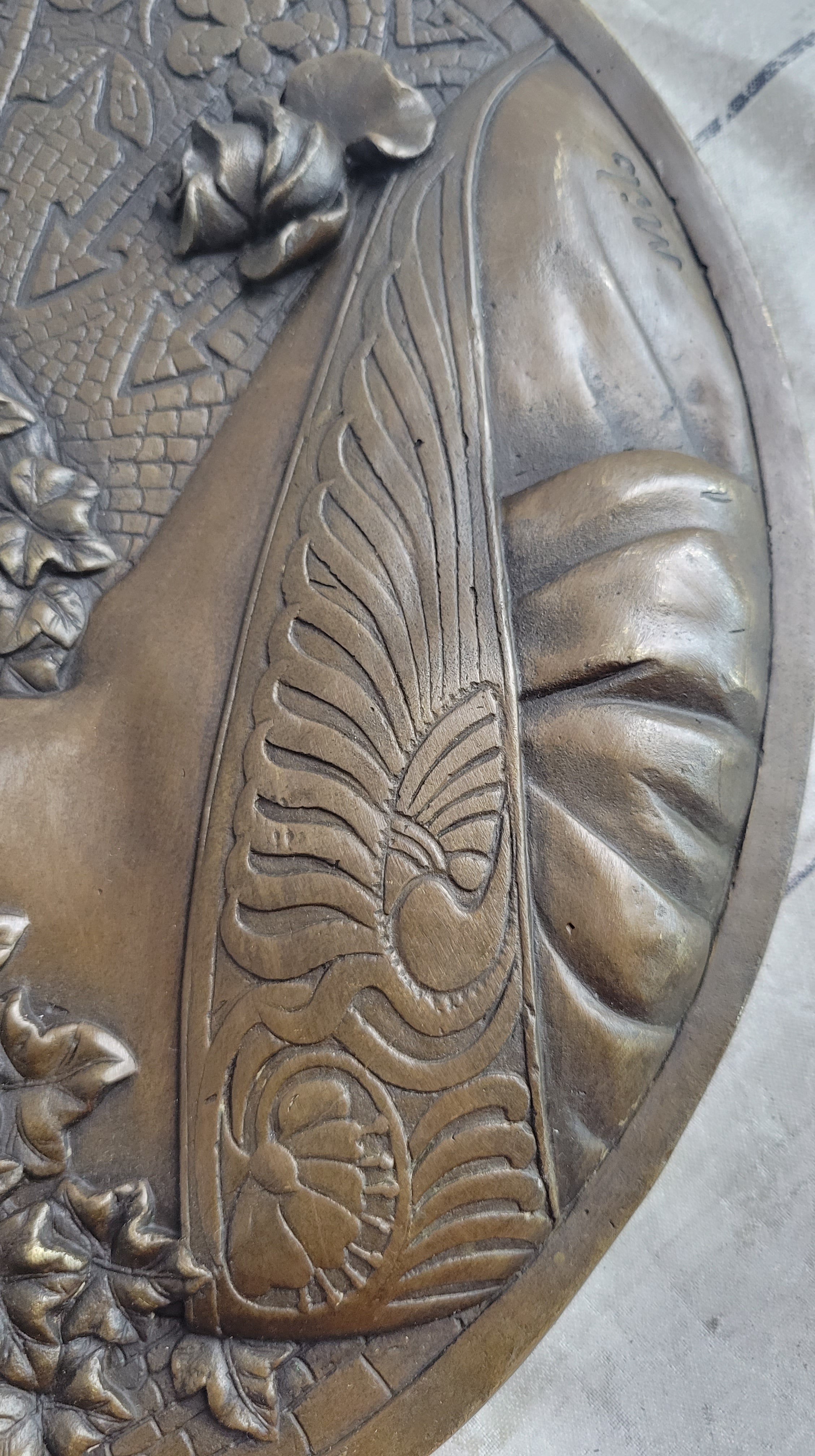 Art Nouveau Female Portrait Bronze Metal Hanging Wall Plate Plaque Signed Art by Milo