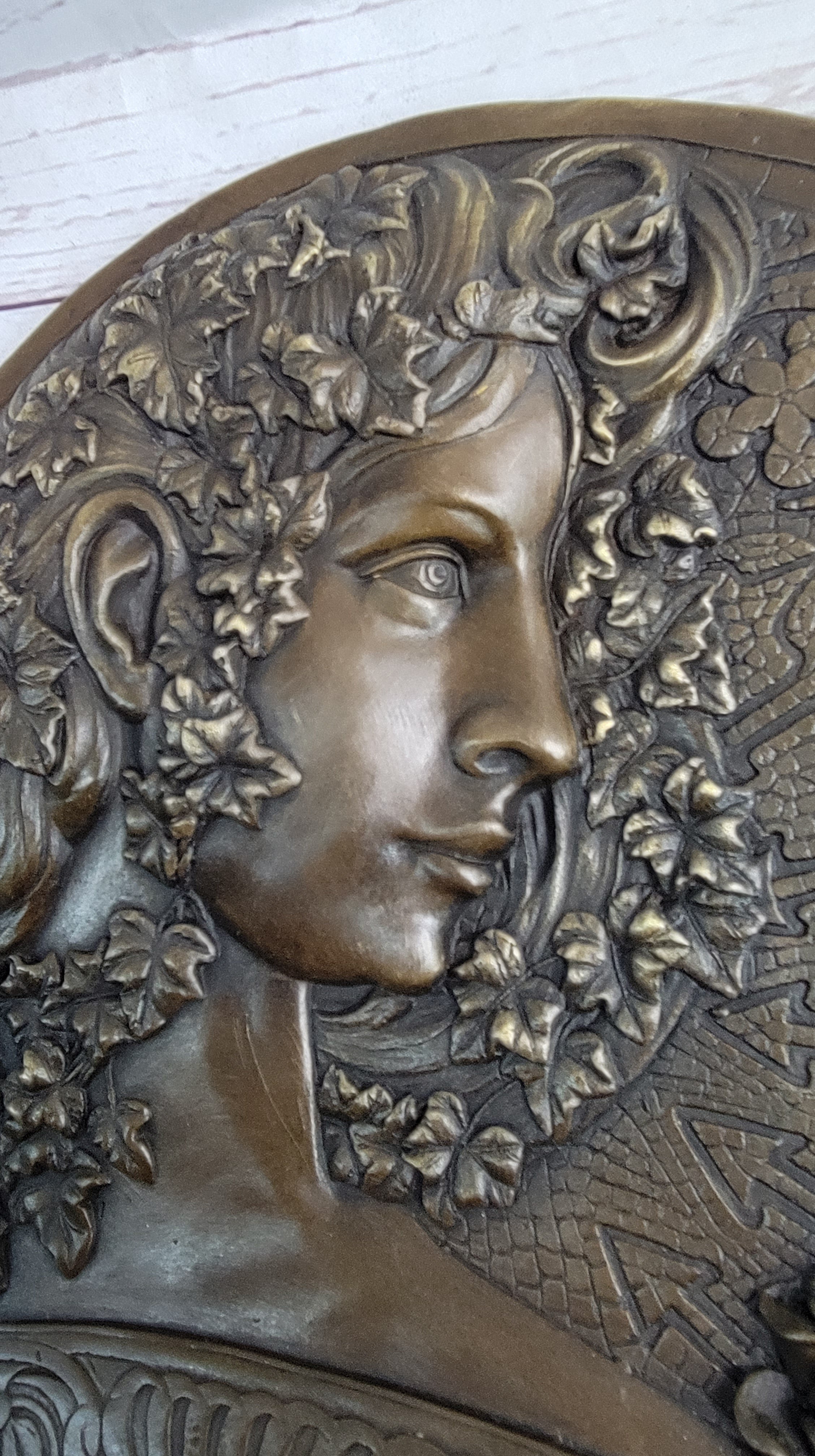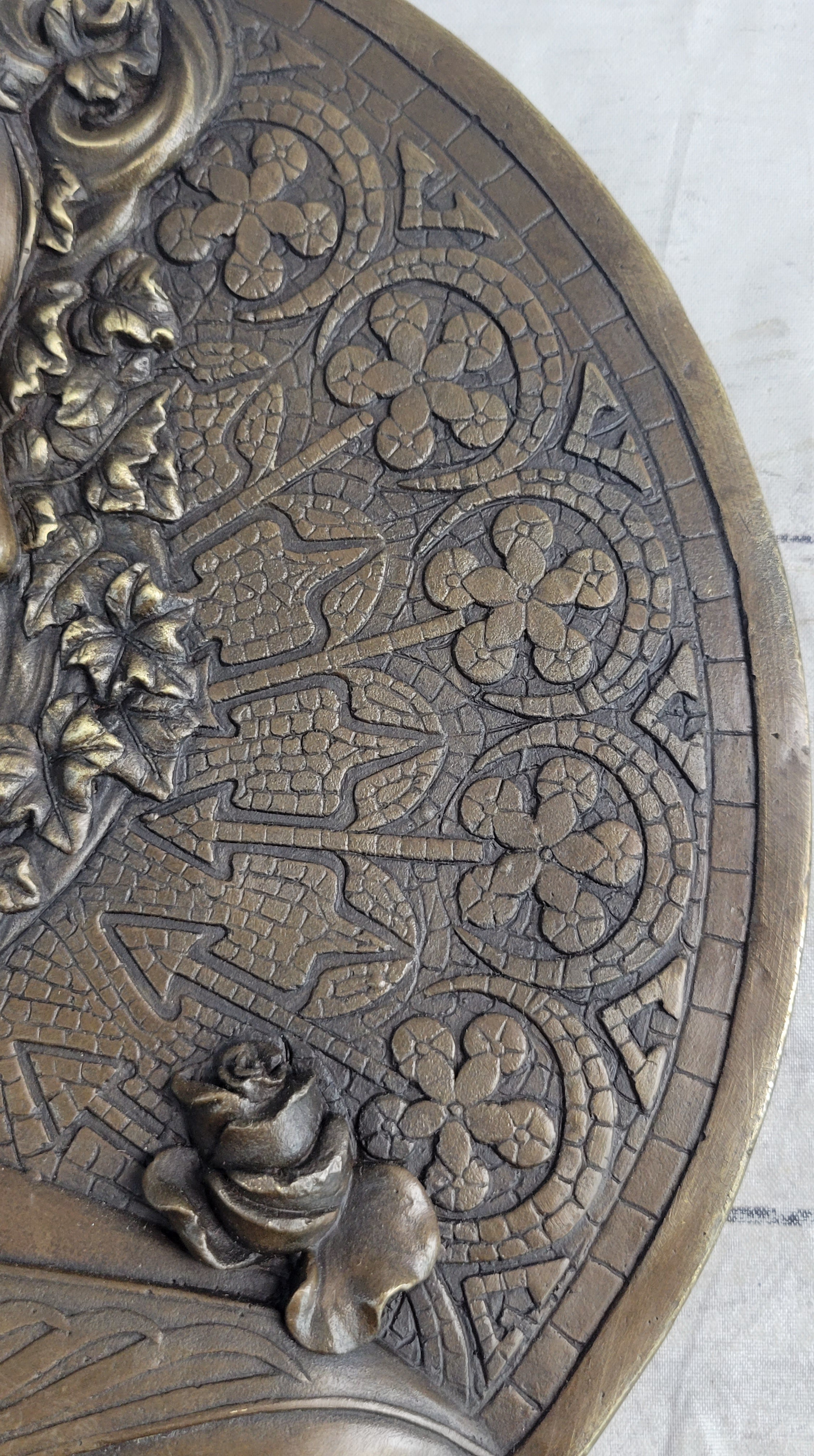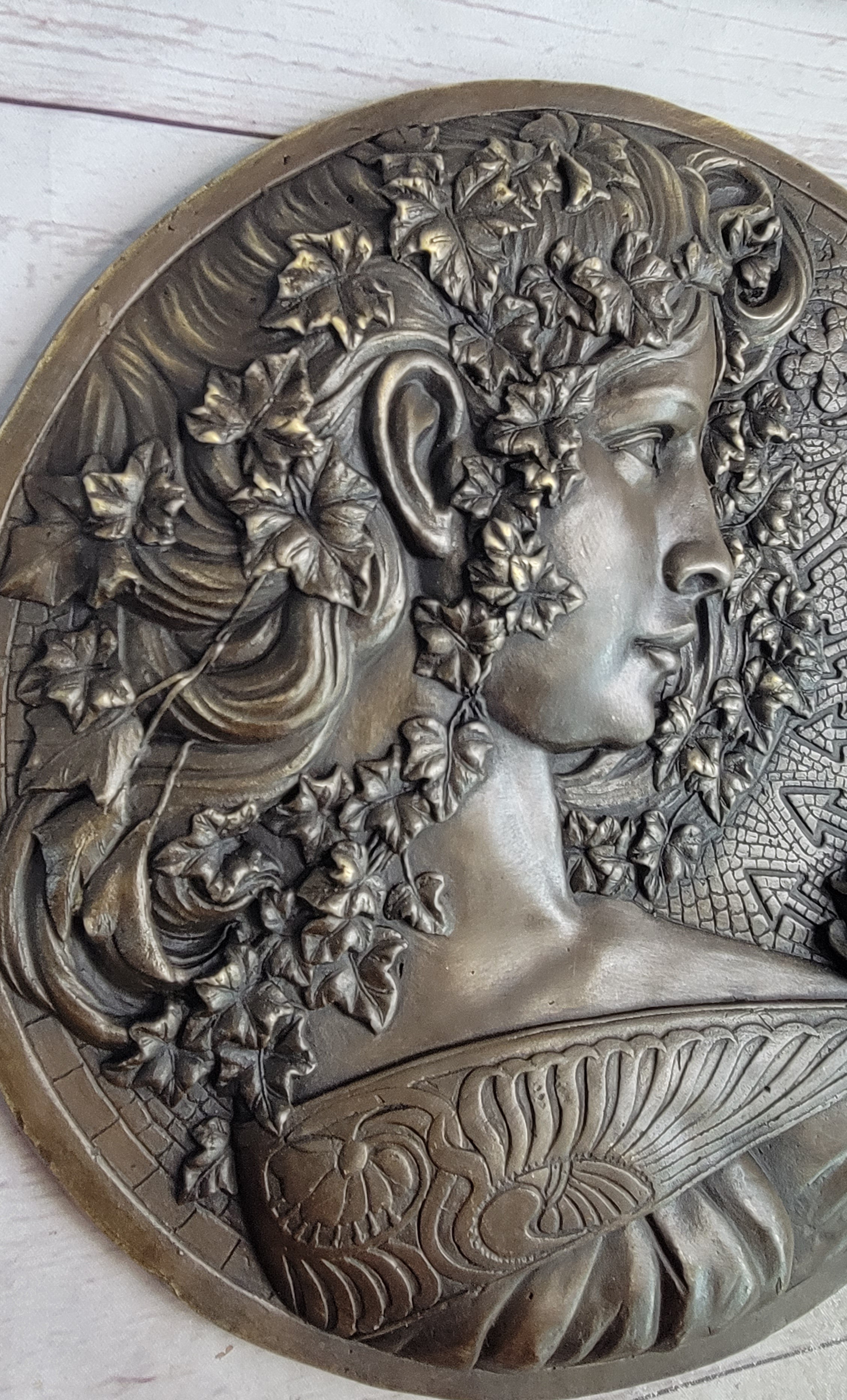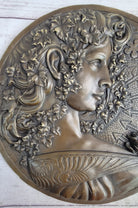 Art Nouveau Female Portrait Bronze Metal Hanging Wall Plate Plaque Signed Art by Milo