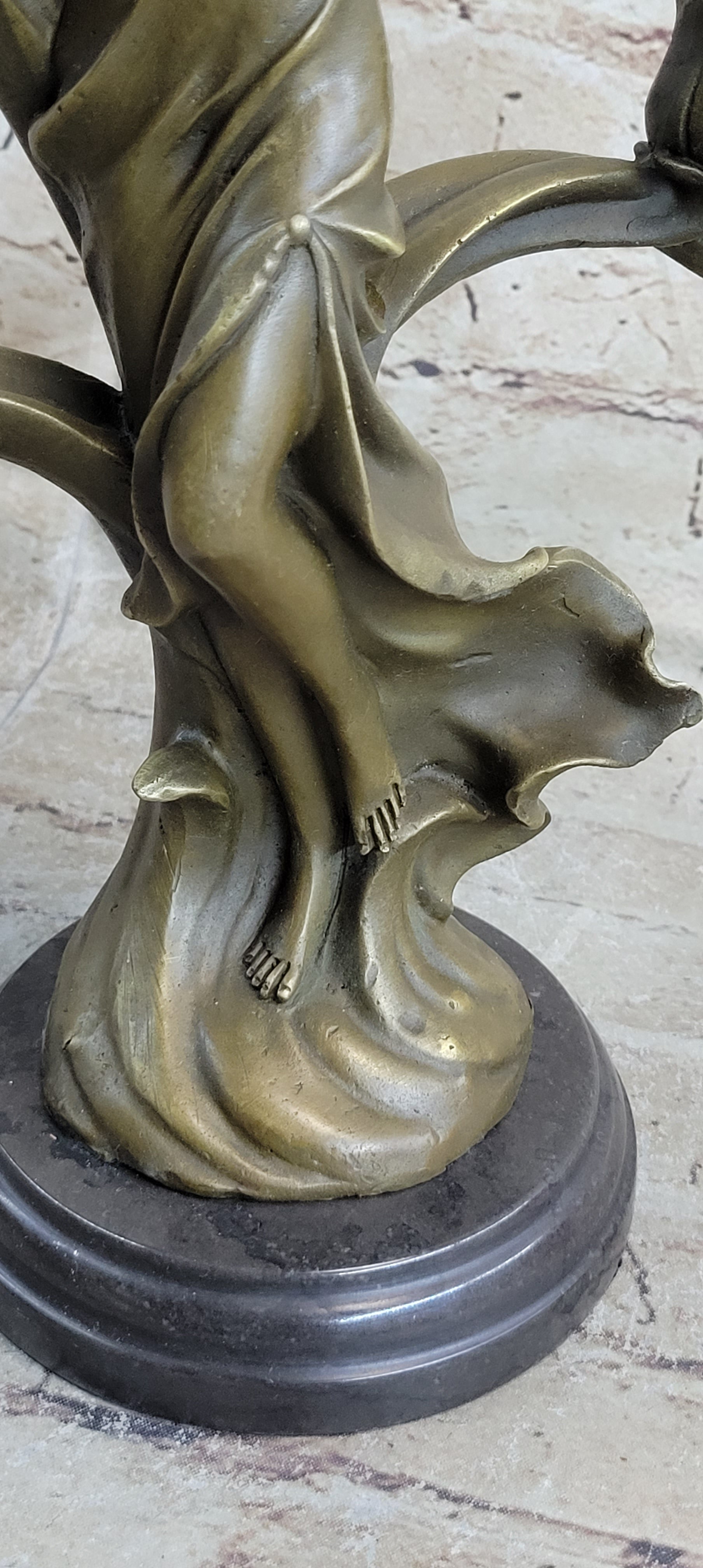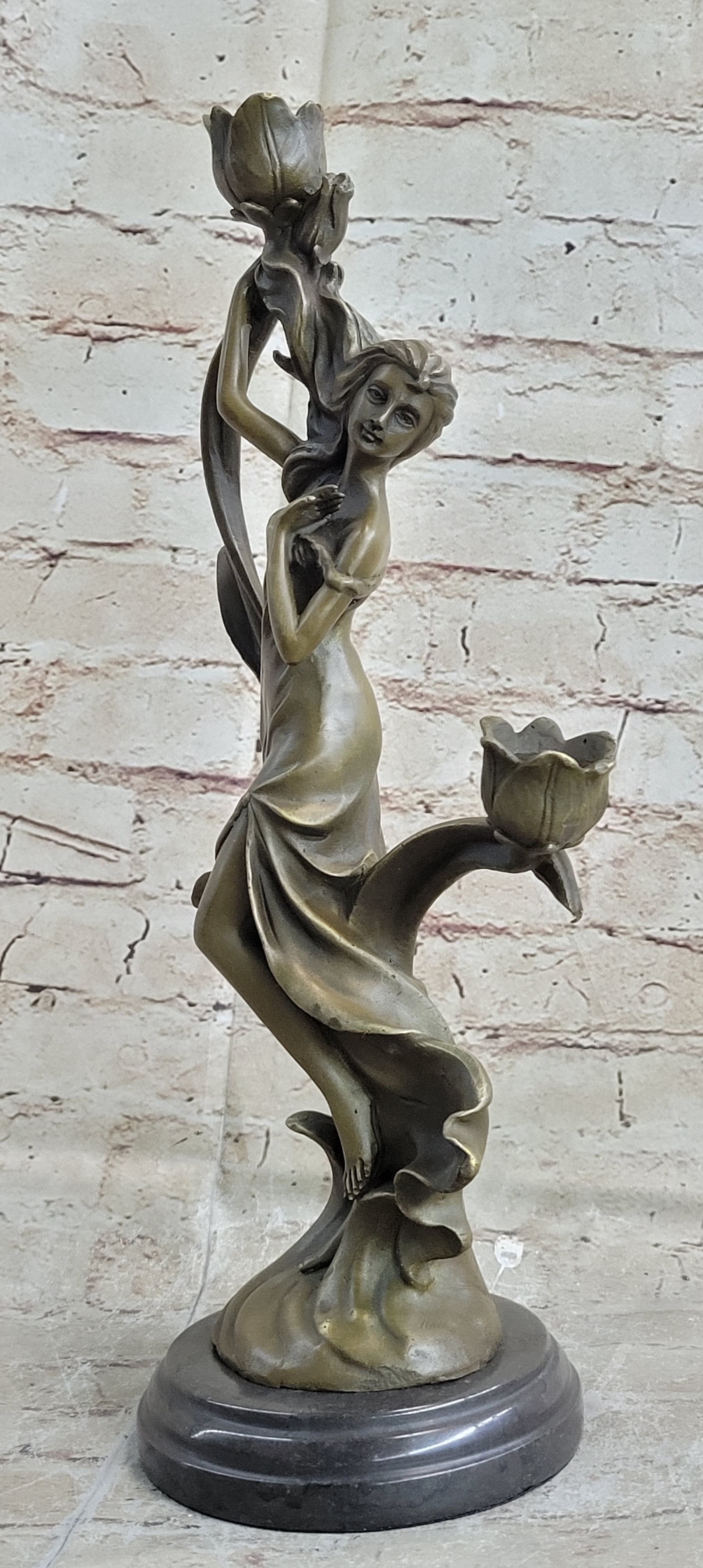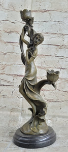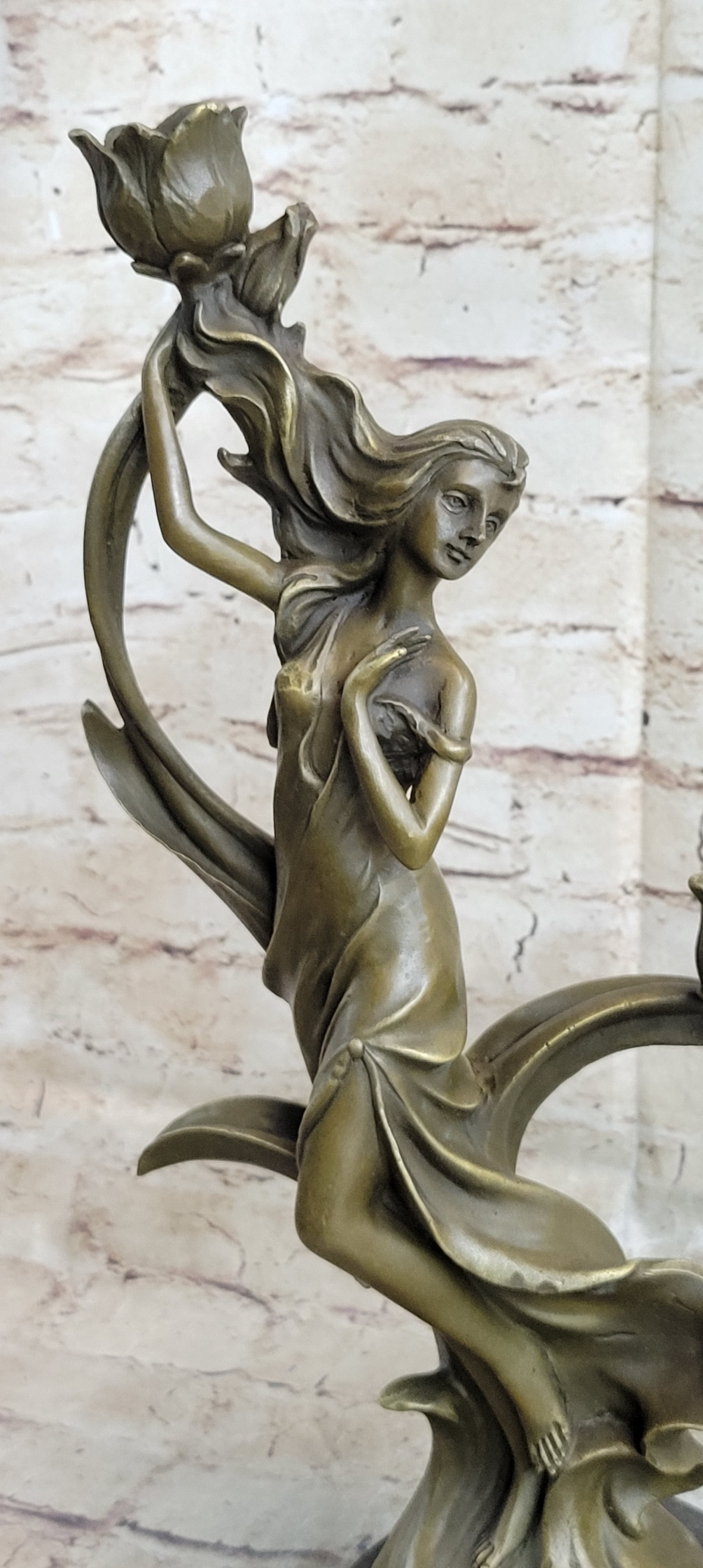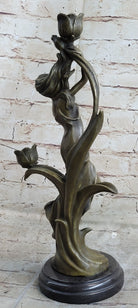 Art Nouveau Floral Female Dancer Bronze Sculpture Candelabra