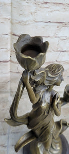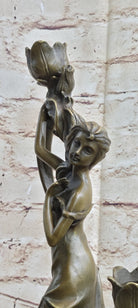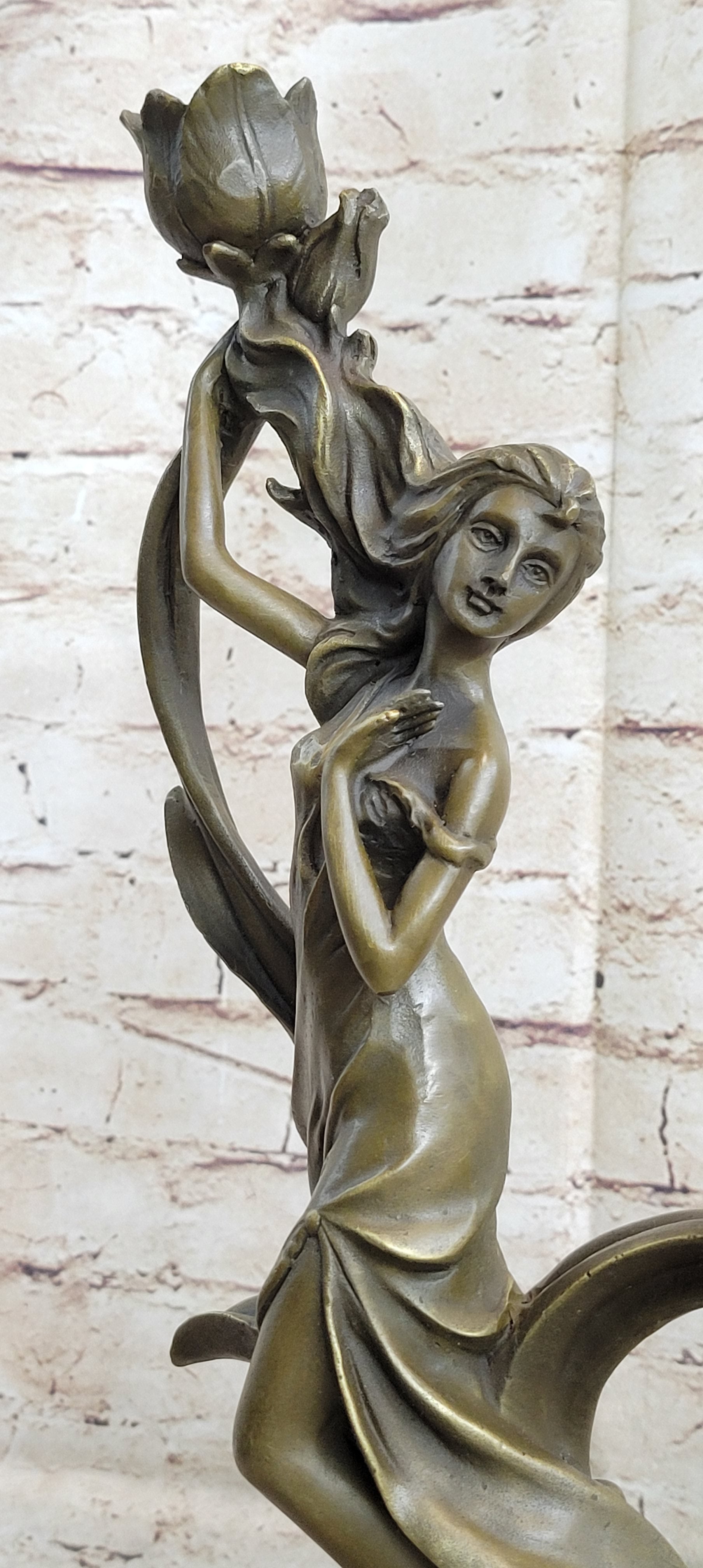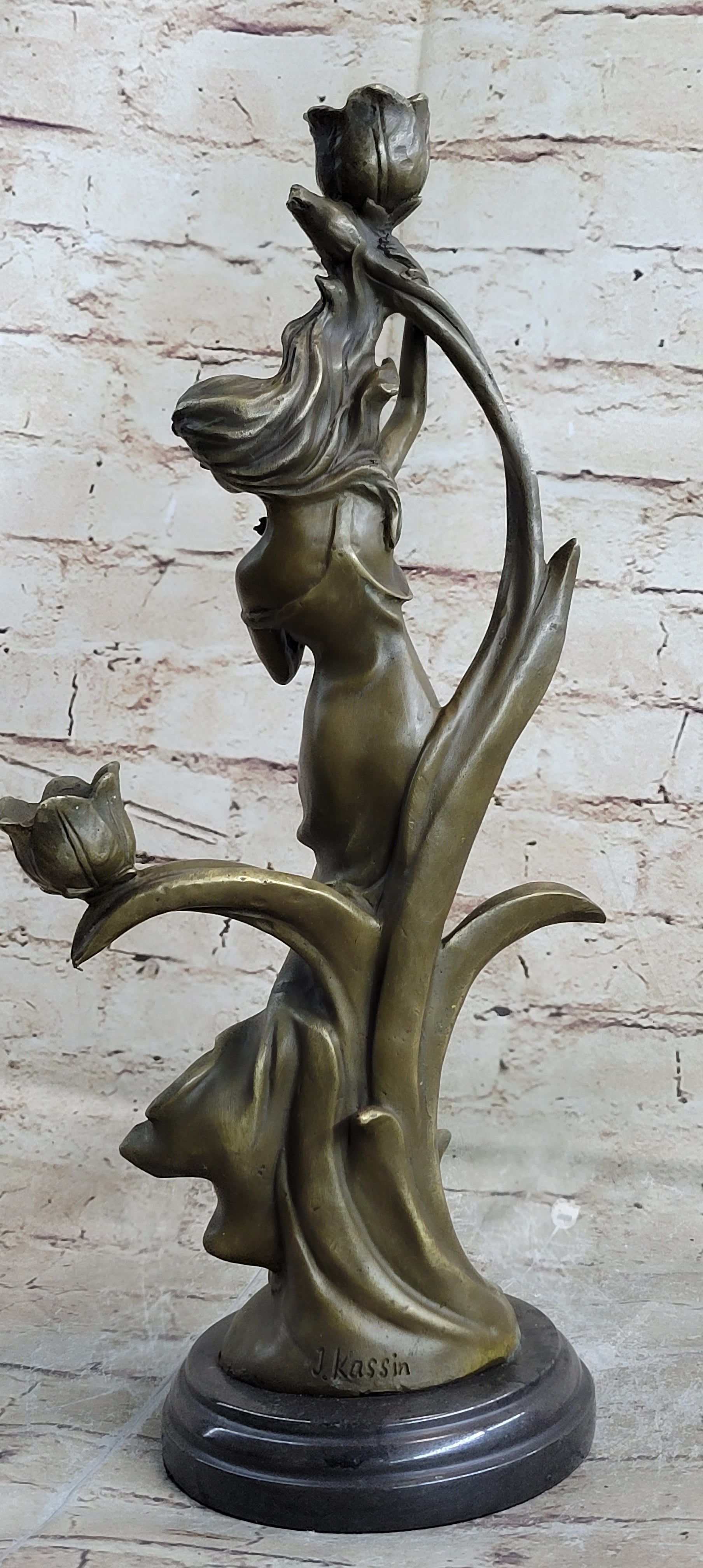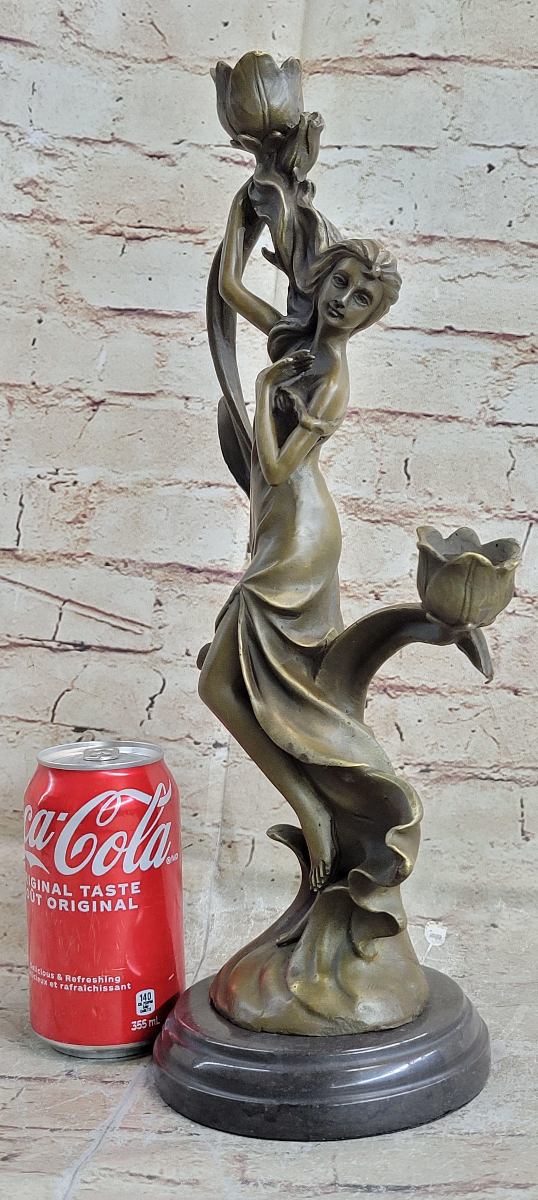 Art Nouveau Floral Female Dancer Bronze Sculpture Candelabra