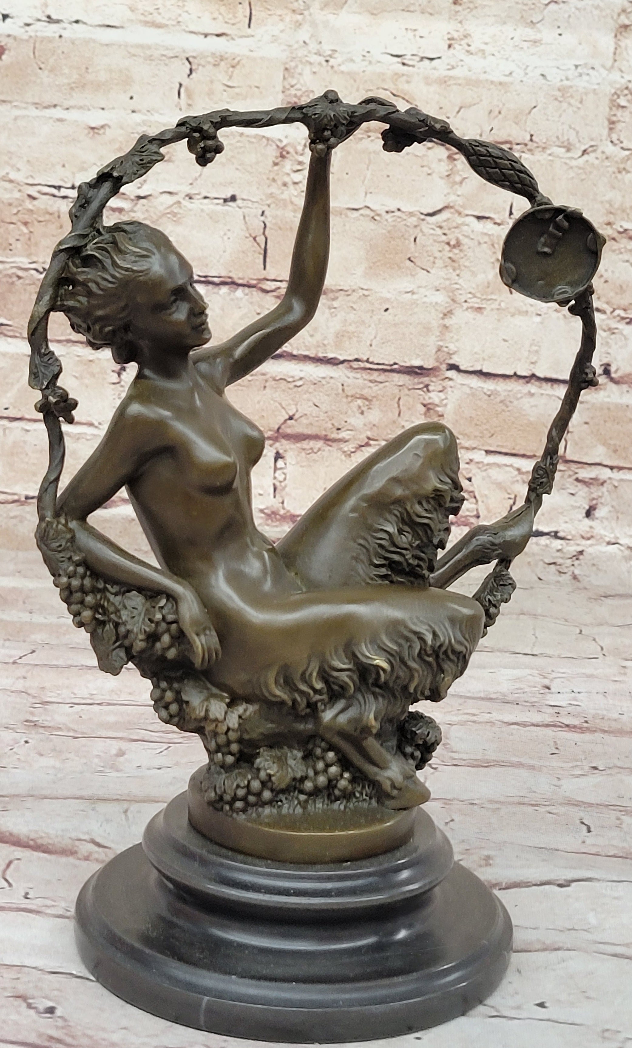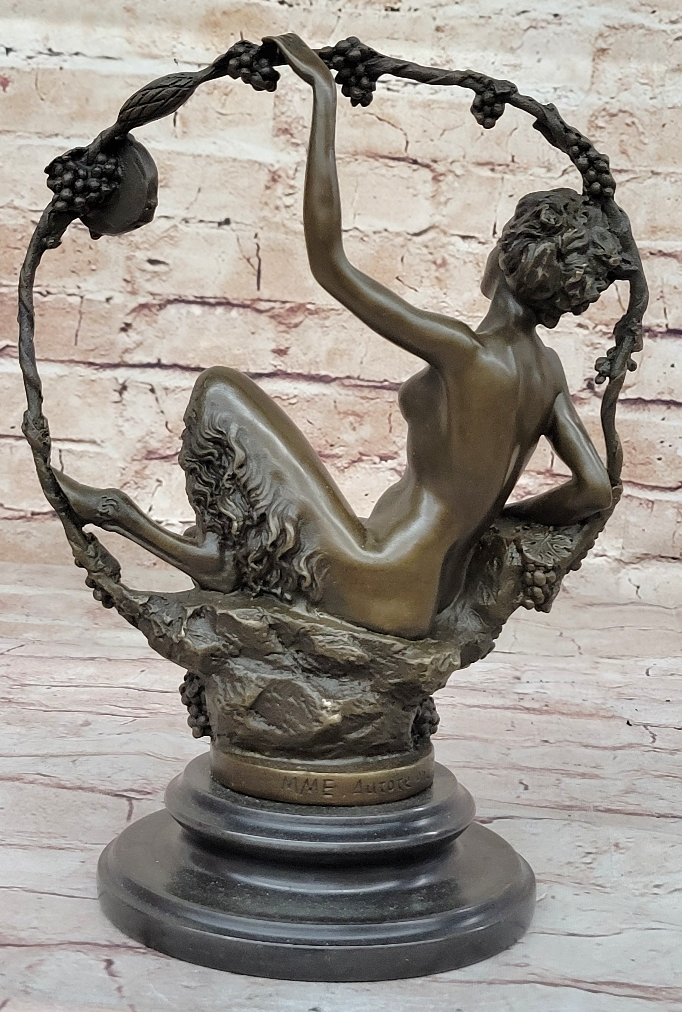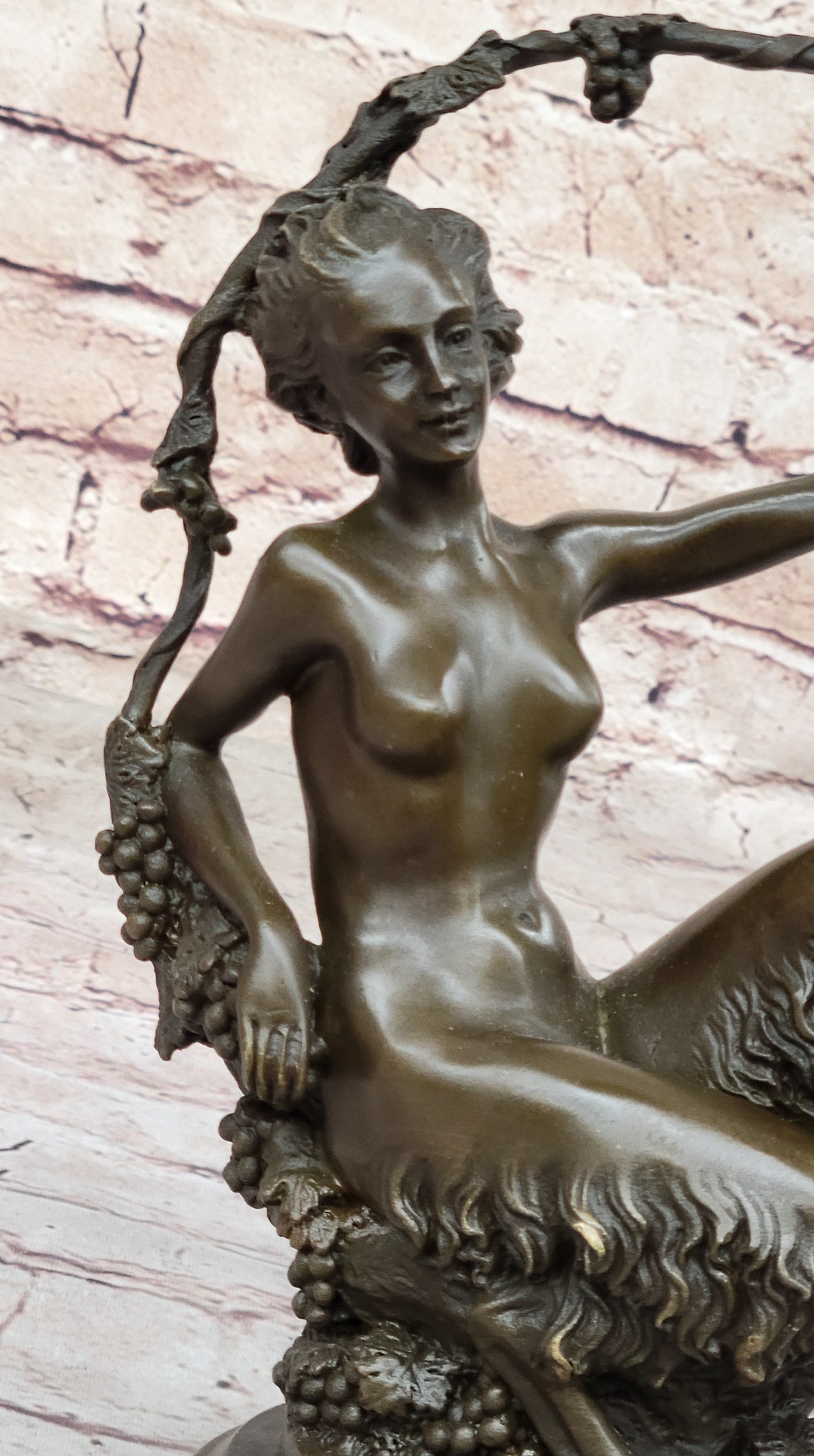 Nude Female Faun in Wreath of Vines Bronze Sculpture Statue Art after Aurore Onu
