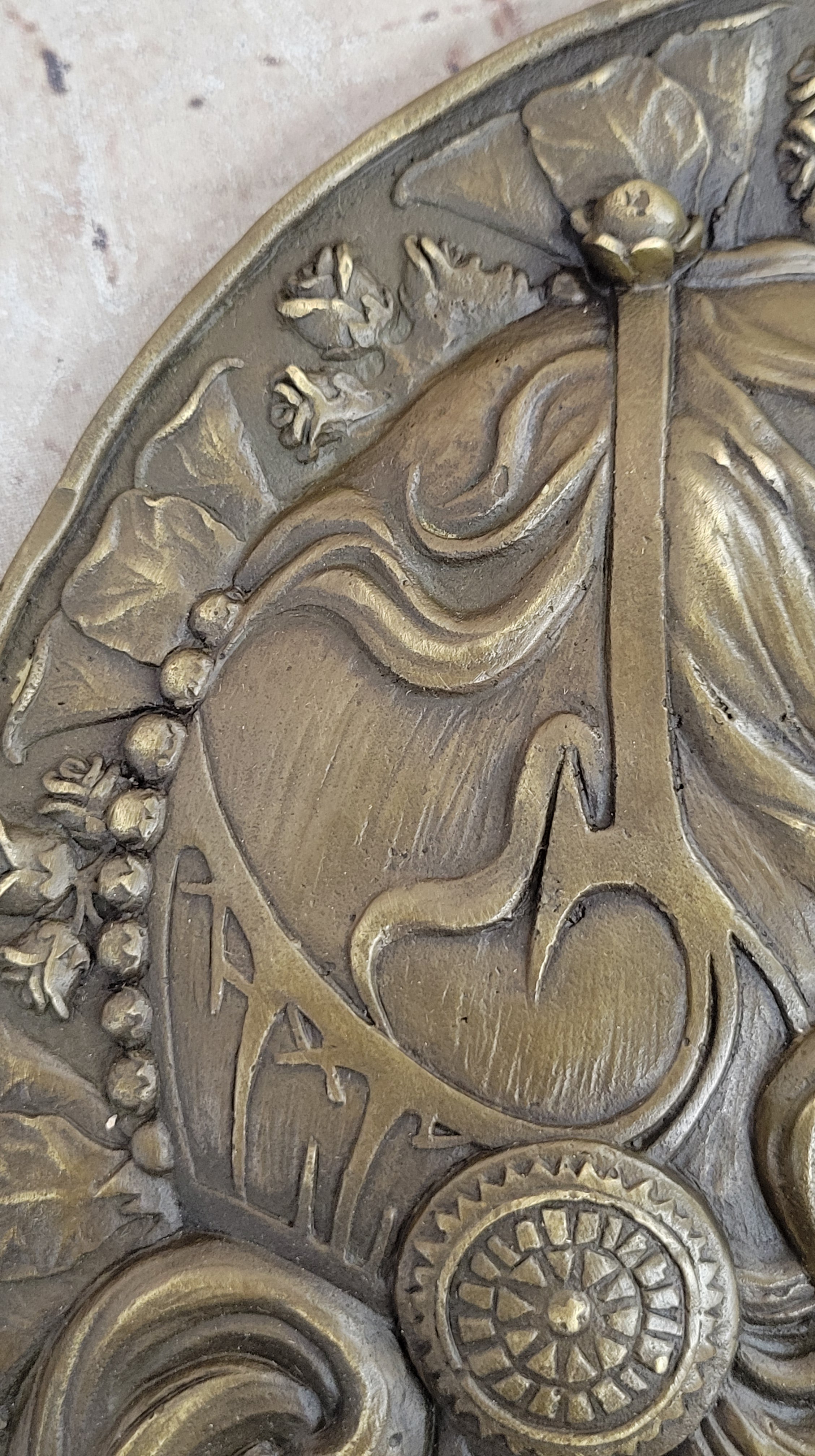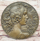 Art Nouveau Maiden Bronze Female Profile Wall Plaque by Milo