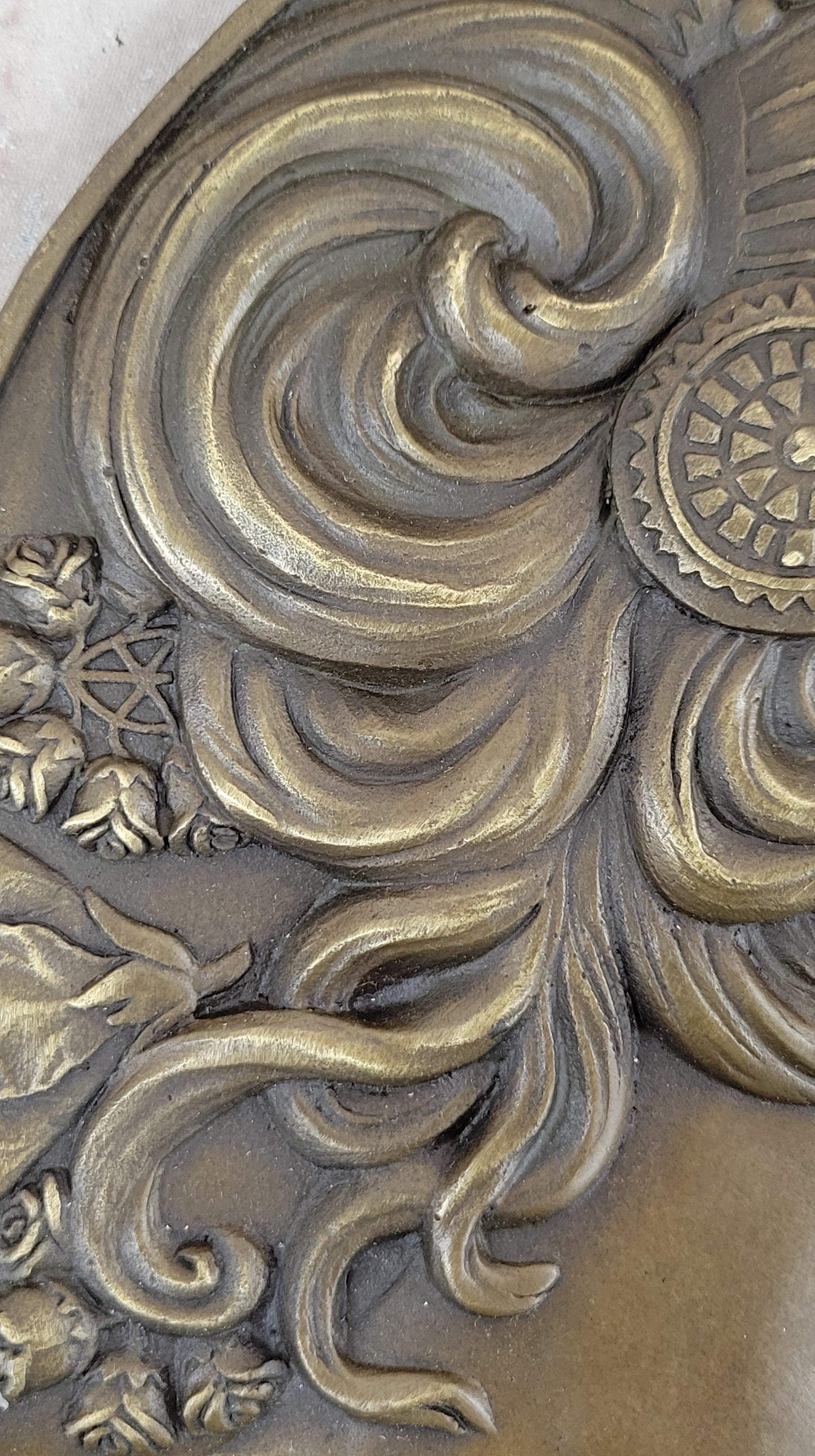 This beautiful wall sculpture depicts the profile of a young woman, her expression calm and solemn. Her gentle features are complemented by an air of quiet grace, drawing the viewer in for a closer look.