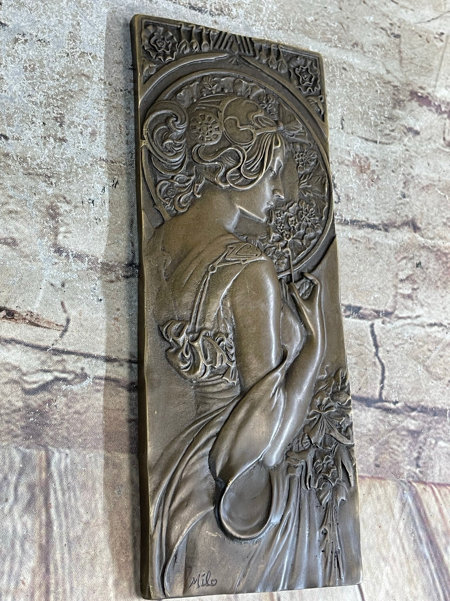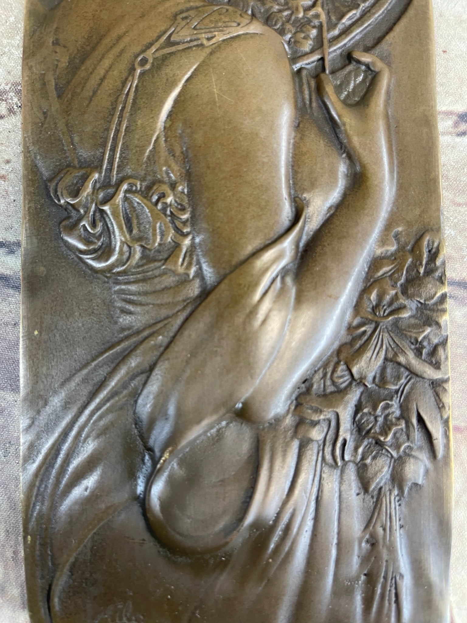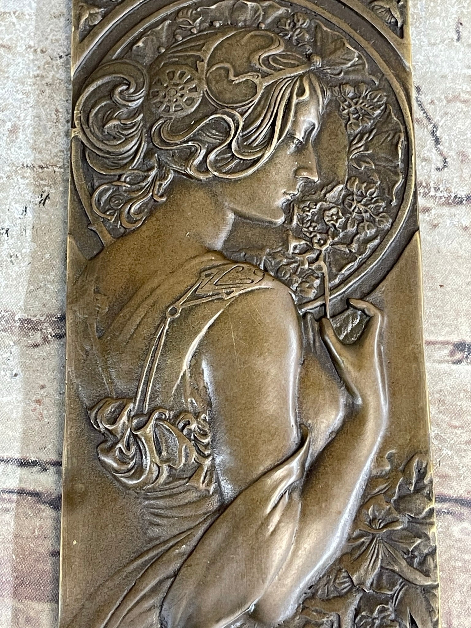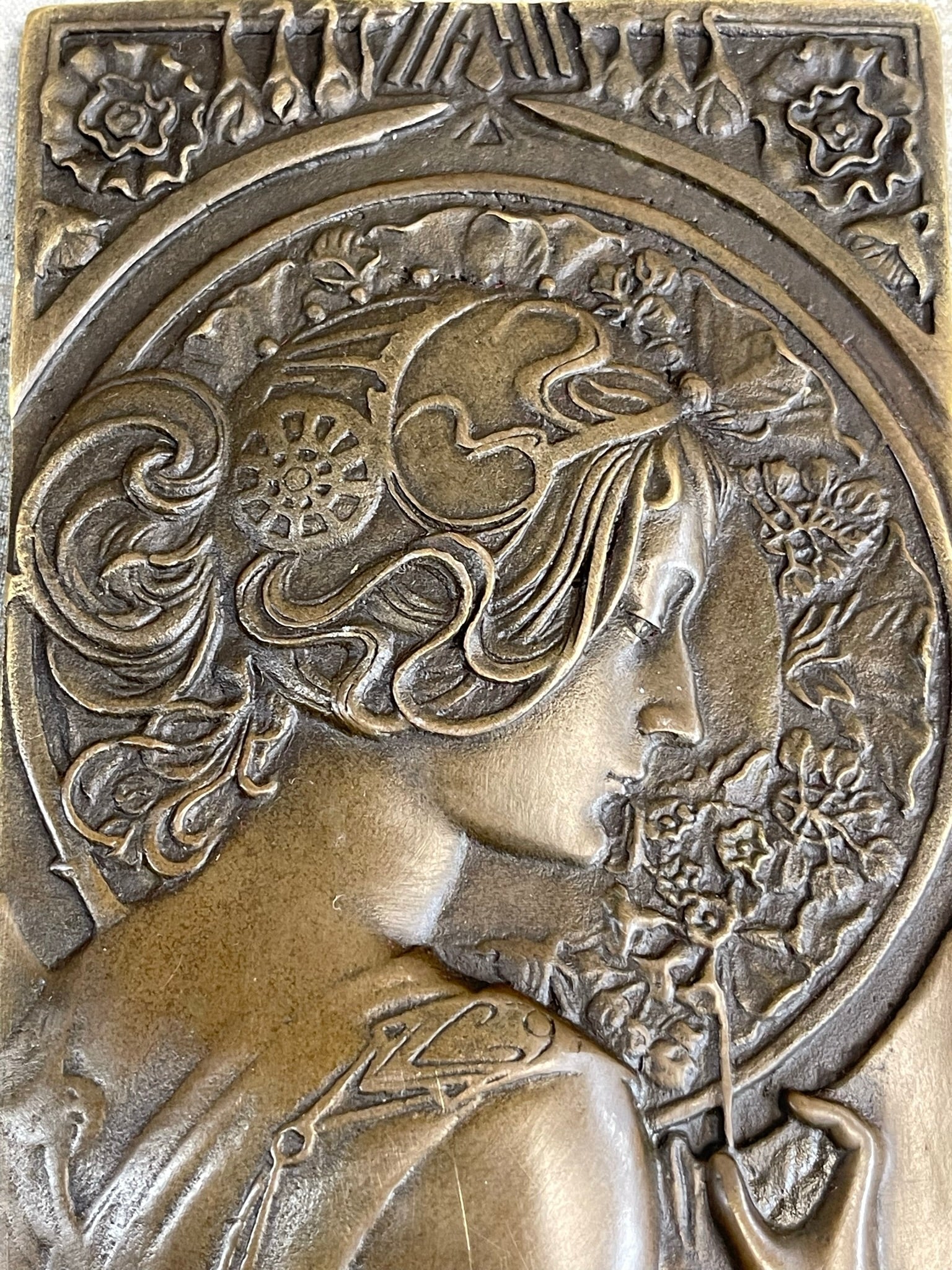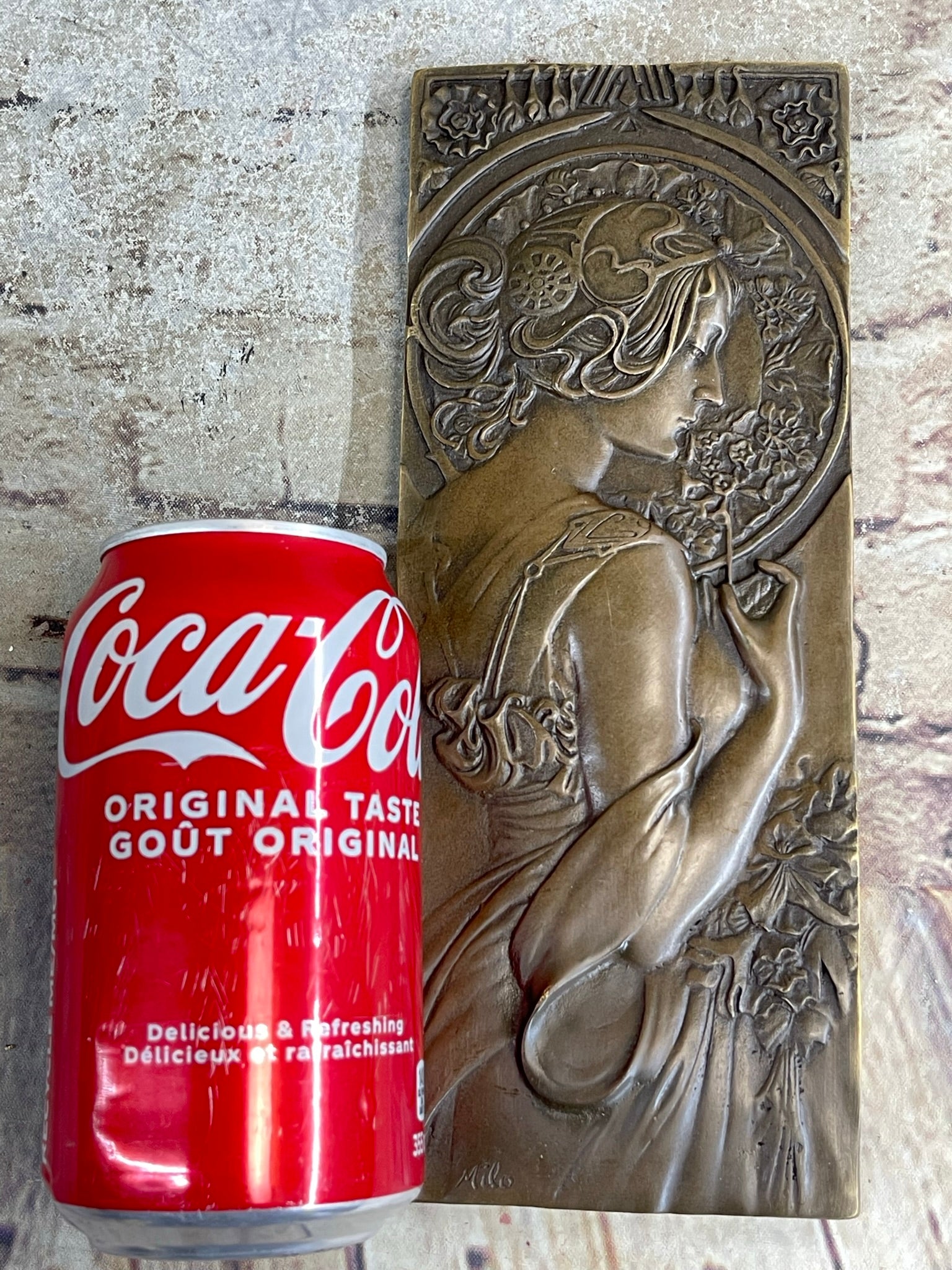 Art Noveau Female Woman Portrait Bas Relief Bronze Sculpture Carving Hanging Art 9.5" x 4"