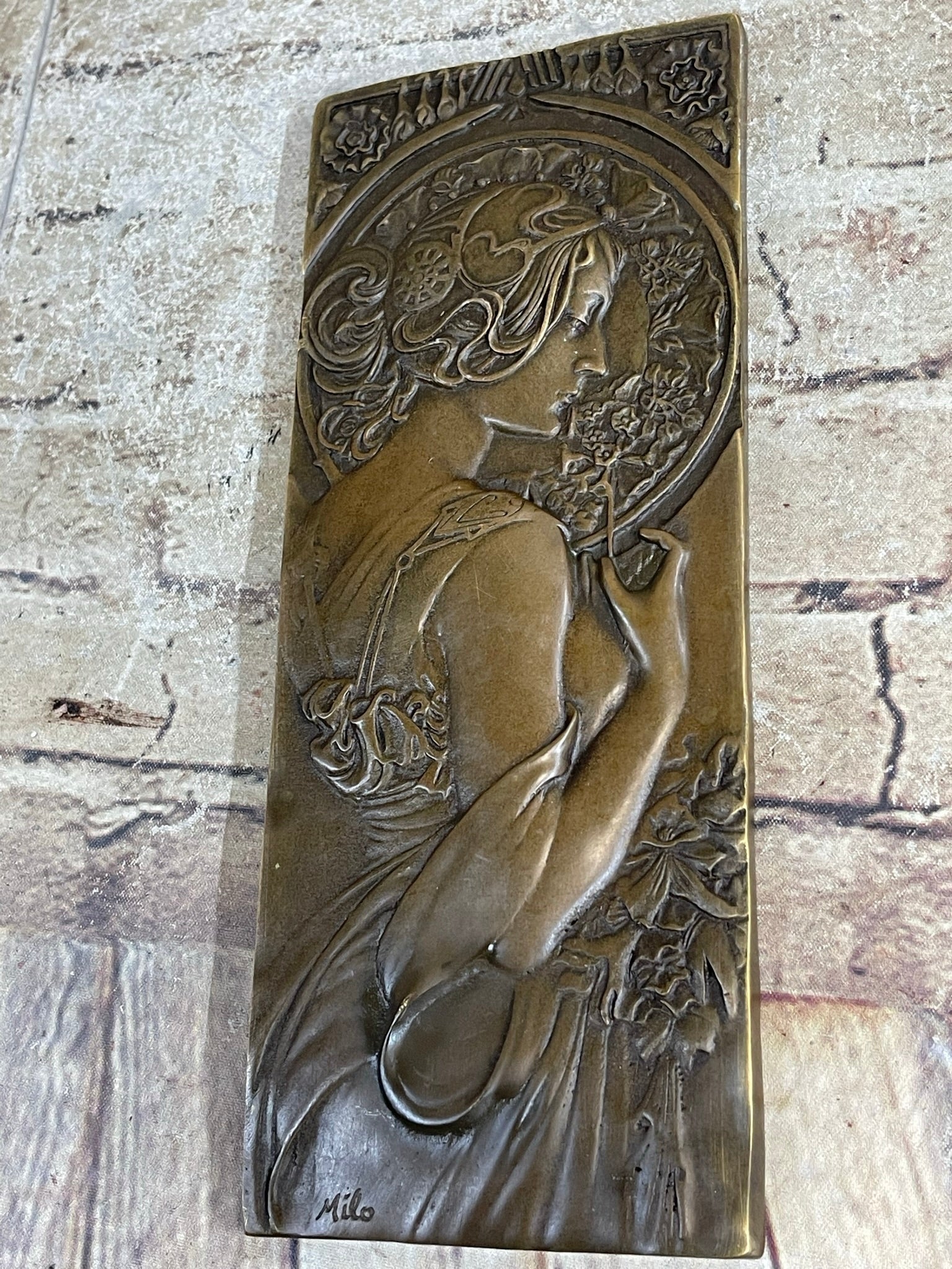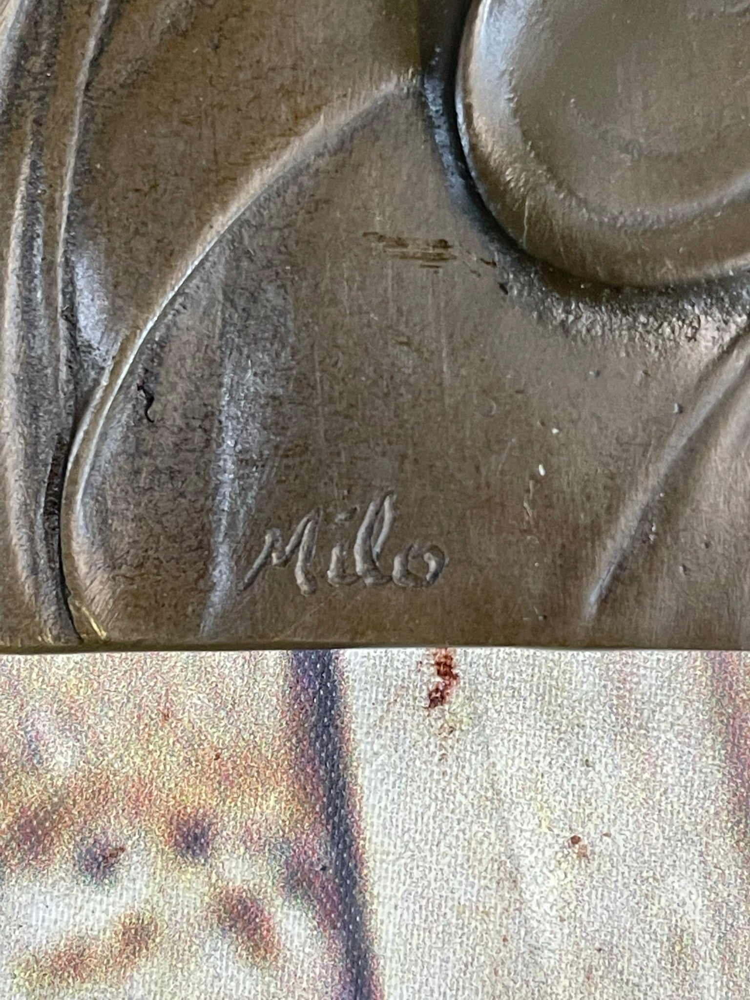 Introducing our exquisite bronze bas reliefs, these remarkable art pieces are truly rare gems. Painstakingly crafted over countless hours, they are the result of meticulous carving, molding, and shaping. Each bas relief captures the captivating side profile of a delicately prepared woman, showcasing astonishing attention to detail. These remarkable works of art are authentically signed by the renowned artist Milo.