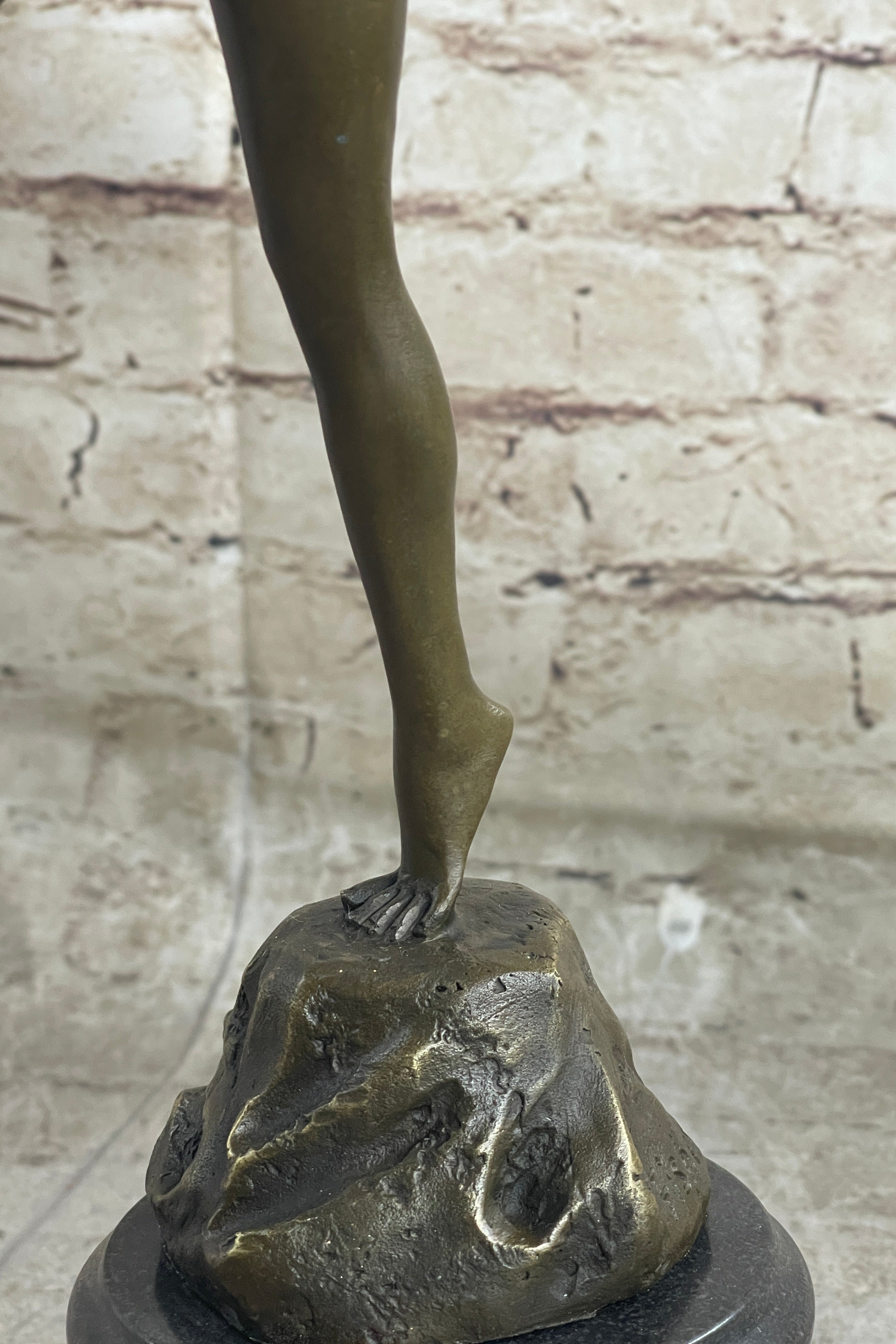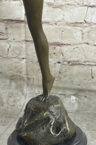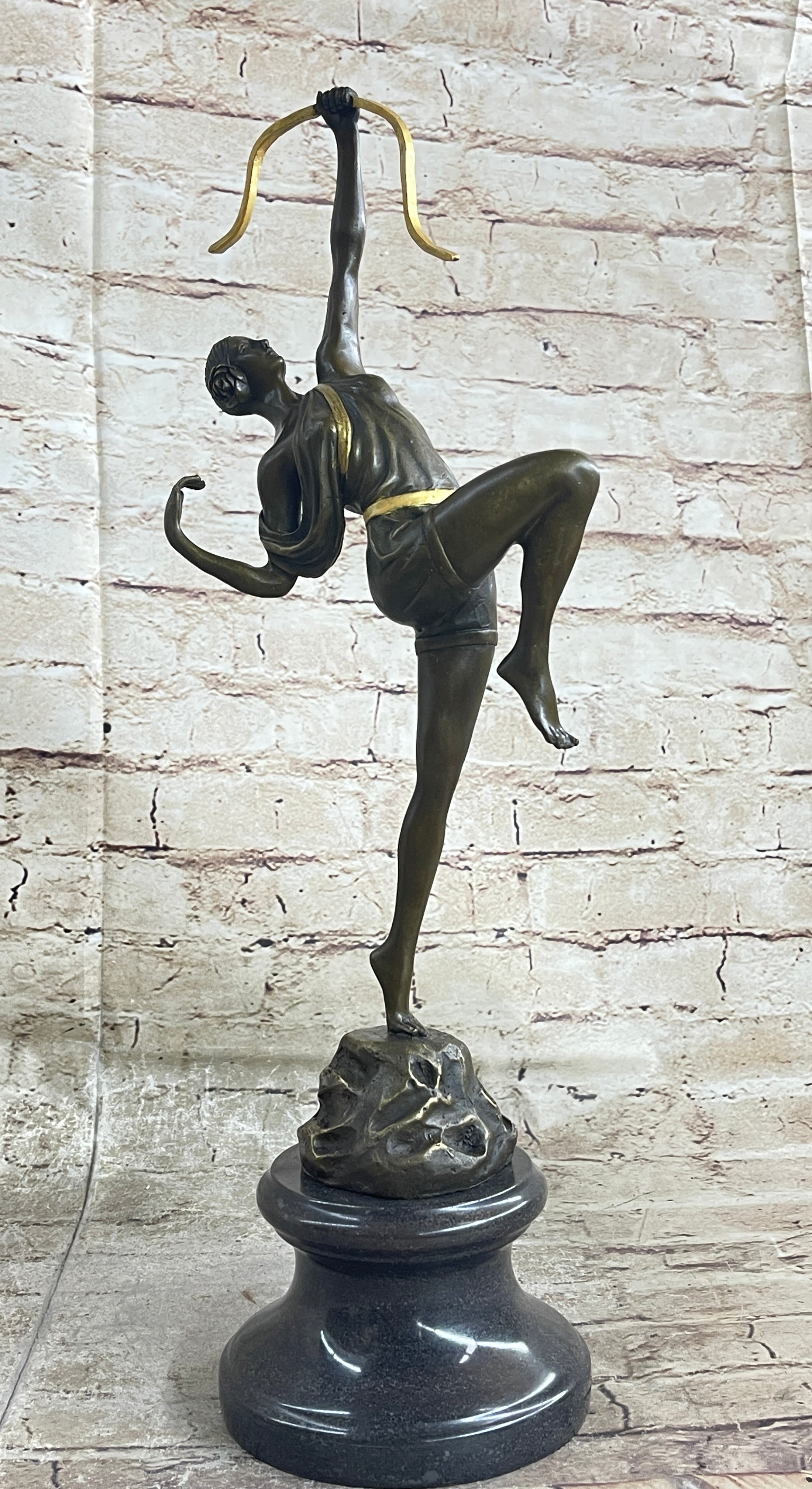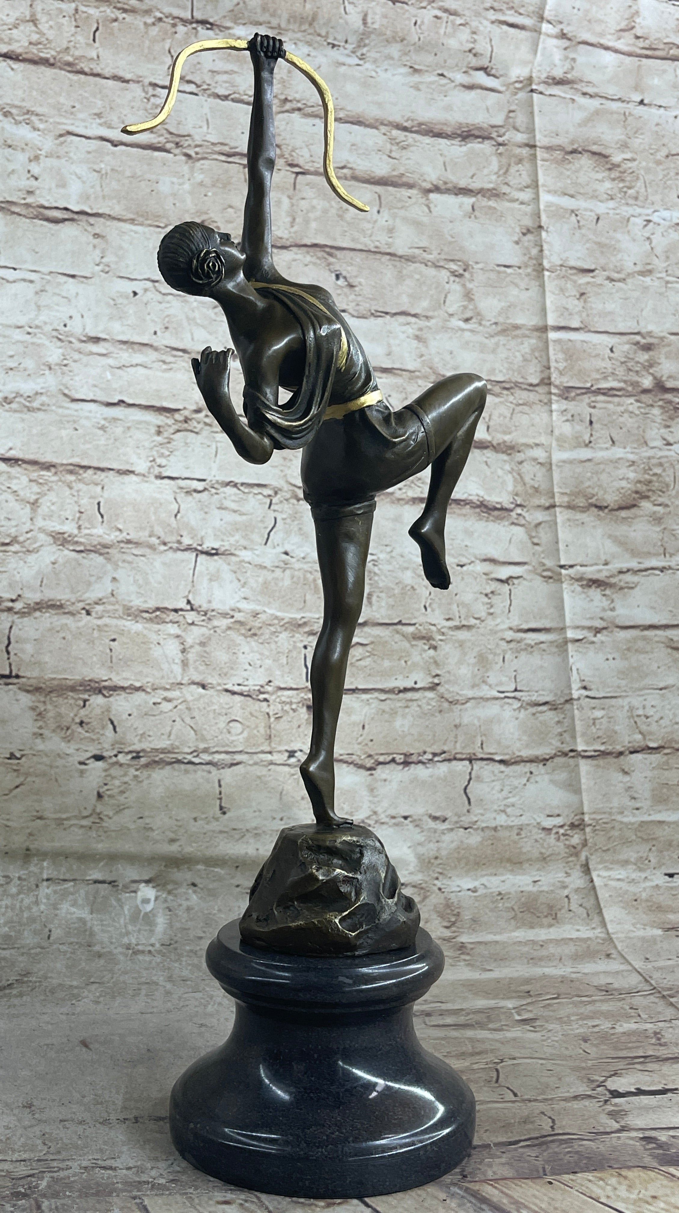 Artemis Diana the Huntress as an Archer Art Deco Bronze Sculpture Statue Marble Base