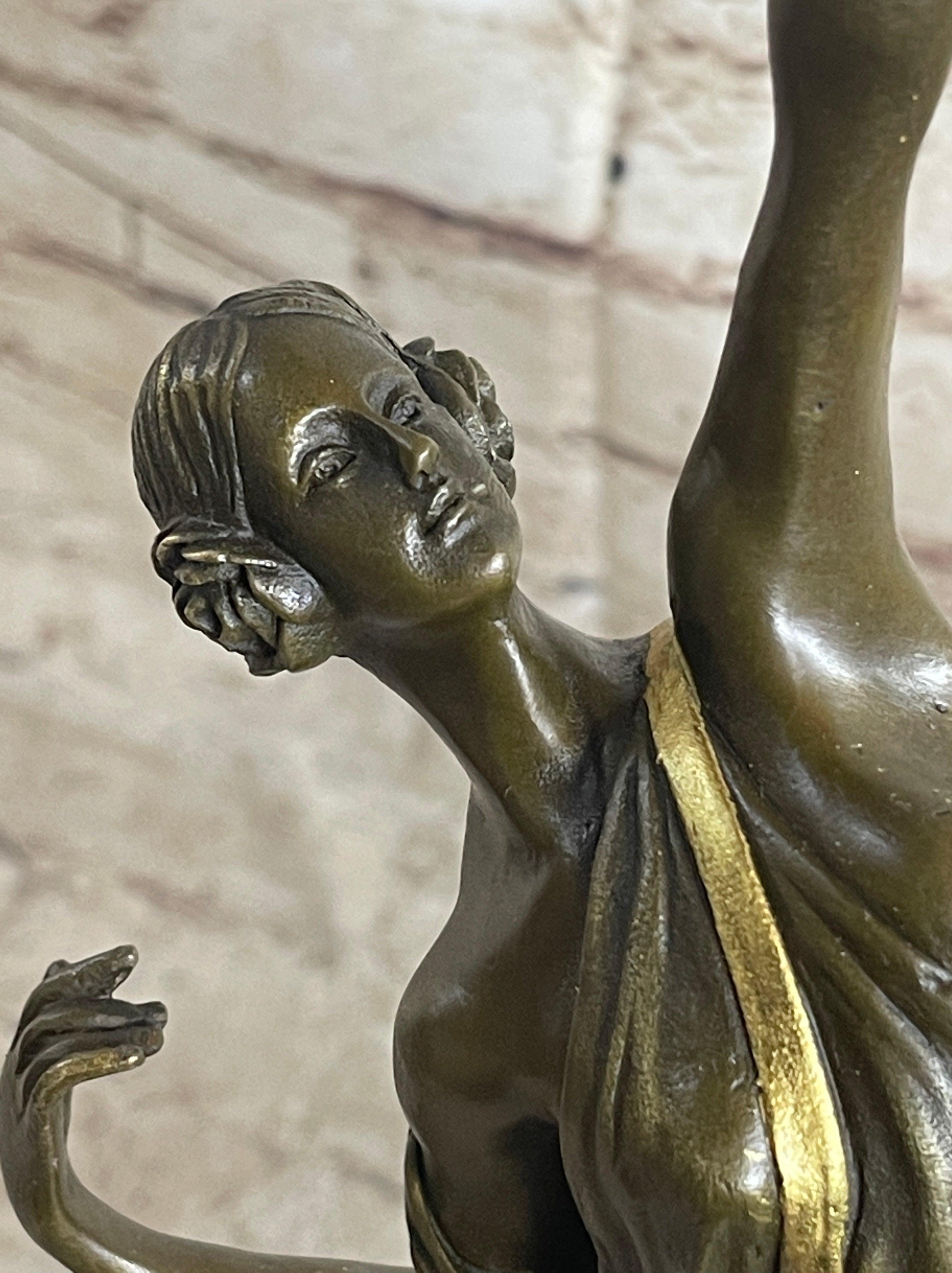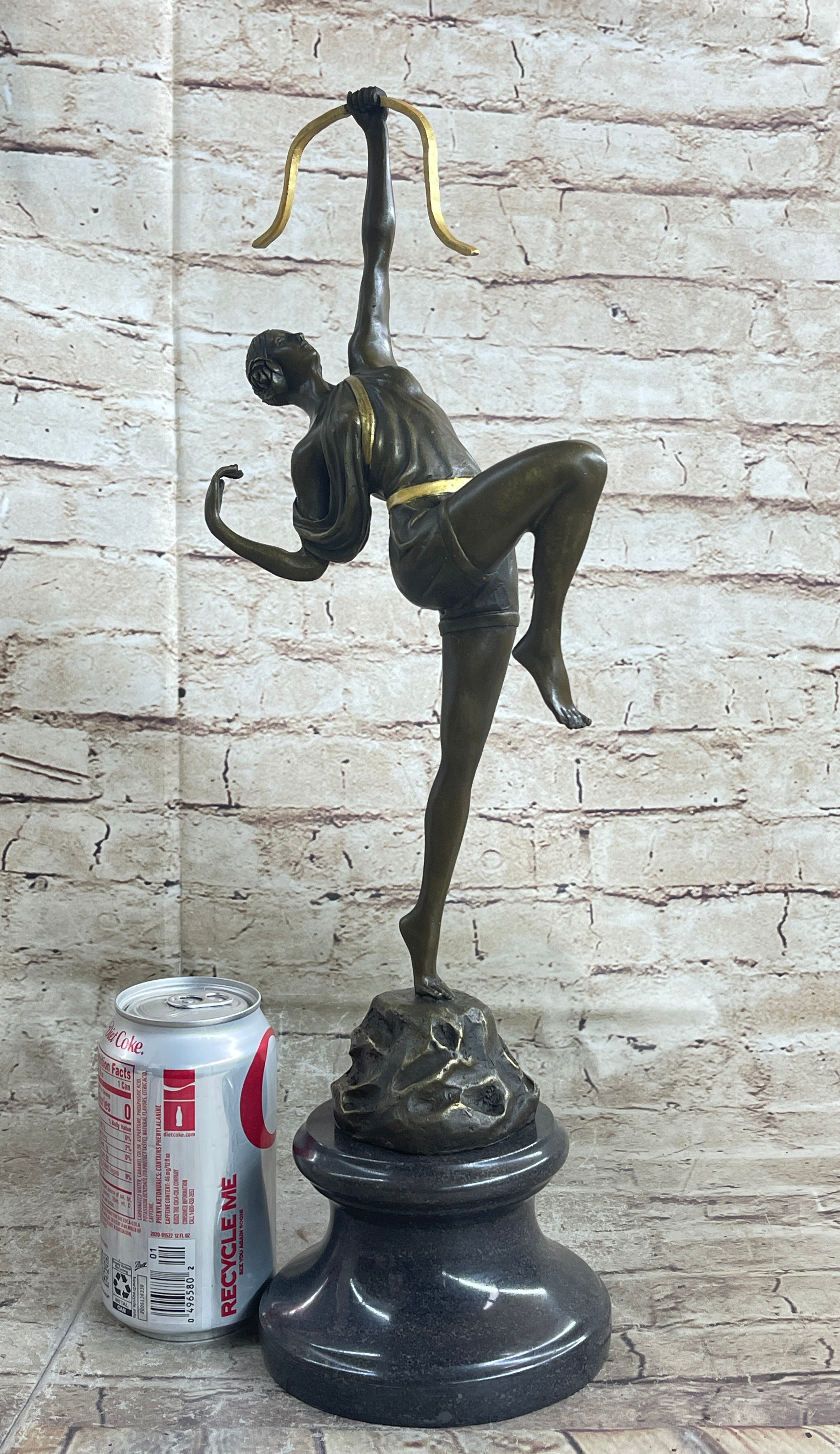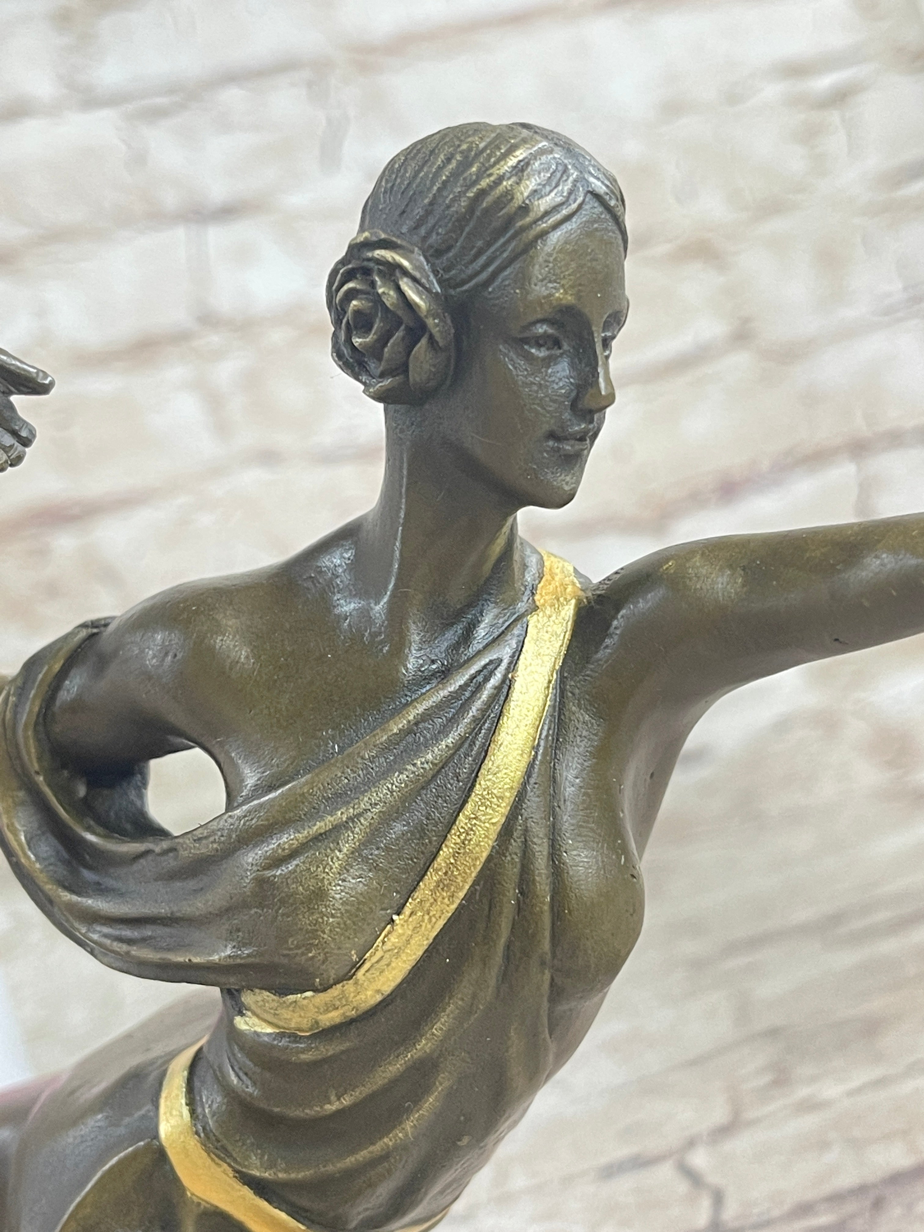 Artemis Diana the Huntress as an Archer Art Deco Bronze Sculpture Statue Marble Base
