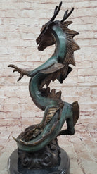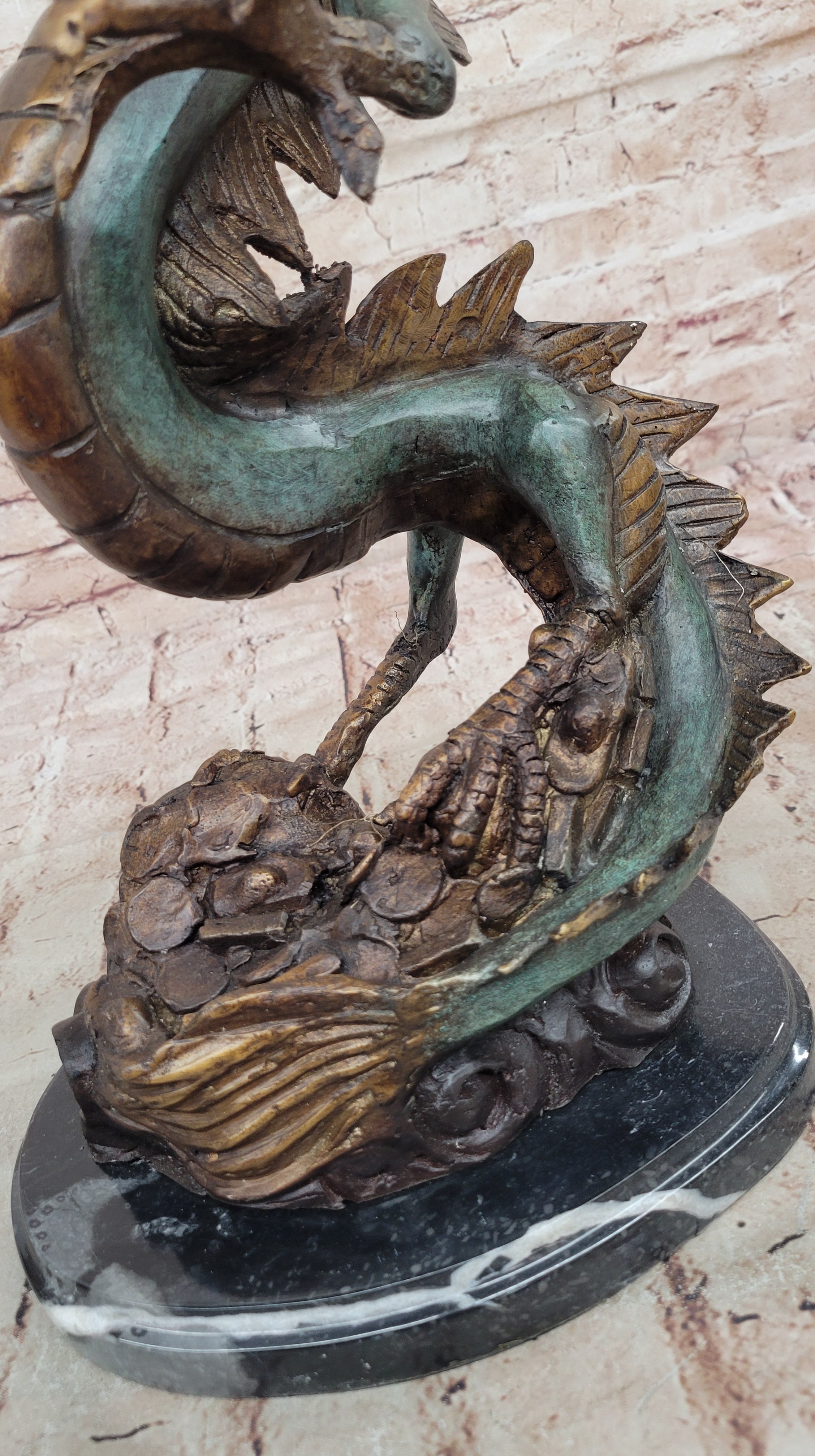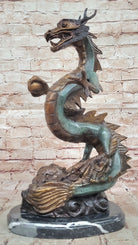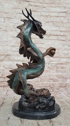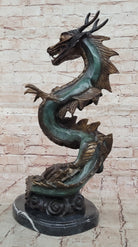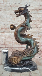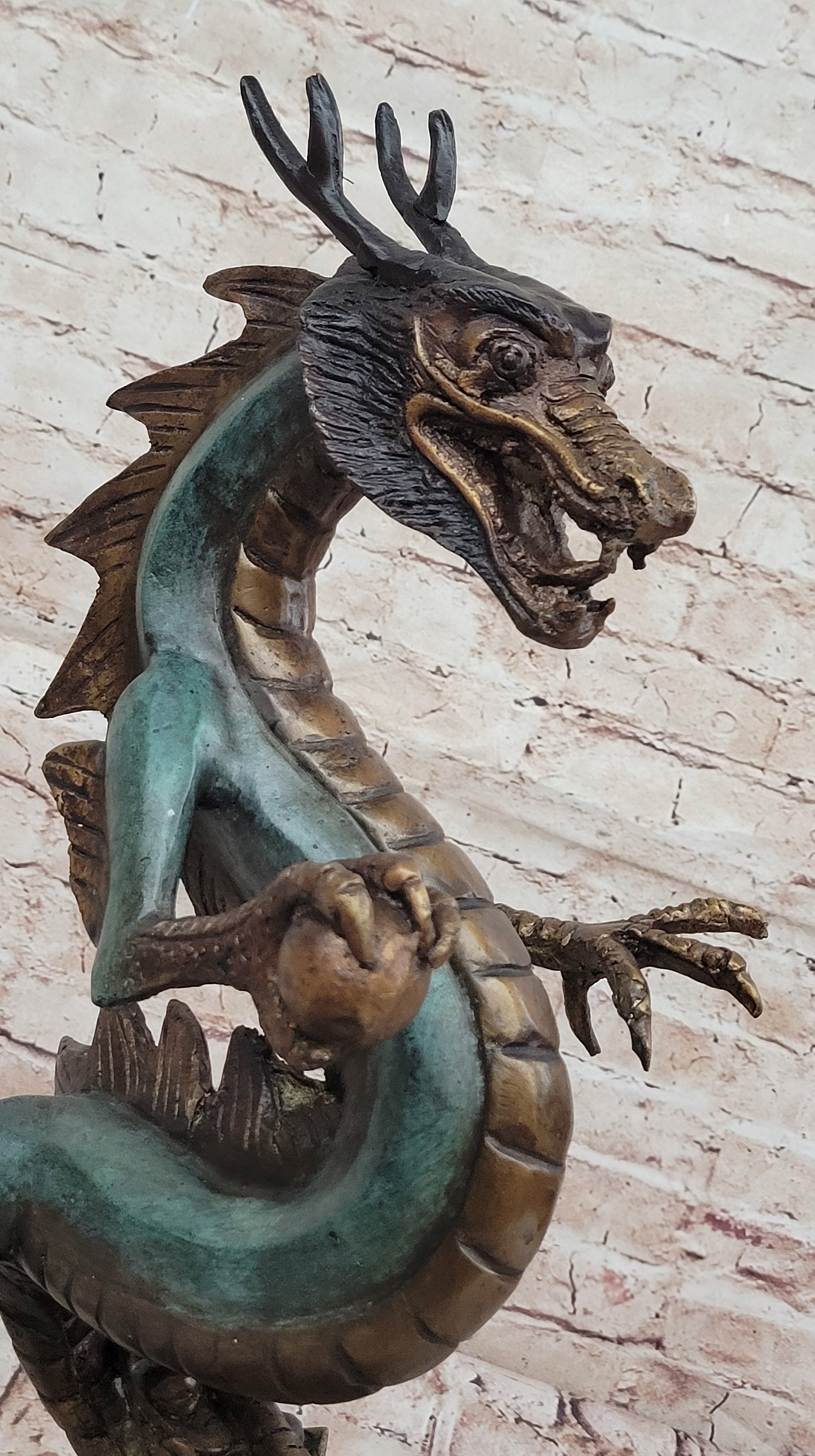 Perfect for those who appreciate Asian art, Feng Shui principles, or symbolic décor, this solid bronze dragon makes an exceptional statement in both home and office settings. Whether displayed as a symbol of protection and luck or simply admired for its artistry, it is a powerful presence that blends tradition with timeless beauty.Bronze Dimensions with Marble Base: Height 19" X Width 9"