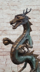 Asian Bronze Dragon Figurine with Verdigris Finish and Marble Stand