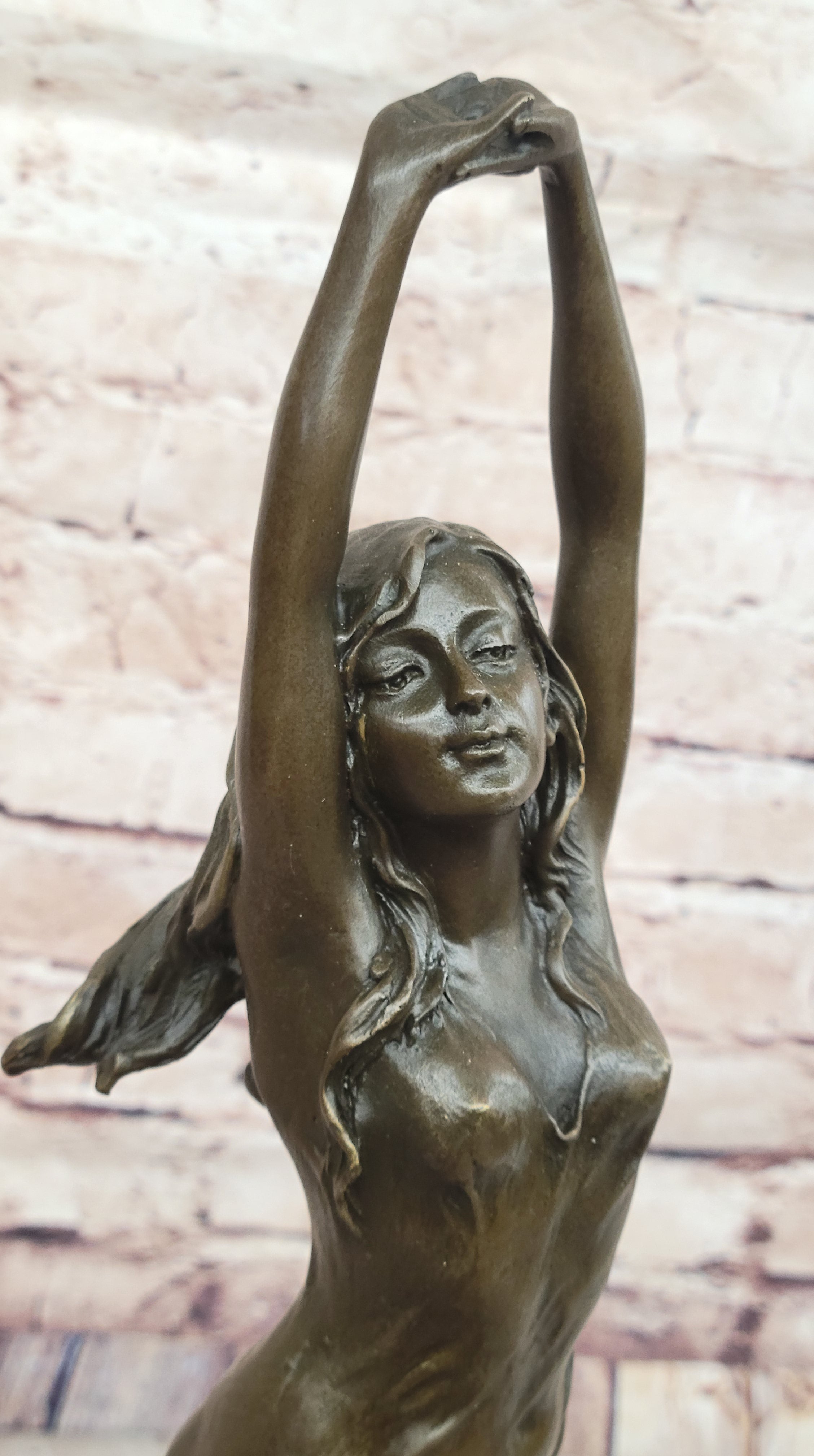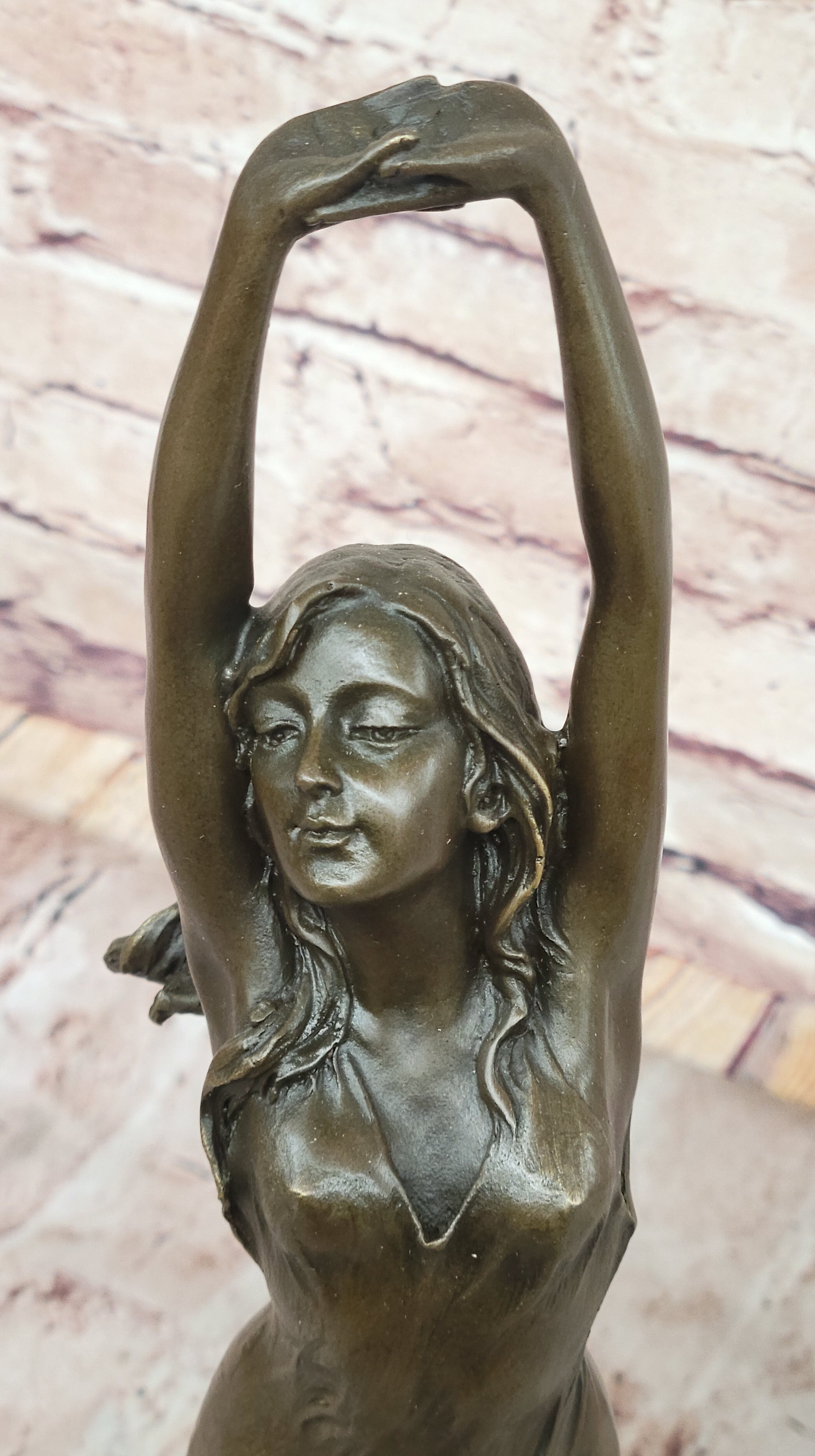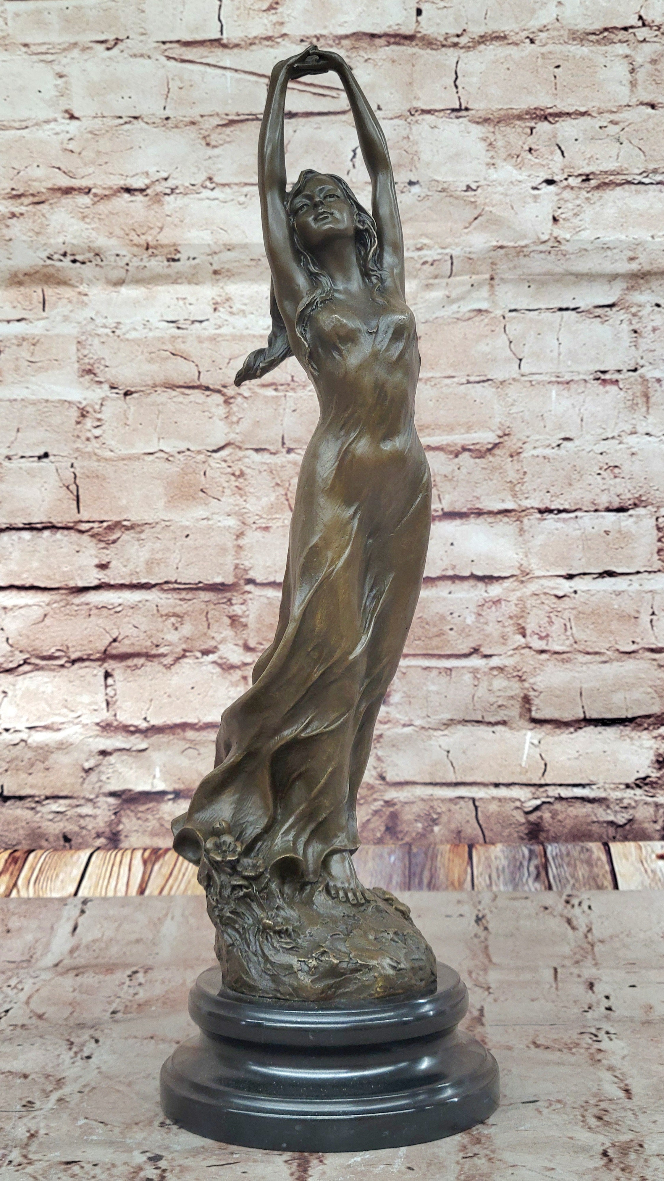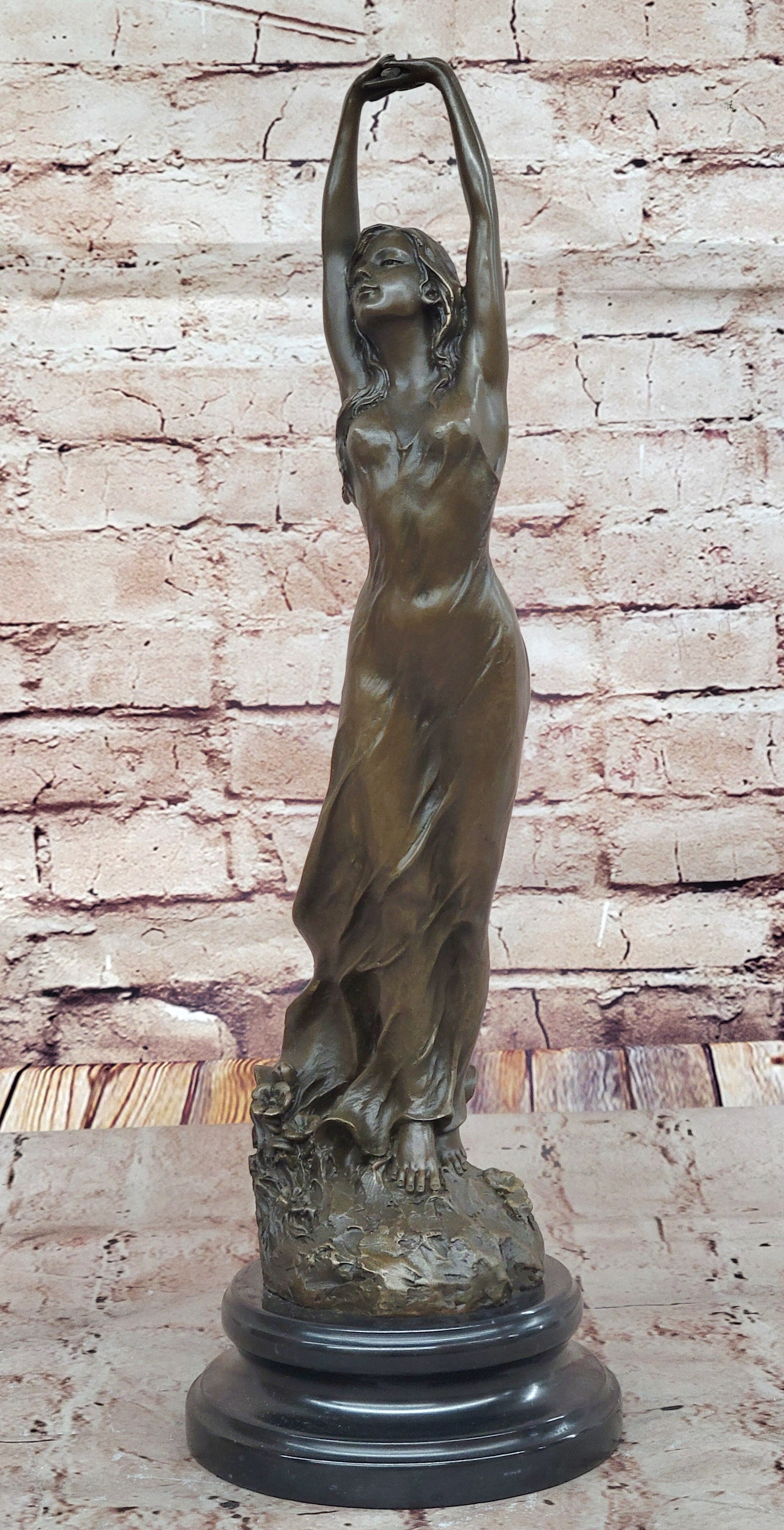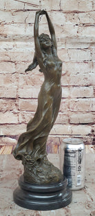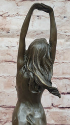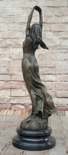 Awakening Stretching Woman in Thin Sheer Dress Bronze Sculpture Statue Figure on Marble Base