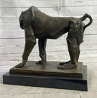 Baboon Monkey Primate Ape Bronze Metal Statue Sculpture Original Art on Marble Base
