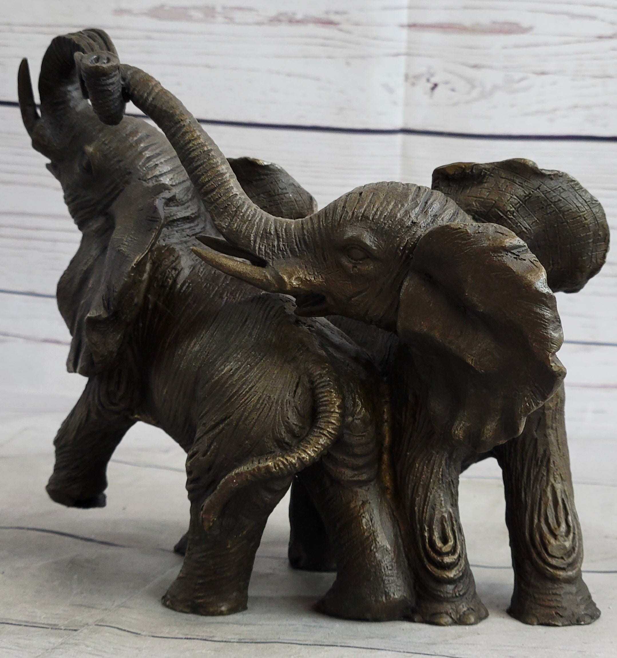 Baby Elephants Playing Hot Cast Bronze Metal Figurine Sculpture Statue Decor