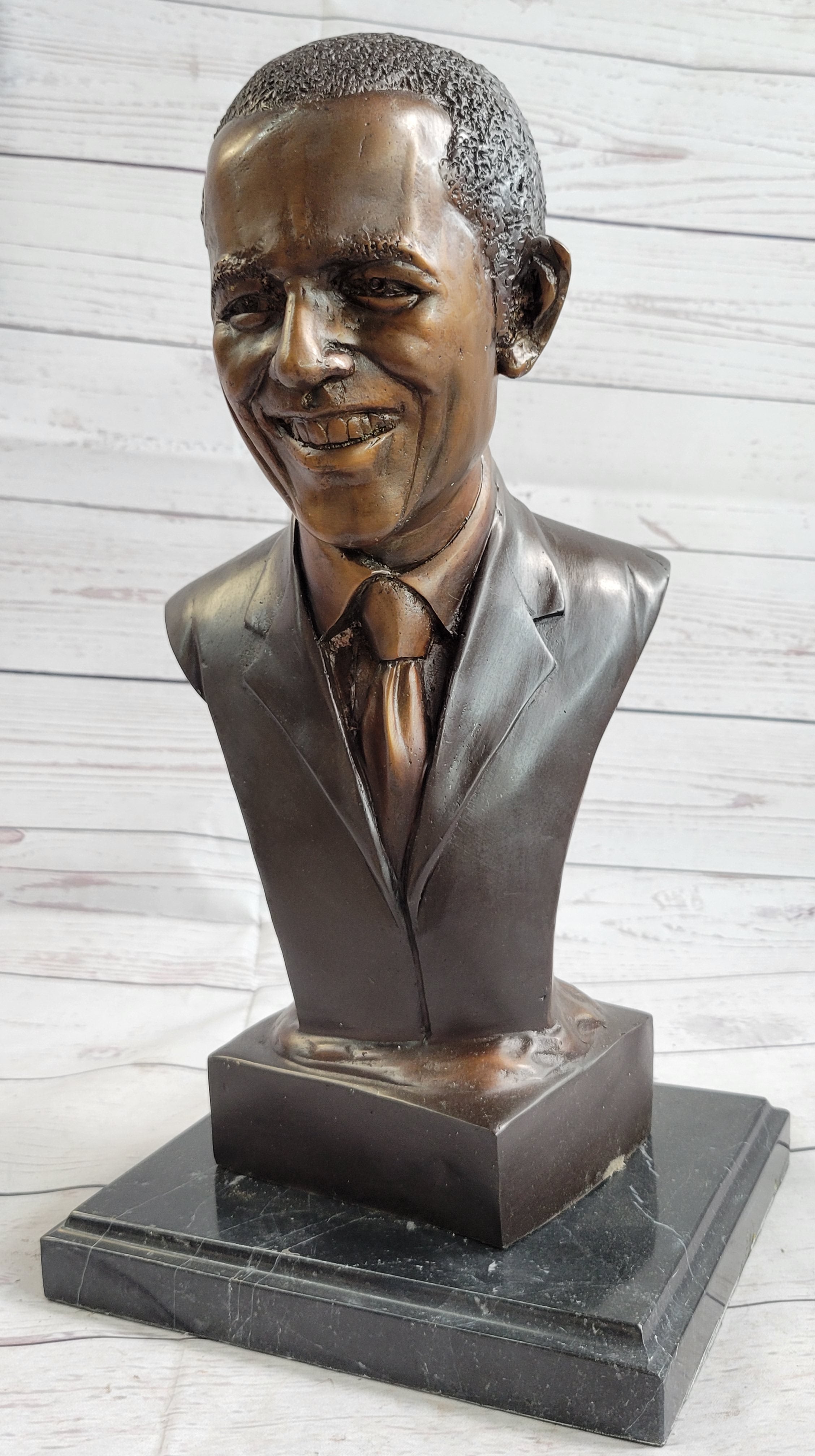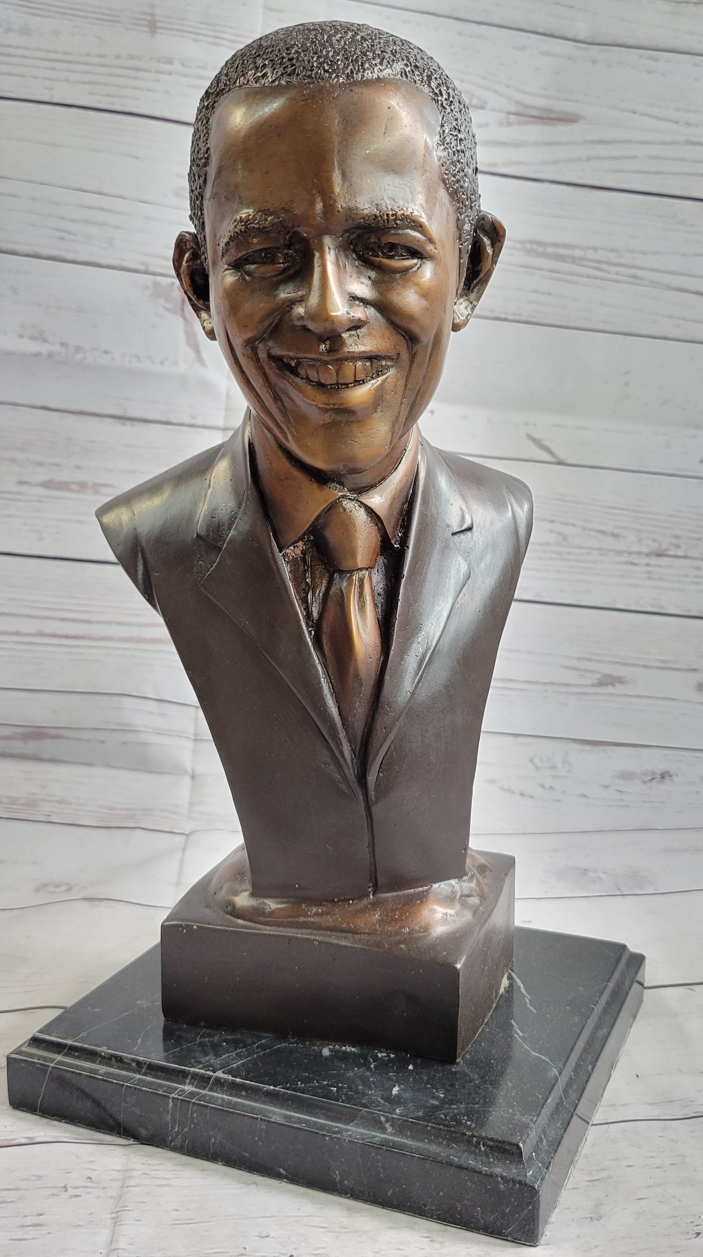 Barack Hussein Obama President of the United States Bronze Metal Bust Statue Sculpture on Marble Base