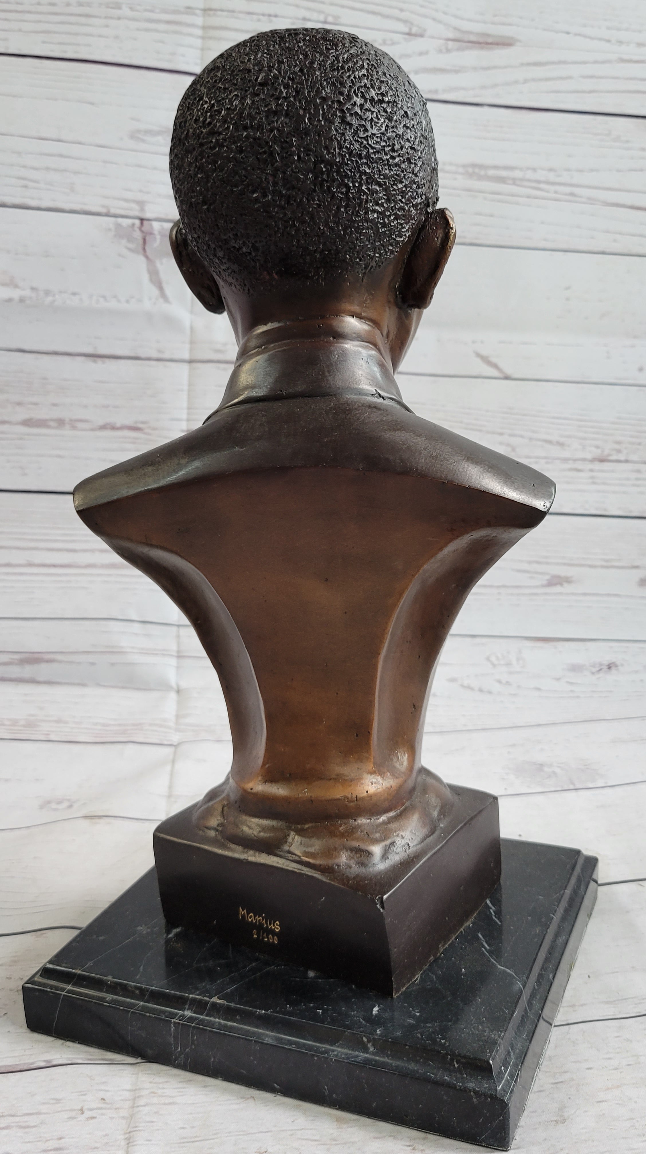 Owning this sculpture is not only a testament to Barack Obama's enduring impact on the 21st century but also a cherished piece of American history. Whether displayed in your home, office, or as part of a broader collection, it serves as a powerful reminder of the significant milestones achieved during his presidency.Bronze Dimensions with Marble Base: Height 15" X Width 6"