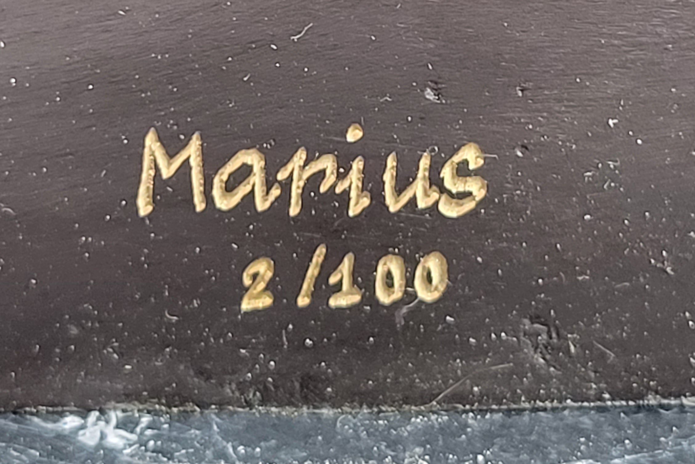 This exquisite sculpture captures the essence of Barack Obama, portraying his dignified and thought-provoking presence. As a limited edition piece, it holds a special place in American history and is a must-have for collectors and admirers of this transformative leader. The sculpture is signed and numbered by the artist Marius, ensuring its authenticity and value.