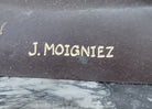 Meticulously handcrafted in 100% bronze through the esteemed "Lost Wax Method," this sculpture captures the intricate details and symbolic importance of the revered Egyptian culture. The two-tone brown patina accentuates the meticulous lines and symmetry of the sculpture, further highlighting the cat's dignified and calming presence. Mounted on a solid black marble base, this piece stands as a testament to the enduring legacy of the Pharaoh cats and their profound impact on the culture and spirituality of ancient Egypt. It is signed by the artist Moigniez, adding a personal touch to its timeless beauty.Bronze Dimensions with Marble Base: Height 19" X Width 13"