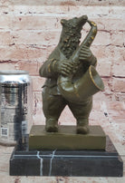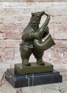 Bear Playing Saxophone Bronze Sculpture - Whimsical Animal Music Art