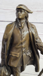 Experience the timeless charm and youthful spirit of one of America's esteemed founding fathers with this remarkable bronze sculpture capturing the essence of Benjamin Franklin. Poised with grace, Franklin is depicted holding a branch in one hand and a bag in the other, a symbolic representation of his curiosity and resourcefulness. Adorned in classic attire, including a stylish pea coat, a hat, and a scarf delicately draped around his neck, Franklin's iconic presence is beautifully portrayed.