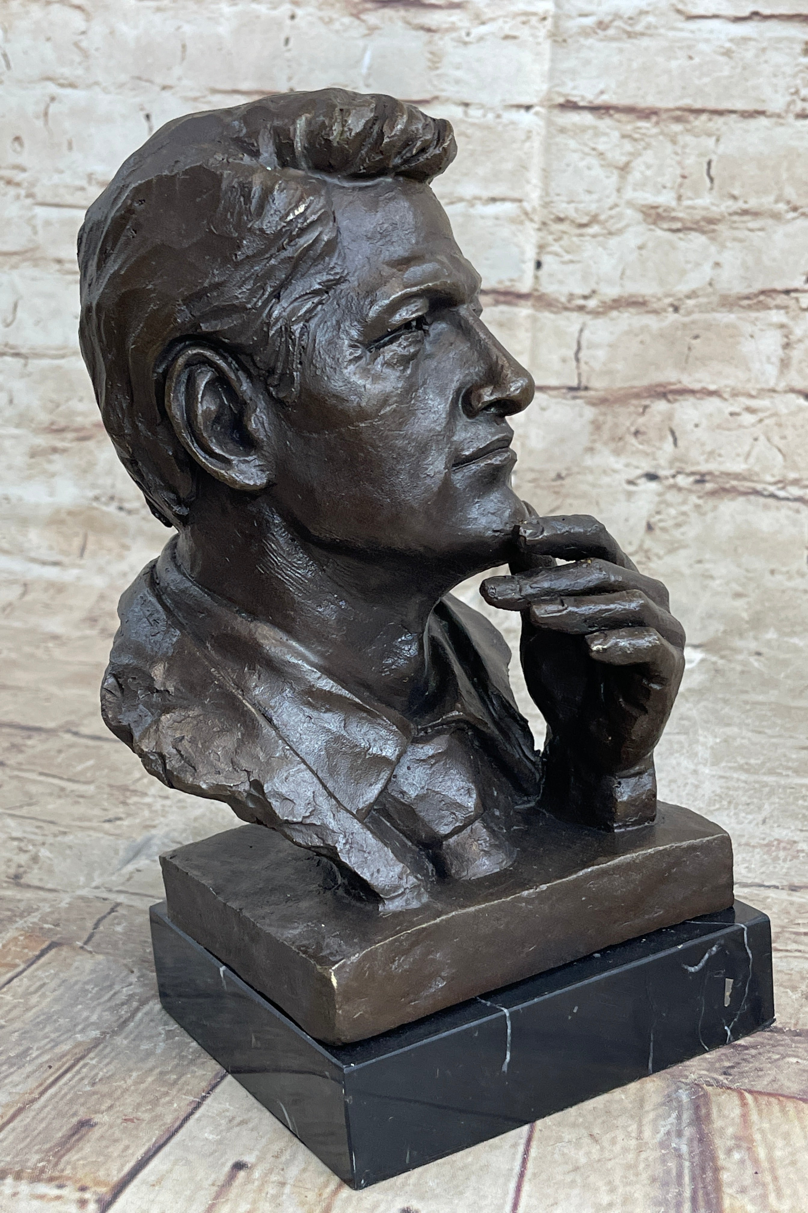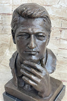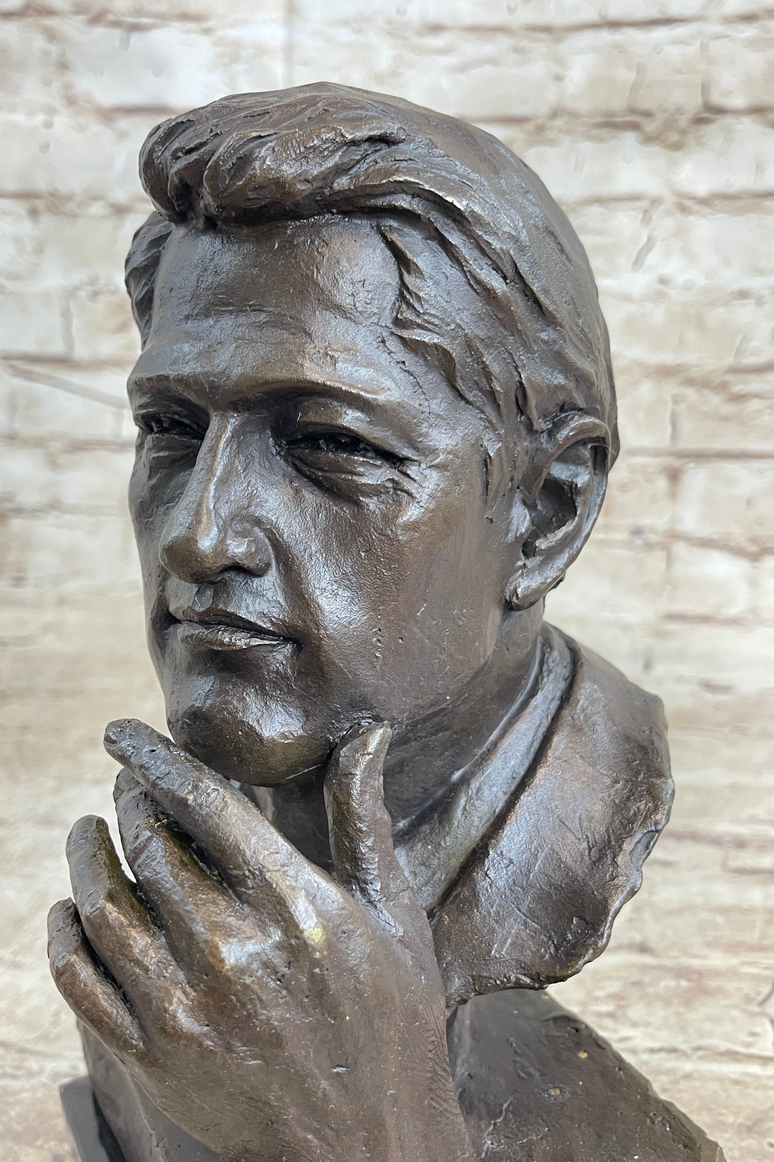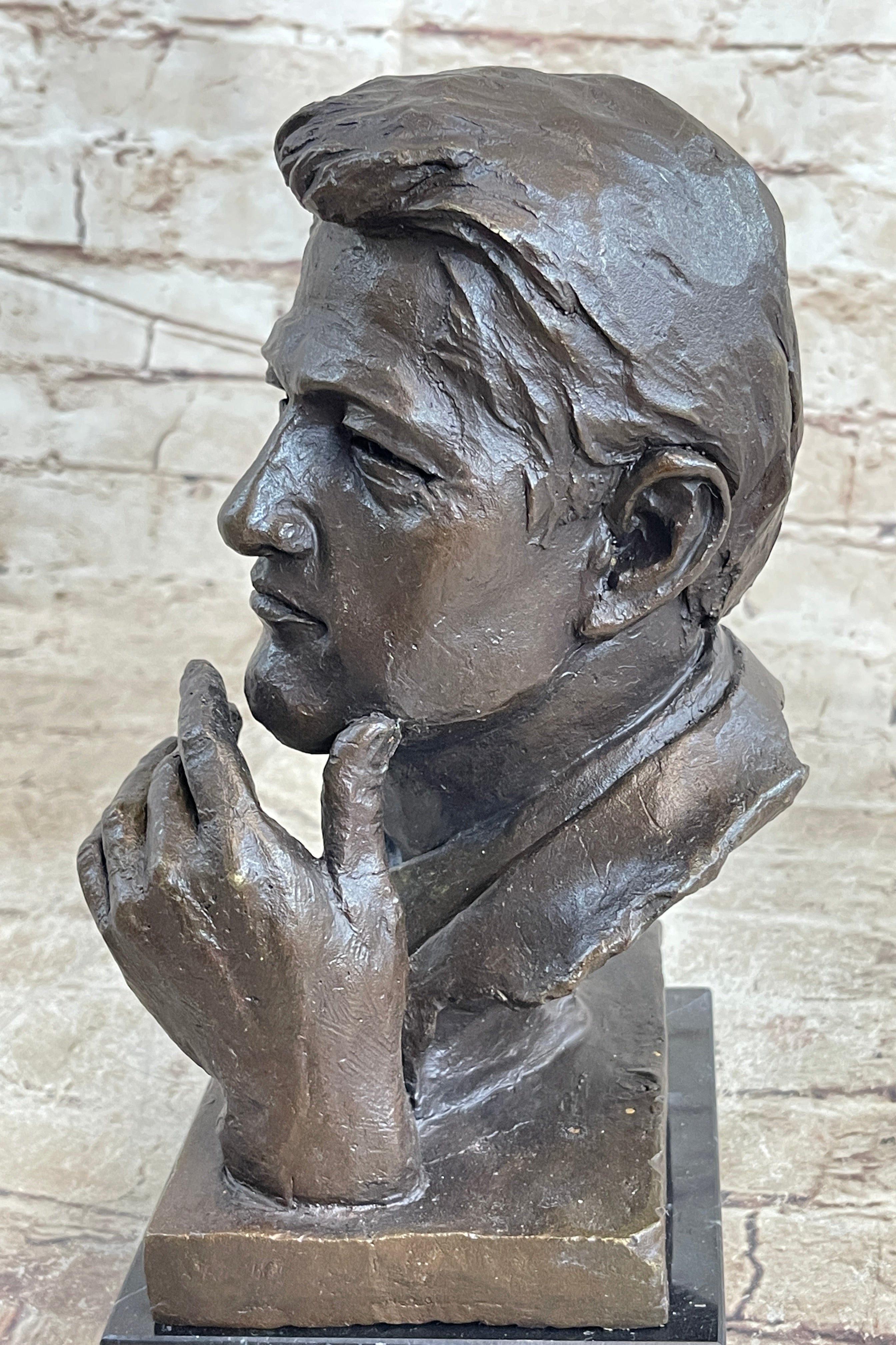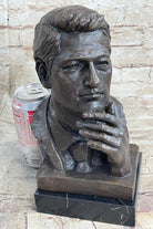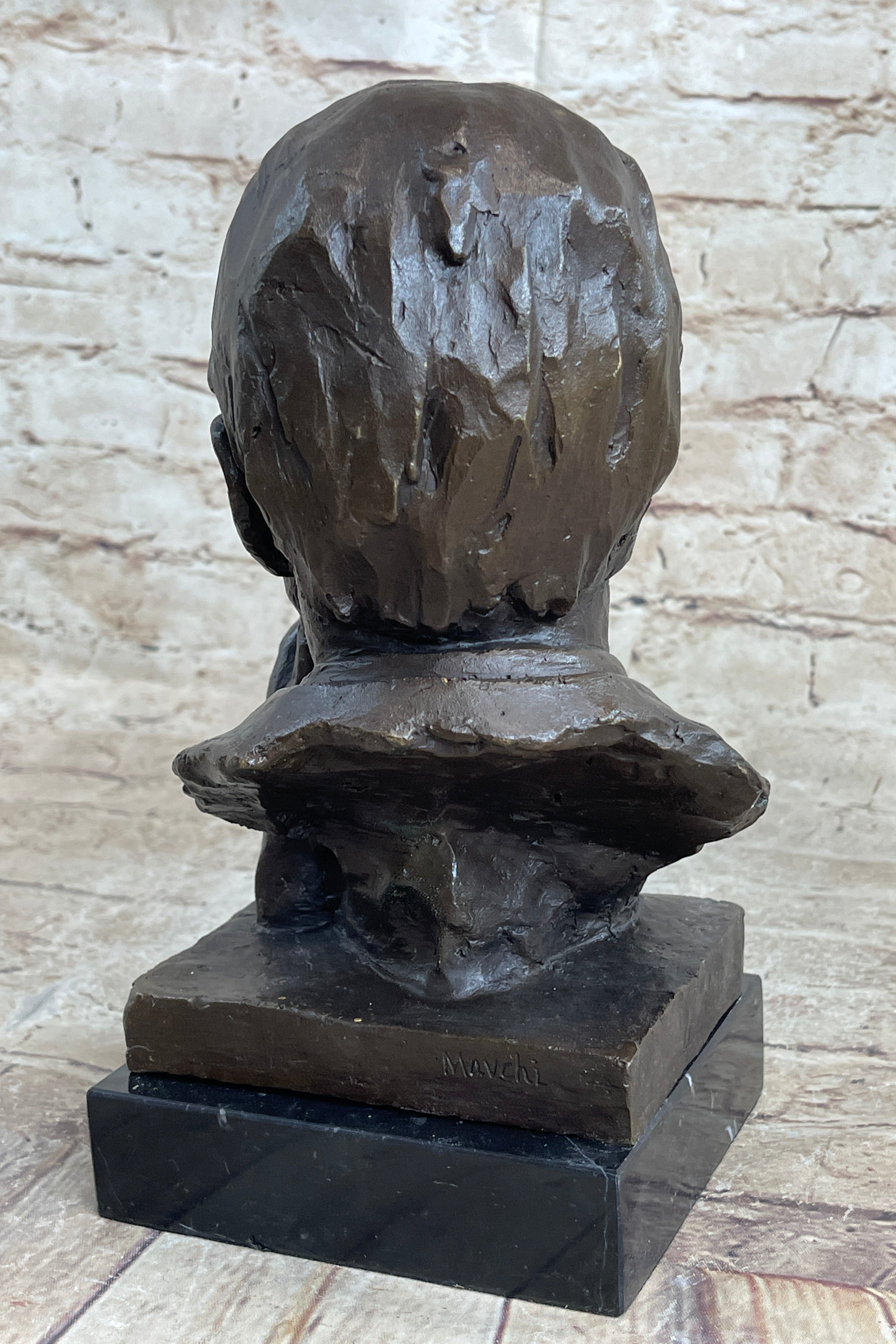 Handmade with 100% bronze, the bust has been cast using the traditional "Lost Wax Method," a technique known for its durability and ability to capture intricate details. The rich brown patina finish enhances the sculpture's timeless appeal, while the sturdy marble base provides a solid and elegant foundation.
