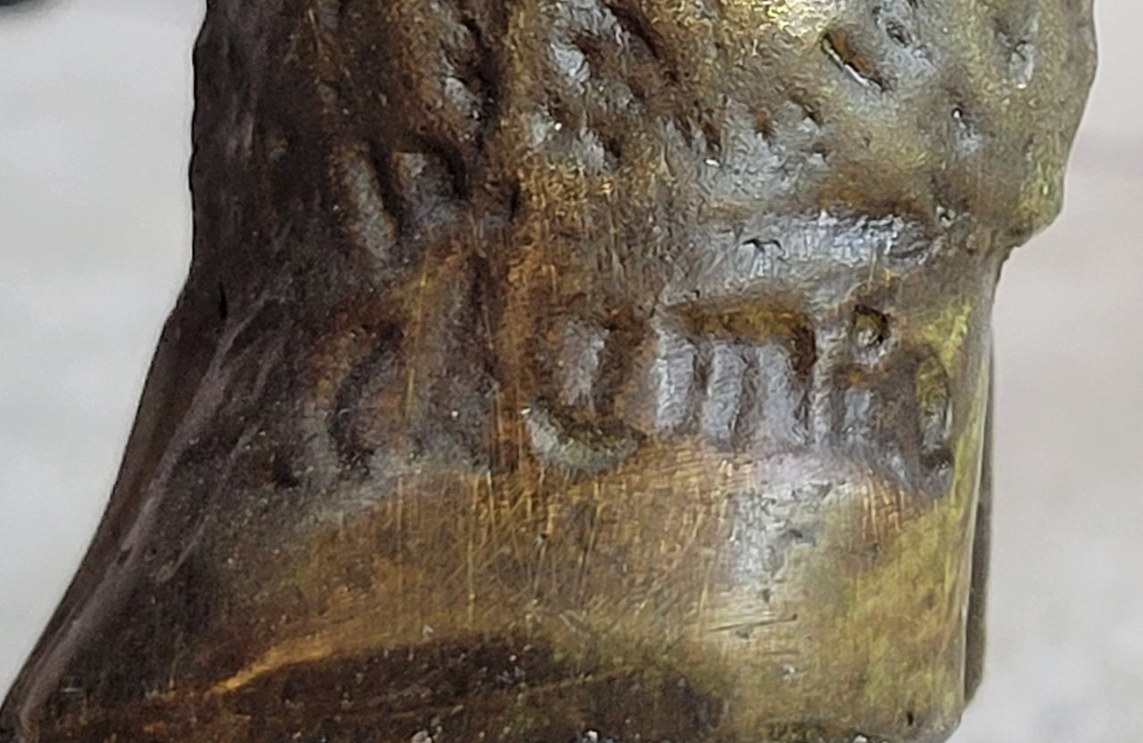 Handmade using the esteemed "Lost Wax Method," this bronze sculpture boasts exceptional craftsmanship and enduring quality. The dark brown patina finish enhances the sculpture's visual impact, accentuating its striking features and creating a sense of depth and texture. Standing as a testament to the artist's skill and creativity, the sculpture is signed by the acclaimed artist Chemin, adding to its quality and value.