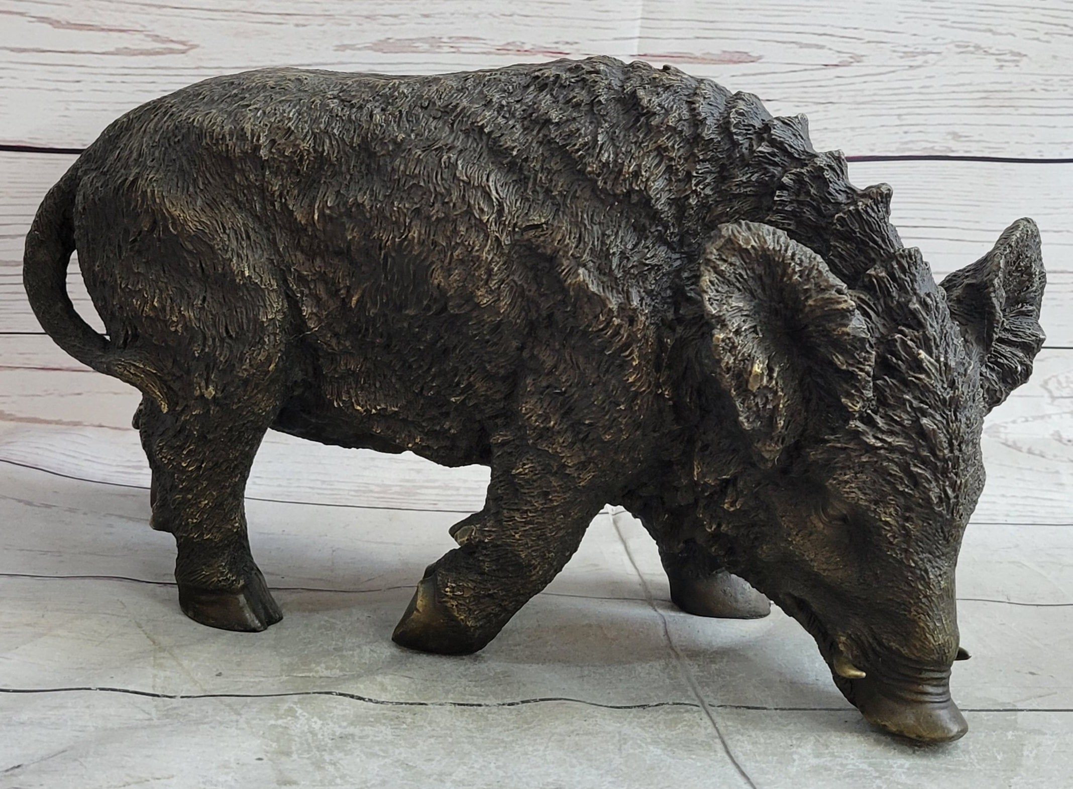 Wild Boar Pig Feral Hog Bronze Sculpture Statue Figure Figurine Decor
