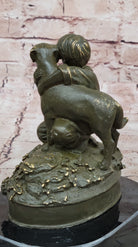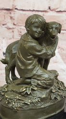 Boy Hugging Dog Bronze Sculpture on Marble Base