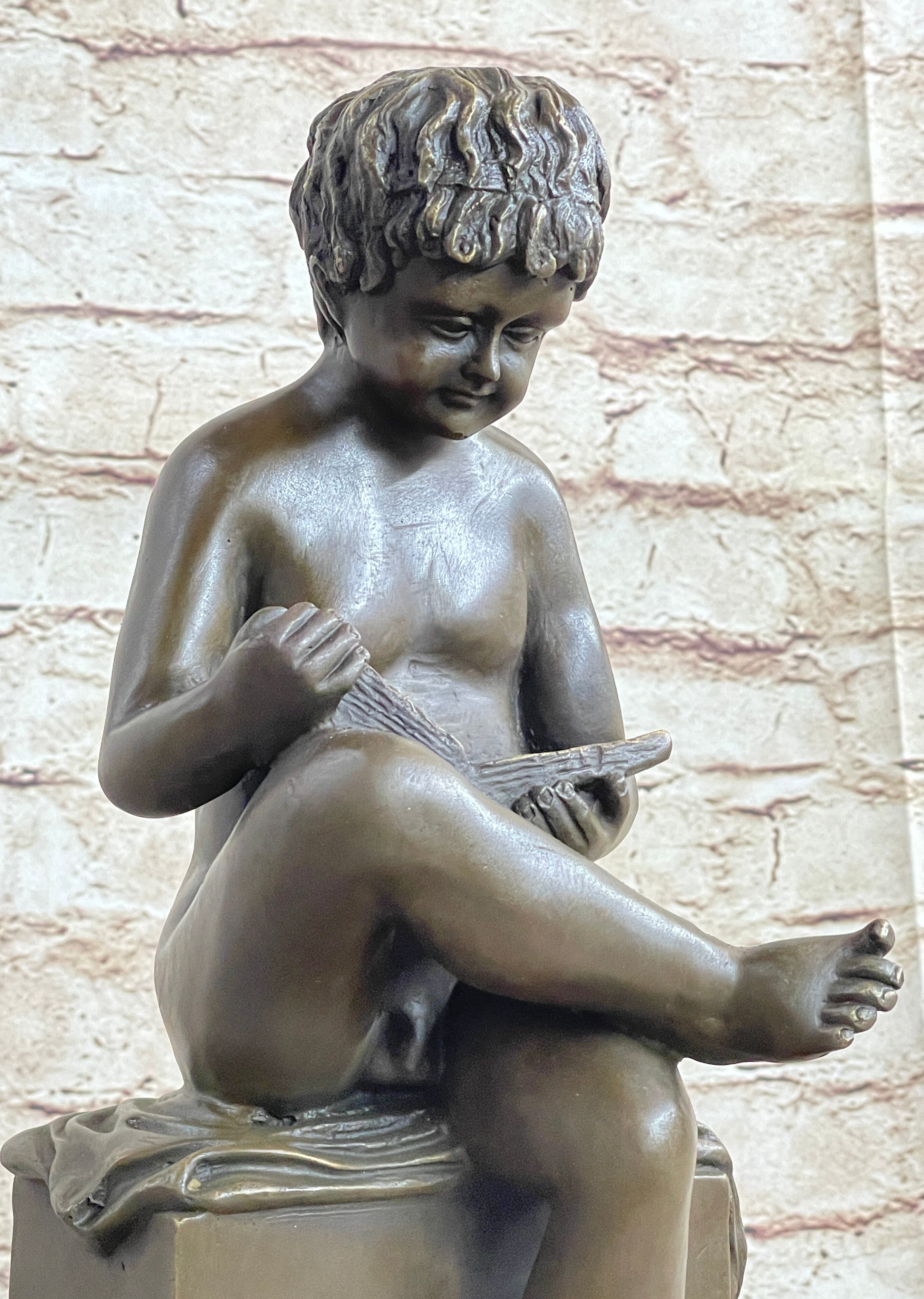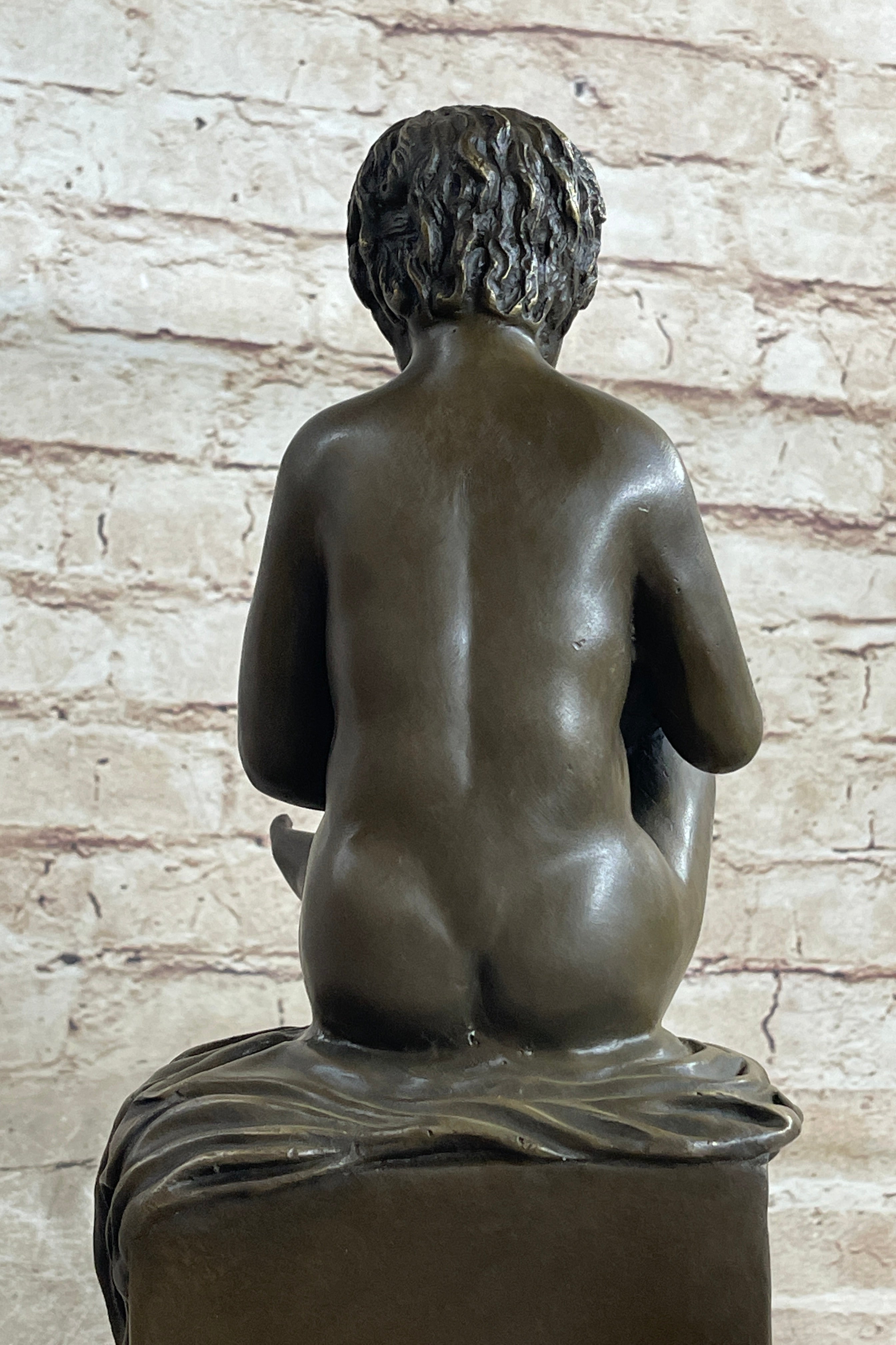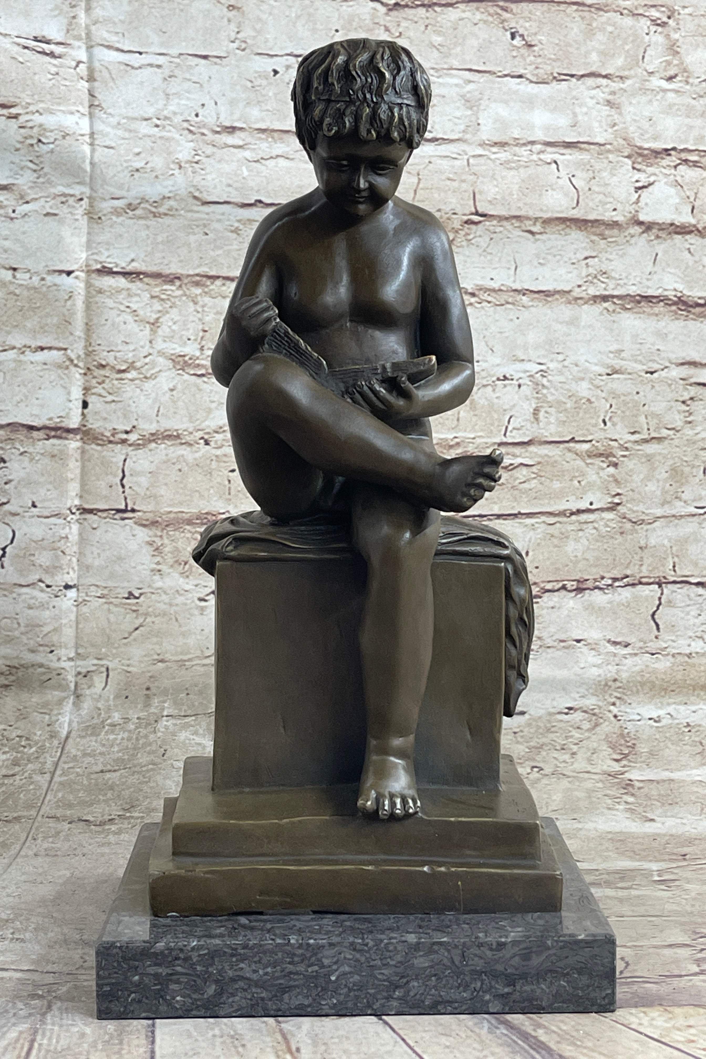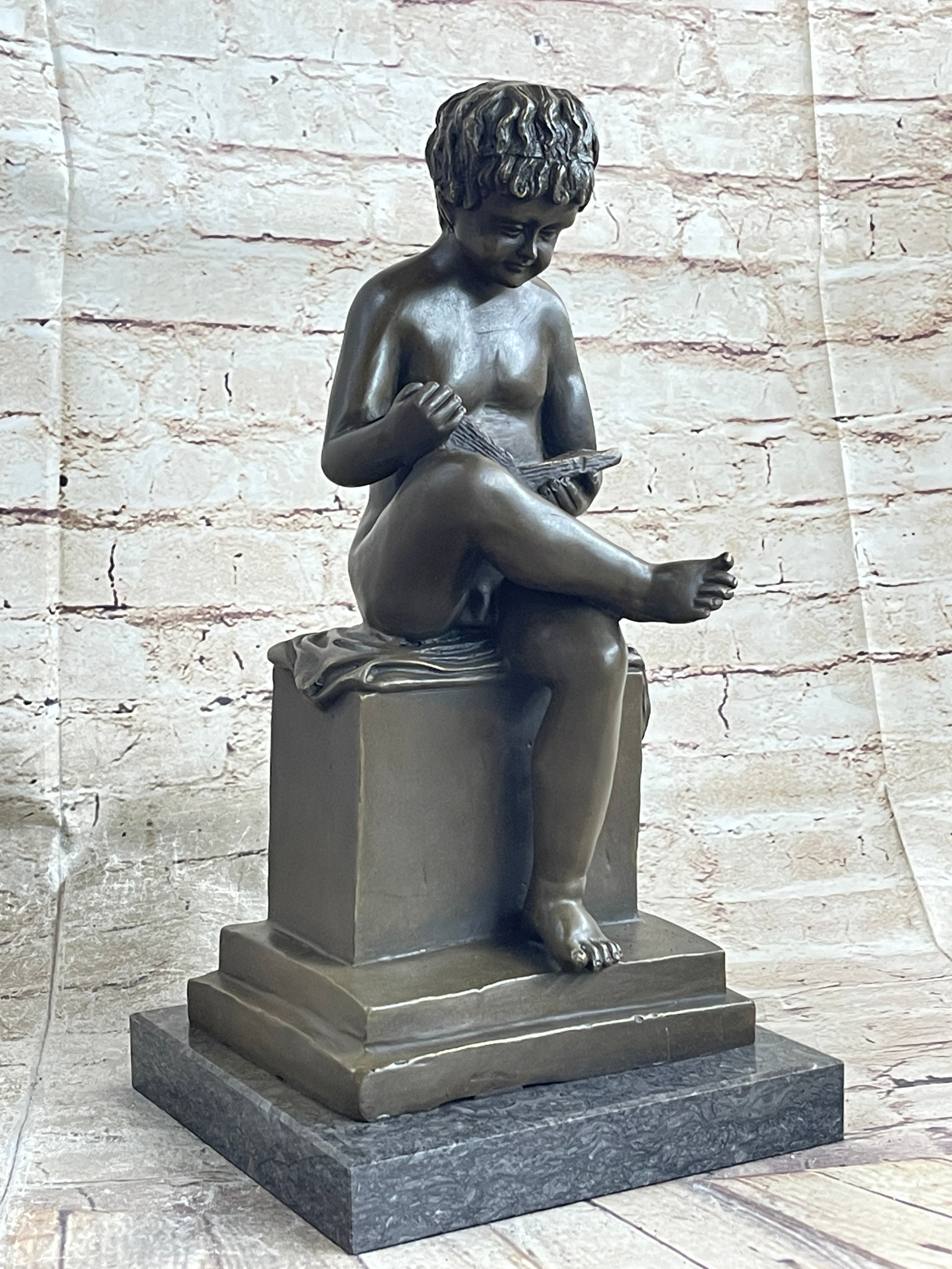 This pleasant sculpture is set on a black marble base, providing a stable and elegant foundation for the figure. Crafted using the traditional lost wax method, the sculpture boasts intricate details and high-quality craftsmanship, ensuring it stands the test of time.
