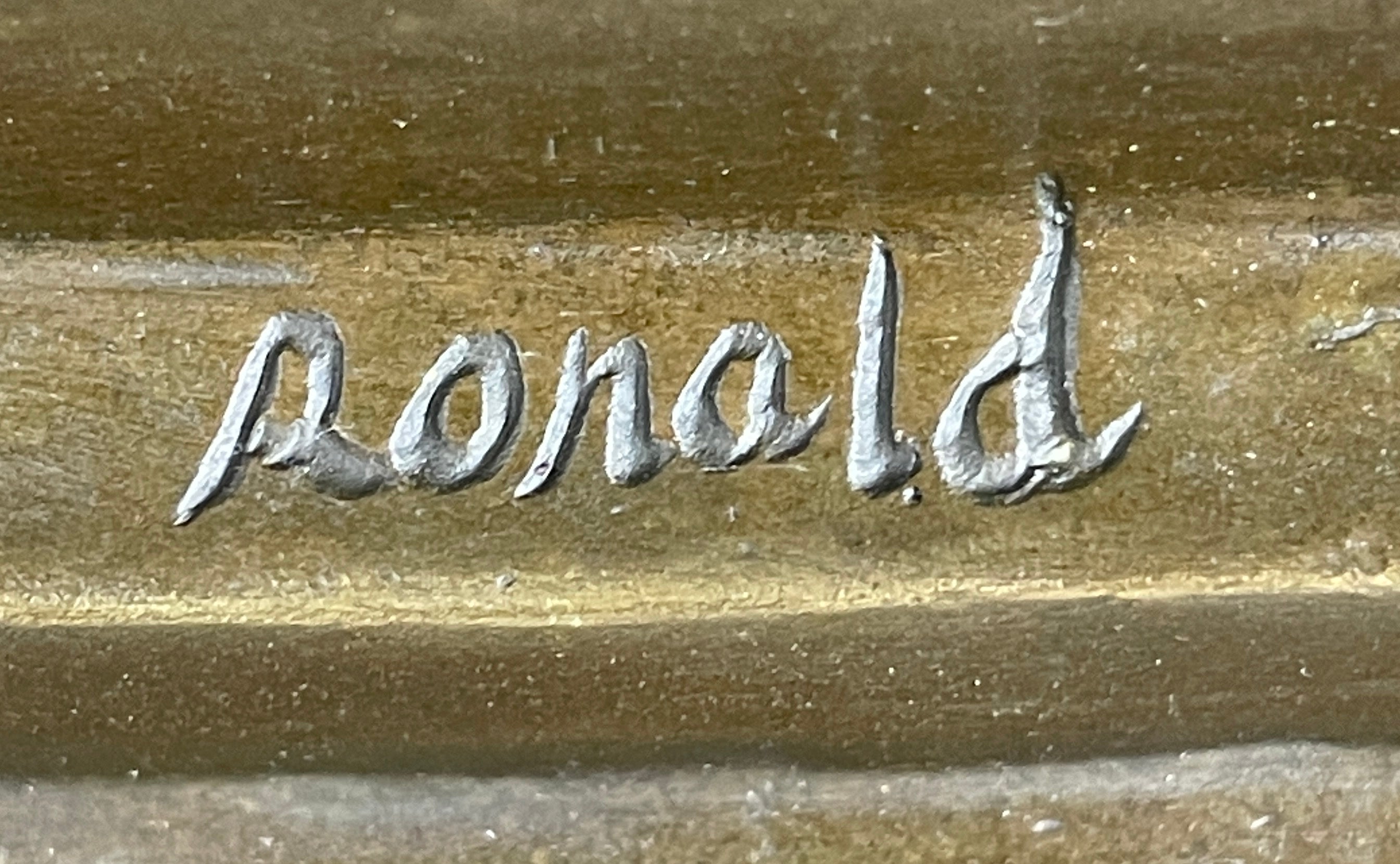 Signed by the artist Ronald, this charming piece is a wonderful addition to any home, library, or office. It celebrates the joy of reading and the innocence of childhood, making it a heartwarming and inspiring work of art.Bronze Dimensions with Marble Base: Height 14" X Width 7"