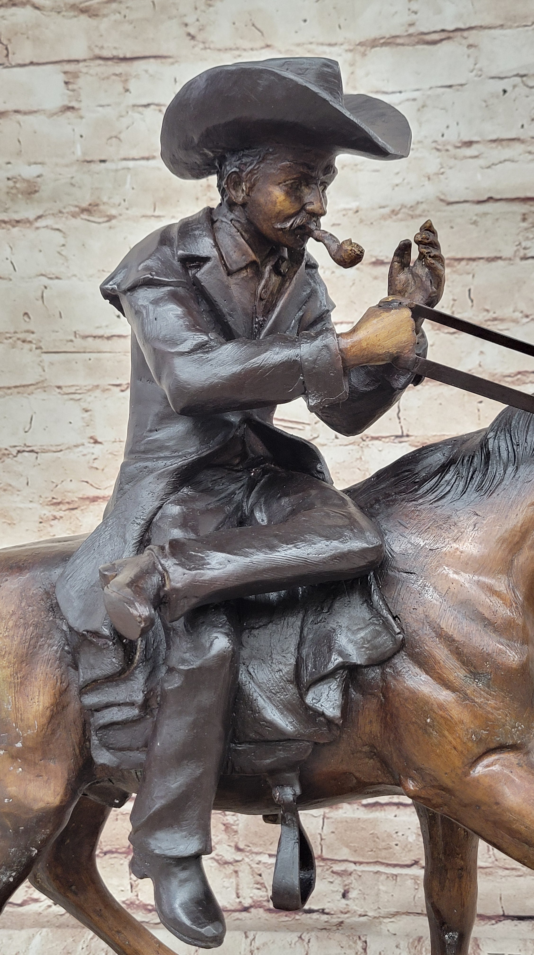 BREATH by Frederic Remington Bronze Statue Sculpture Cowboy Smoking Pipe 22" x 24"