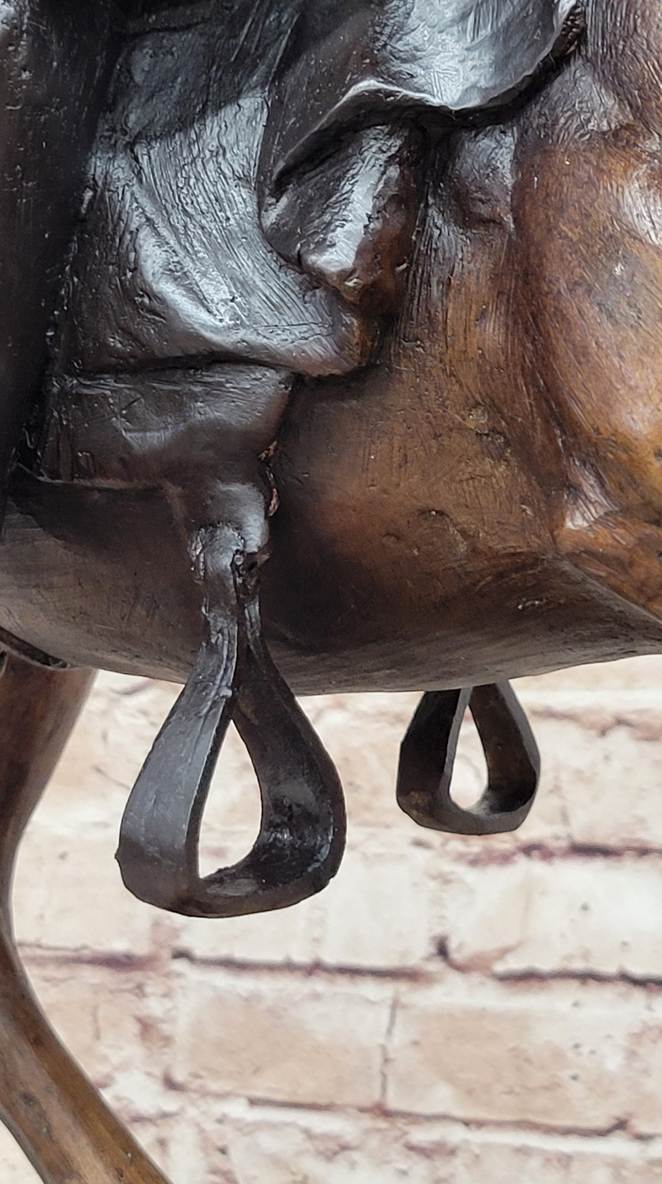 This exquisite western bronze sculpture, titled "Breath," captures a timeless scene of cowboy life, depicted by the renowned artist Remington. The sculpture portrays a cowboy seated side saddle on his horse, leisurely lighting his pipe, exuding a sense of calm and contemplation. Crafted with meticulous attention to detail, the handmade bronze sculpture was molded using the ancient method of lost-wax casting, ensuring authenticity and quality.