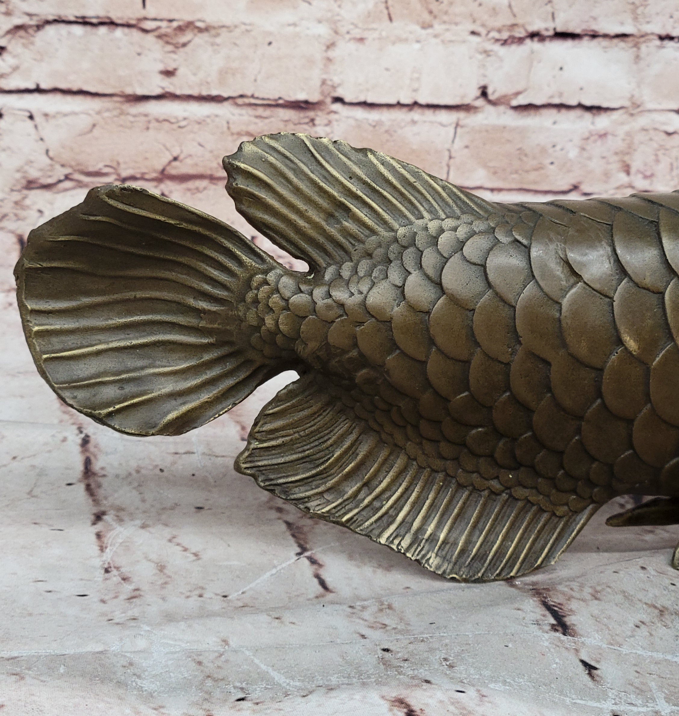 Bronze Arowana Fish Sculpture – Asian Feng Shui Wealth Symbol Figurine