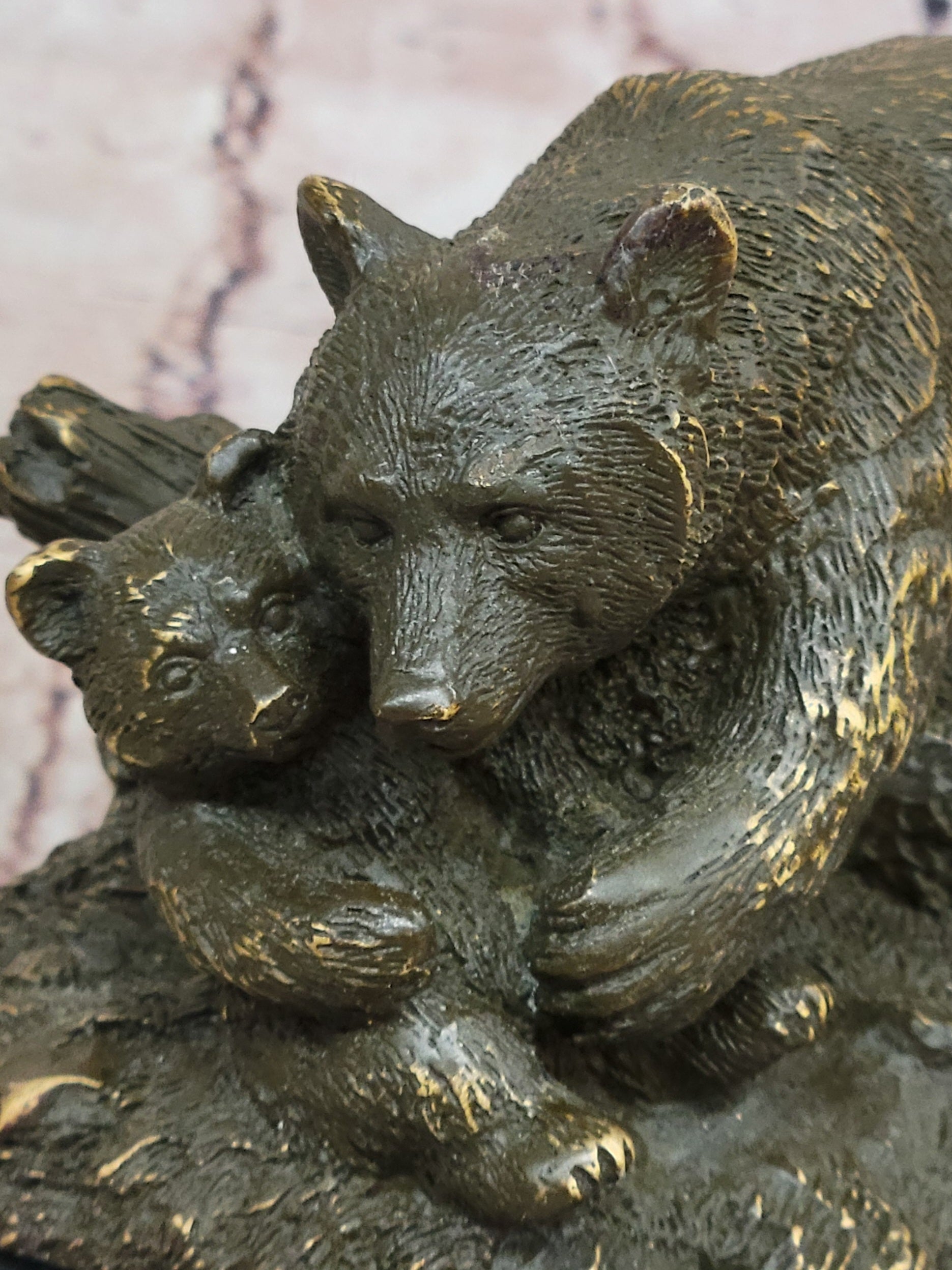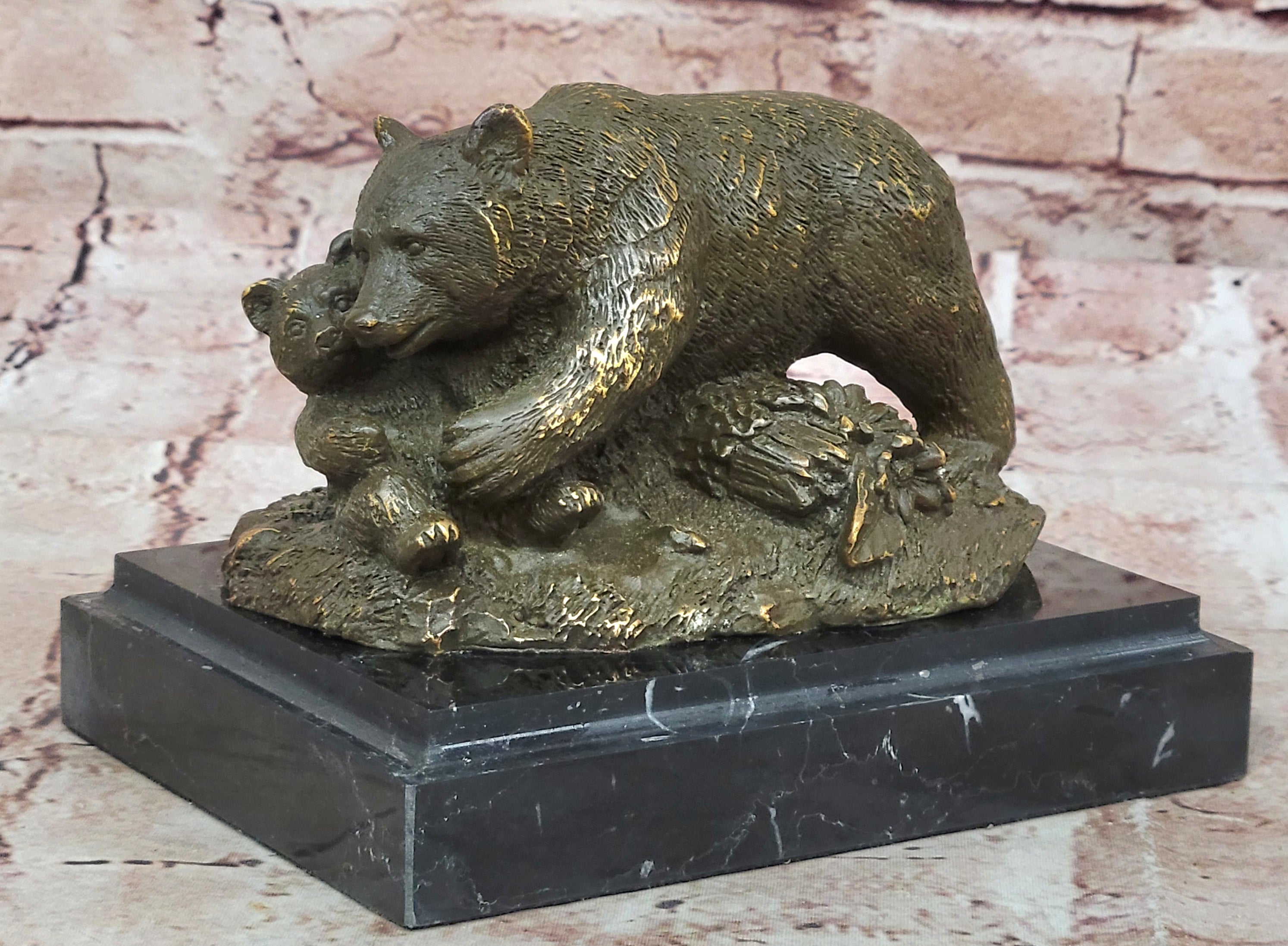Bronze Bear and Cub Statue Realistic Wildlife Sculpture Decor