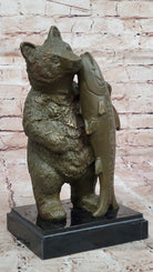Bronze Bear Welcome Statue – Bear with Fish Cabin Decor