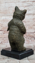 Crafted in genuine bronze using the time-honored lost wax method, this sculpture reflects expert artistry and attention to detail—from the bear's textured fur to the gentle curve of the welcome sign. The rich brown patina enhances the lifelike appearance and adds depth to the overall finish, creating a piece that feels both refined and approachable.