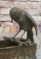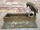Bronze Bird on Basin Sculpture – Decorative Planter Flower Box with Relief