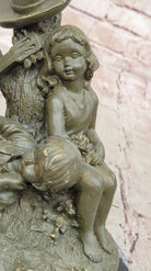 Bronze Children Resting Sculpture – Boy and Girl Figurine with Guitar and Hat