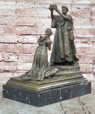 Handcrafted using the ancient lost wax casting method, the sculpture demonstrates fine artistry and durability. The two-tone brown patina enriches the depth of the figures and emphasizes the textures of their garments and expressions. Every fold, gesture, and detail has been carefully sculpted, reflecting the historical importance of this moment in time.