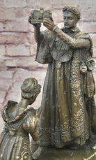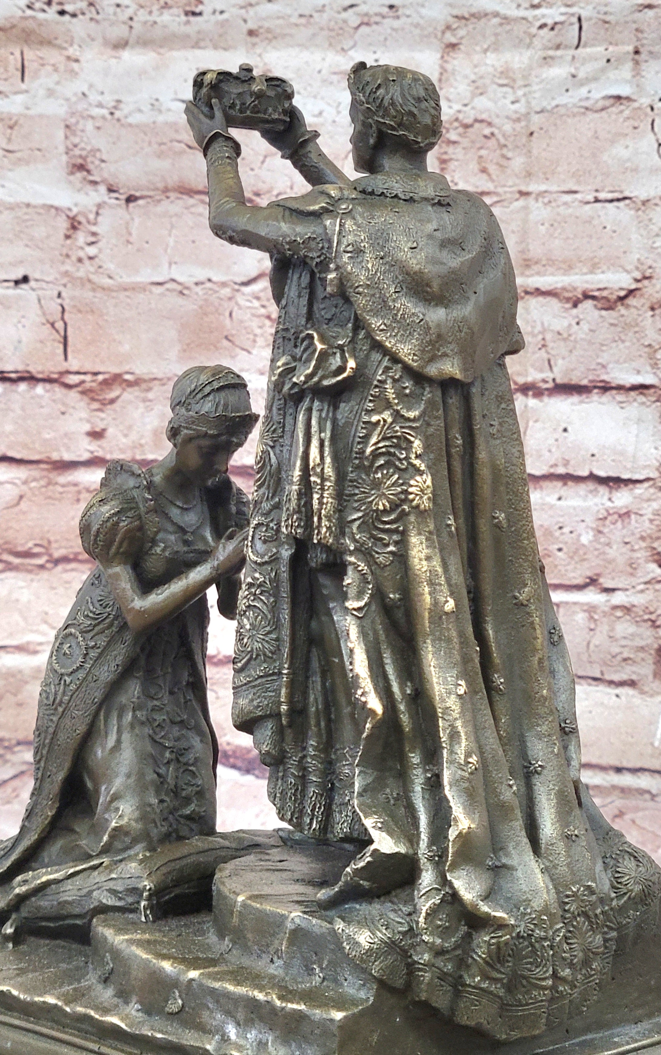Bronze Coronation Sculpture – Medieval King Crowning Queen Statue on Marble Base