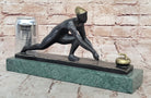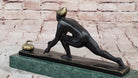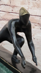 Elevating its presence further, this magnificent sculpture finds its home on a distinguished green marble base. The juxtaposition of the dark bronze against the verdant marble not only enhances the visual appeal but also symbolizes a harmonious union of art and nature. The marriage of material and form is a testament to the artist's thoughtful choices, amplifying the overall impact of the sculpture. Mario Nick's signature gracing the piece not only adds a personal touch but also serves as a mark of authenticity, inviting art enthusiasts to connect with the artist's vision and craftsmanship on a profound level.Bronze Dimensions with Marble Base: Height 6.5" X Width 12.5"