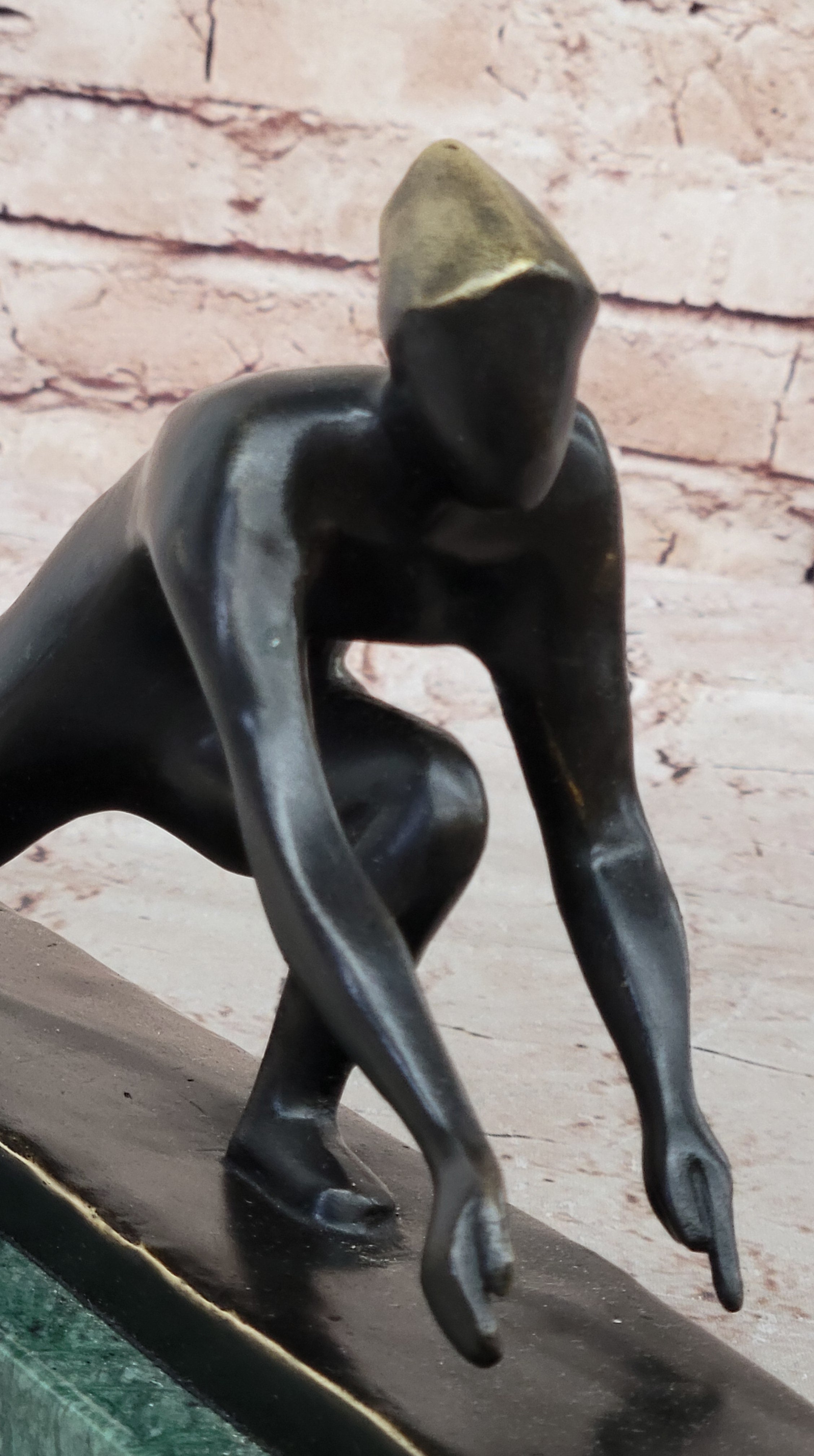 In the realm of visual artistry, the profound impact of Mario Nick's skillful hands is epitomized in a powerful bronze sculpture. Depicting a man engaged in the graceful yet intense act of curling on ice, the artwork captivates with its meticulous details. Mario Nick's interpretation breathes life into the bronze, showcasing a figure adorned with a helmet, his mouth etched in unwavering determination. The sculpture masterfully captures the essence of human strength, with muscles visibly straining against the formidable elements of nature. Each feature is beautifully rendered, elevating the piece to a realm of exceptional finesse.