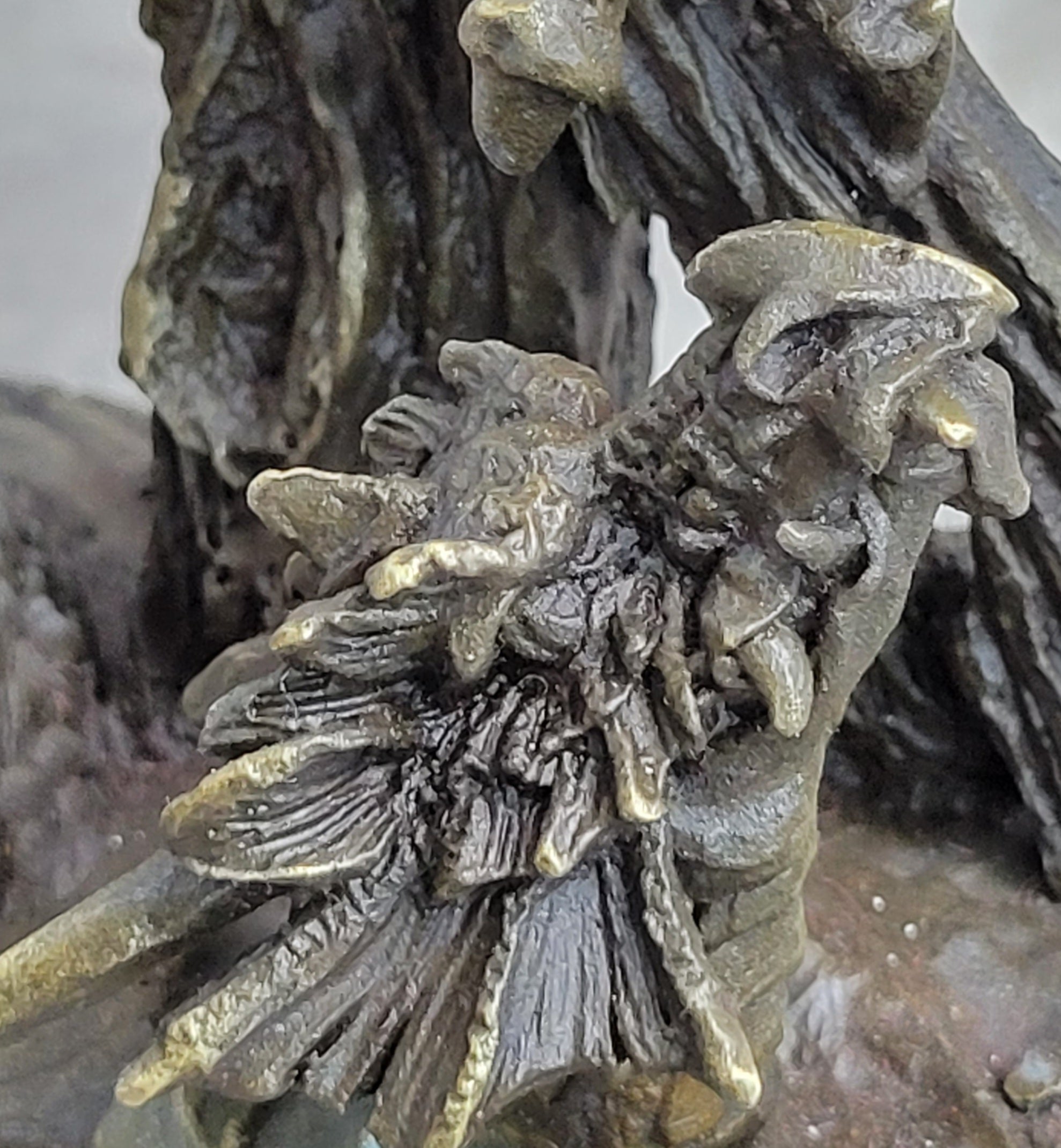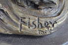 This exquisite bronze sculpture pays homage to the mystical allure of dragons. Created with the ancient lost-wax casting method, it captures the intricacies of these mythical beings, preserving their timeless appeal. Mounted gracefully on a black marble base and signed by the artist Fisher, this sculpture serves as a tribute to the enduring fascination that dragons continue to hold in cultures worldwide. Whether displayed for its artistic beauty or its rich symbolism, this sculpture invites you to explore the mesmerizing world of dragons.Bronze Dimensions with Marble Base: Height 12" X Width 8"
