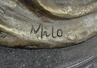 Crafted using the ancient "Lost Wax Method," this bronze sculpture exemplifies exceptional quality and durability. The brown patina finish adds depth and richness to the artwork, accentuating its lifelike features. Signed by the esteemed artist Milo, this sculpture is a testament to his talent and expertise.