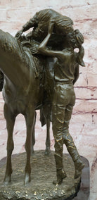 Set on a polished black marble base, the sculpture exudes both elegance and durability. As a signed and numbered limited edition, it carries significant collectible value and artistic integrity. Perfect for fans of Western Americana, romance in art, or equestrian themes, this piece makes a striking focal point in any home, office, or gallery space.Bronze Dimensions with Marble Base: Height 12" X Width 12"