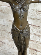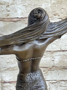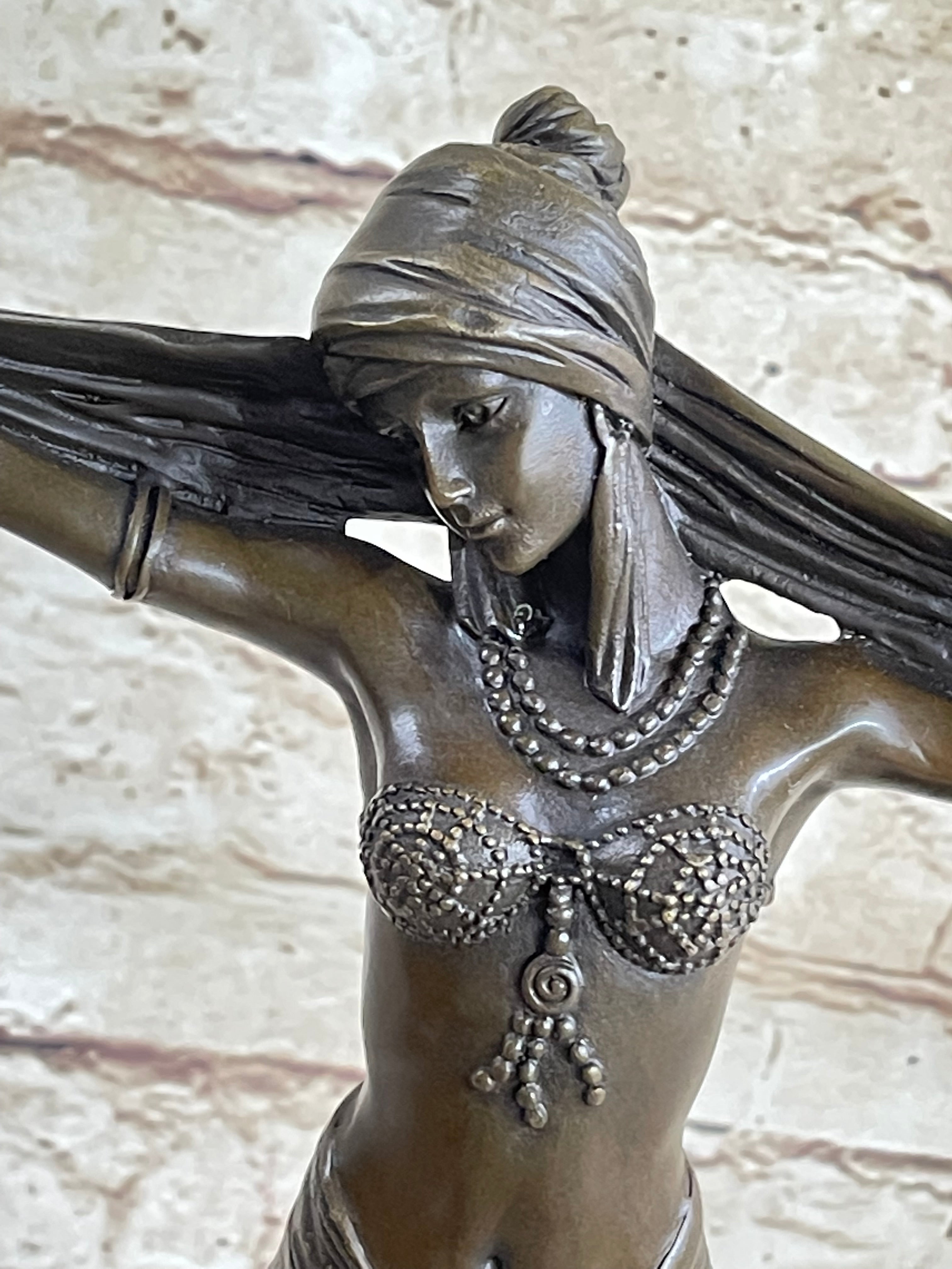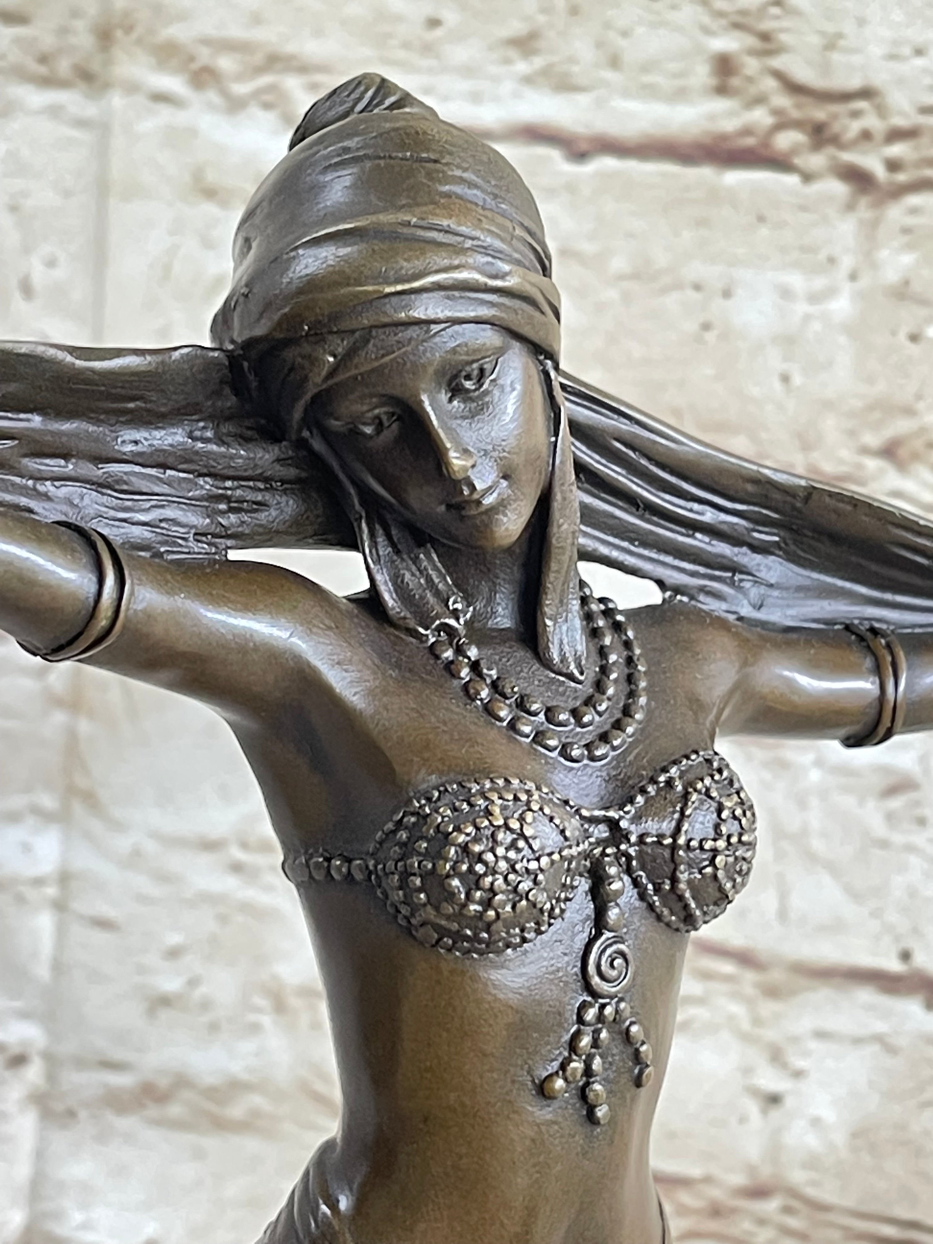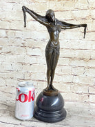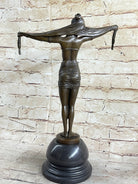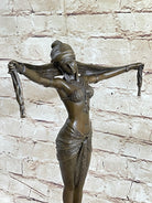 Bronze Exotic Dancer Sculpture with Scarf on Marble Base Art Deco Statue