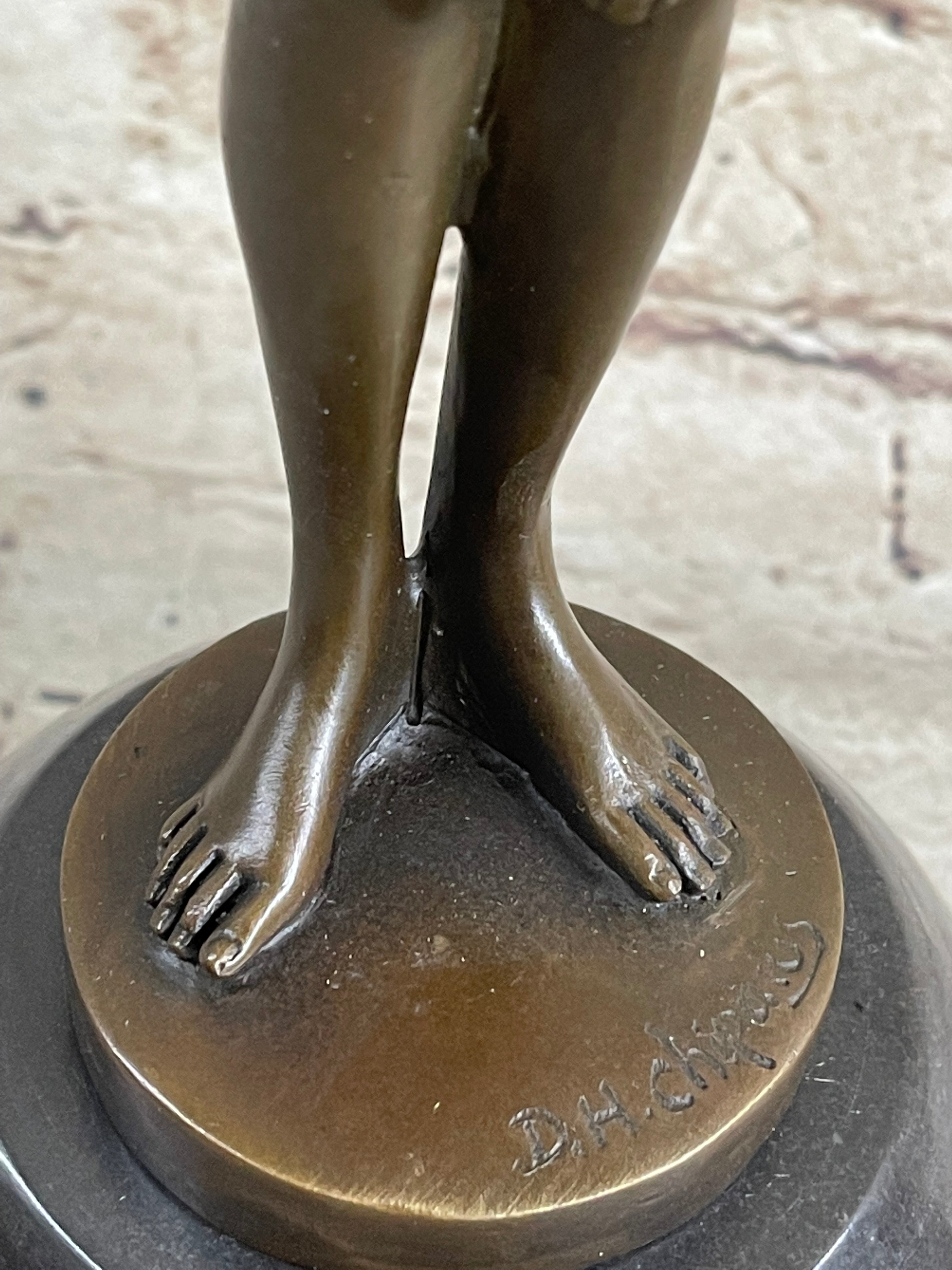 Signed by the renowned artist D.H. Chiparus, this piece is not just a sculpture but a celebration of movement and grace. Its detailed craftsmanship and elegant design make it a standout addition to any collection, sure to draw admiration and appreciation from all who behold it.Bronze Dimensions with Marble Base: Height 16" X Width 10"